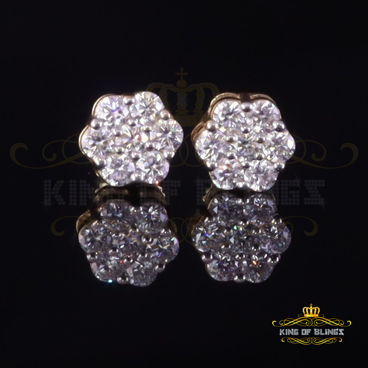 King of Bling's 1.00ct VVS 'D' Moissanite Men's/Womens 925 Silver Yellow Floral Stud Earrings