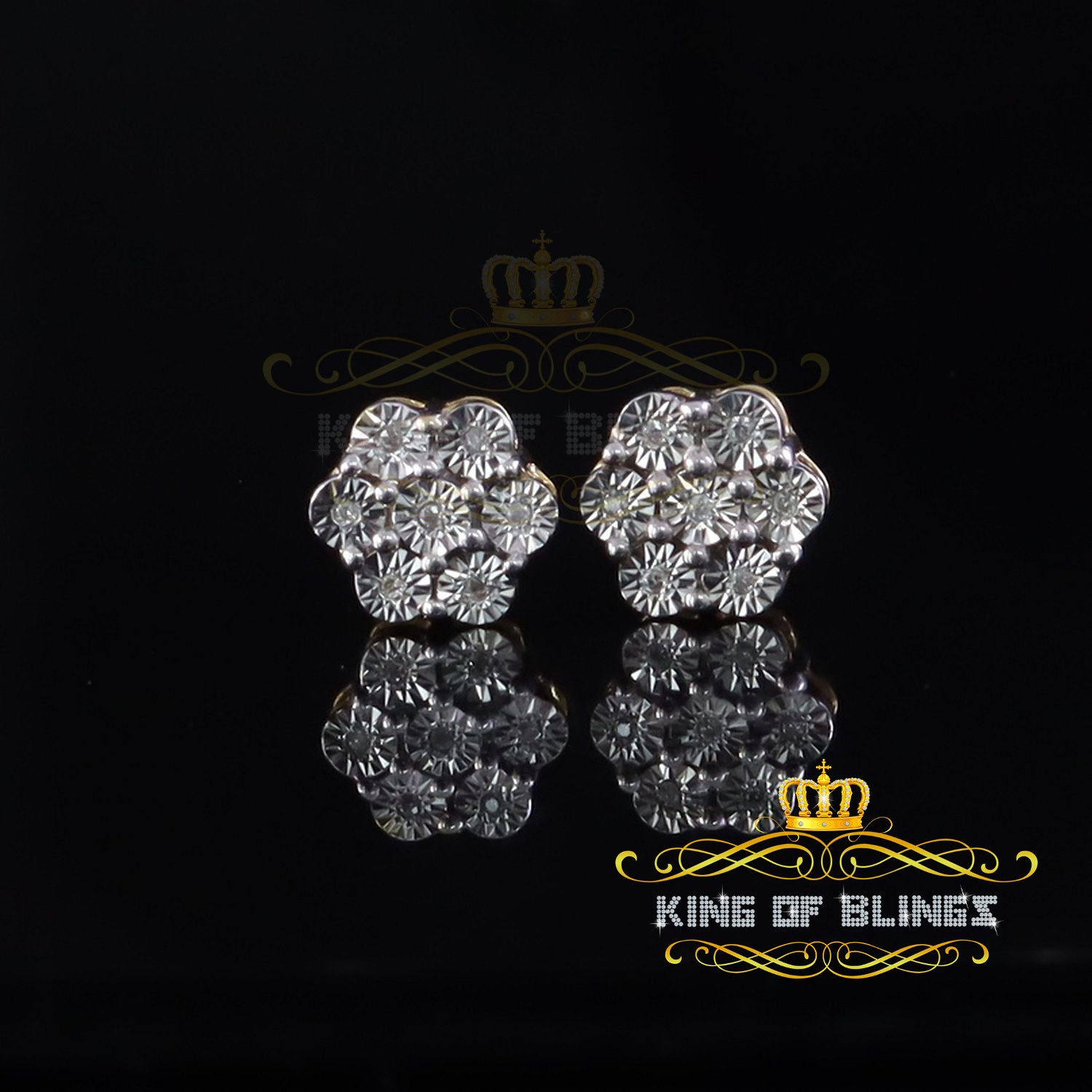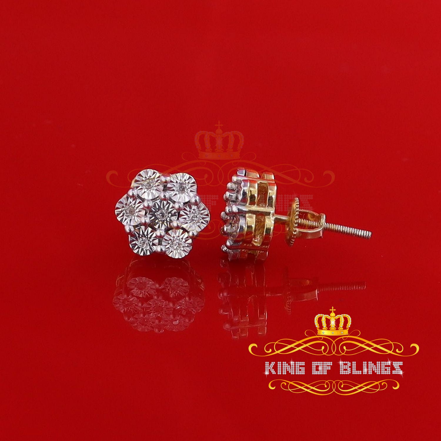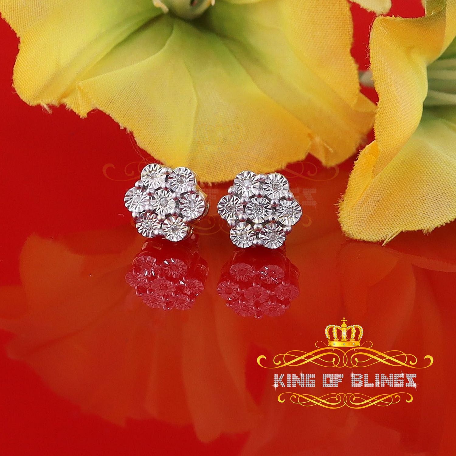 King of Blings-0.05ct Diamond Sterling Silver Yellow Floral Style Earrings For Men's & Women's