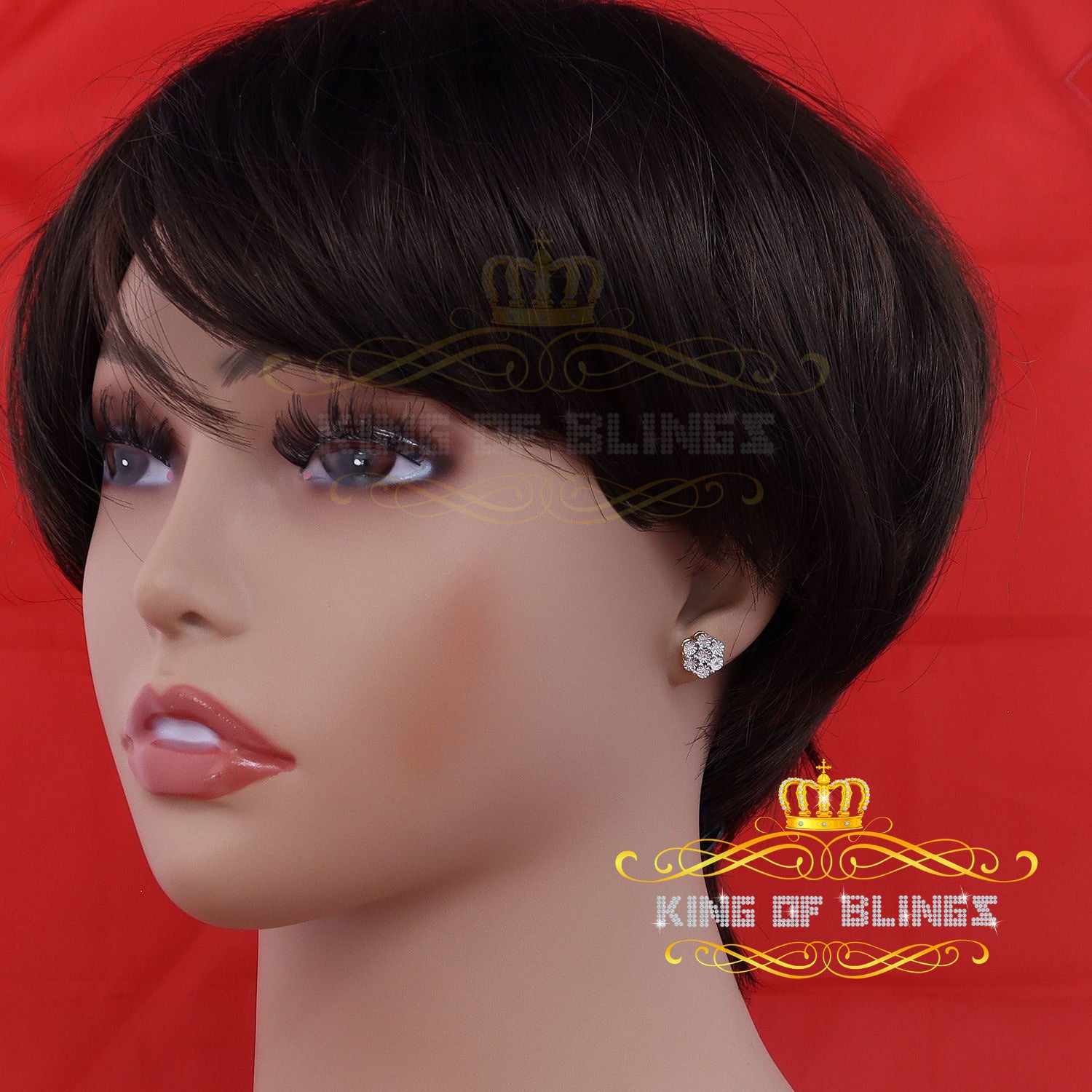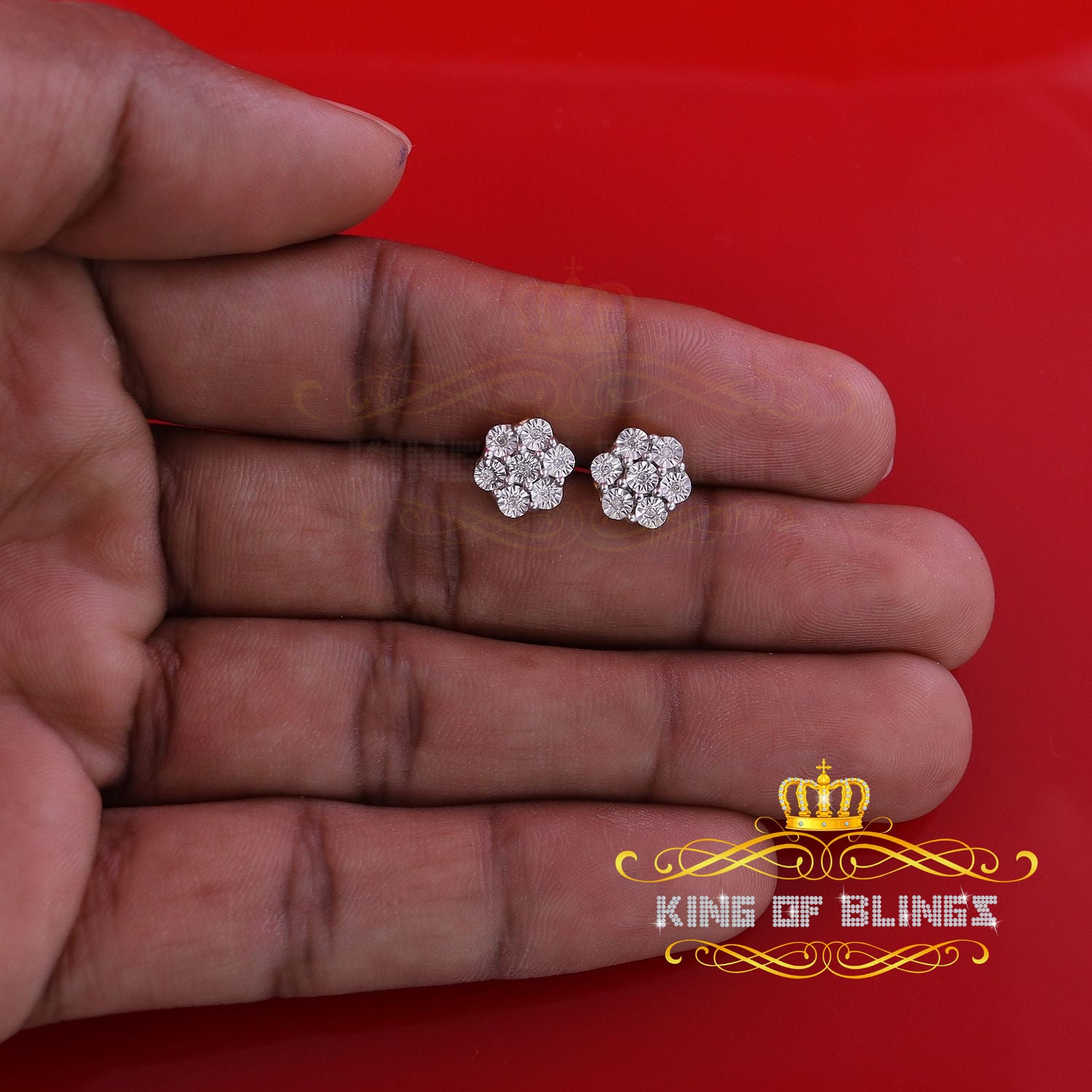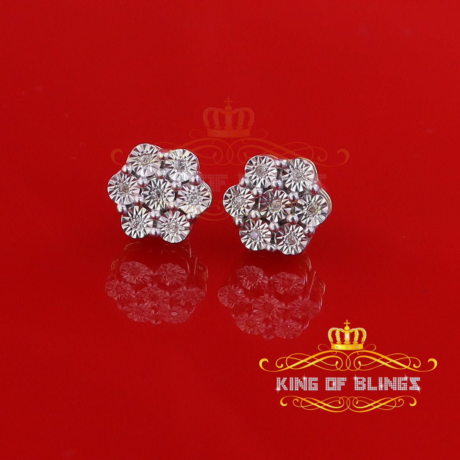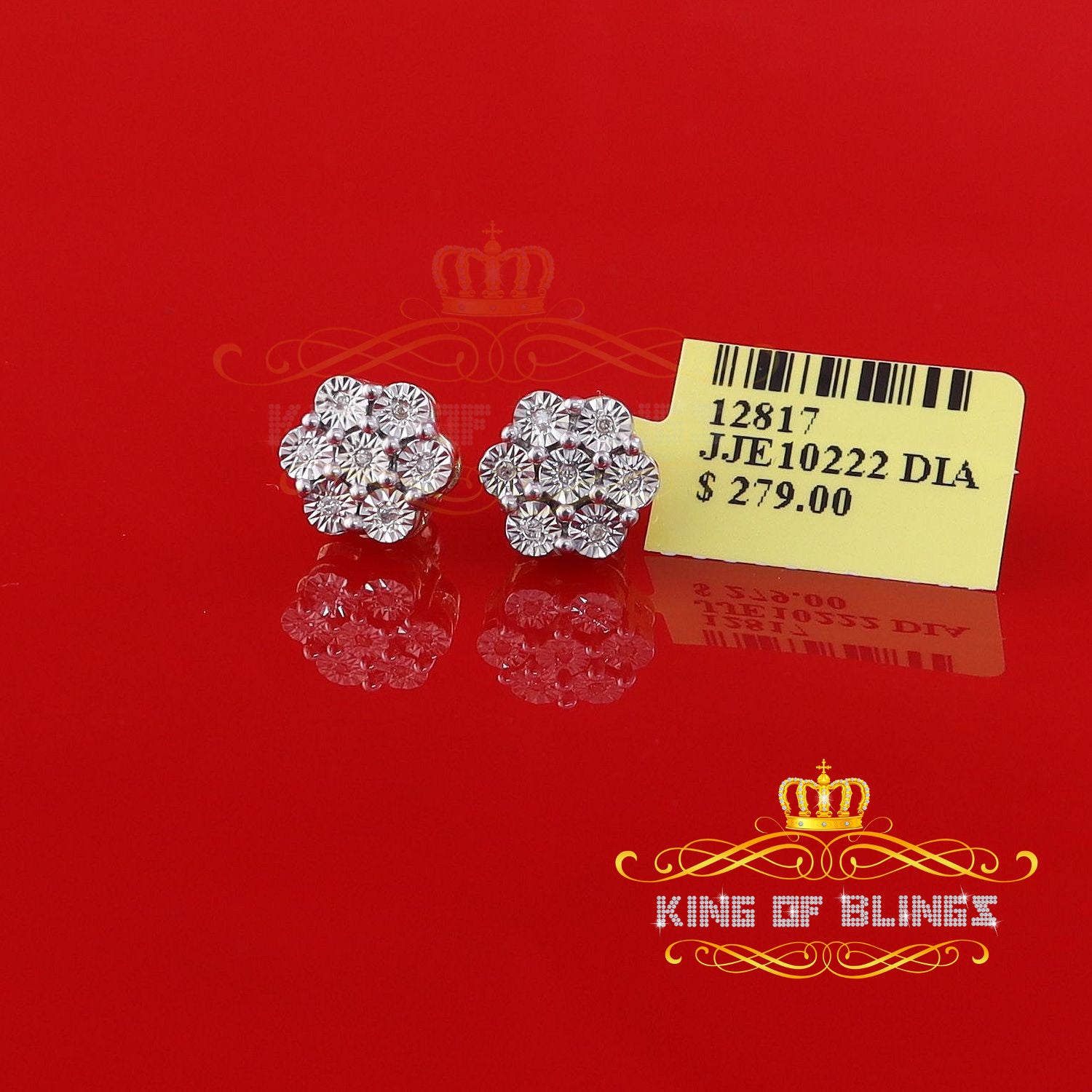 King of Blings-0.05ct Diamond Sterling Silver Yellow Floral Style Earrings For Men's & Women's