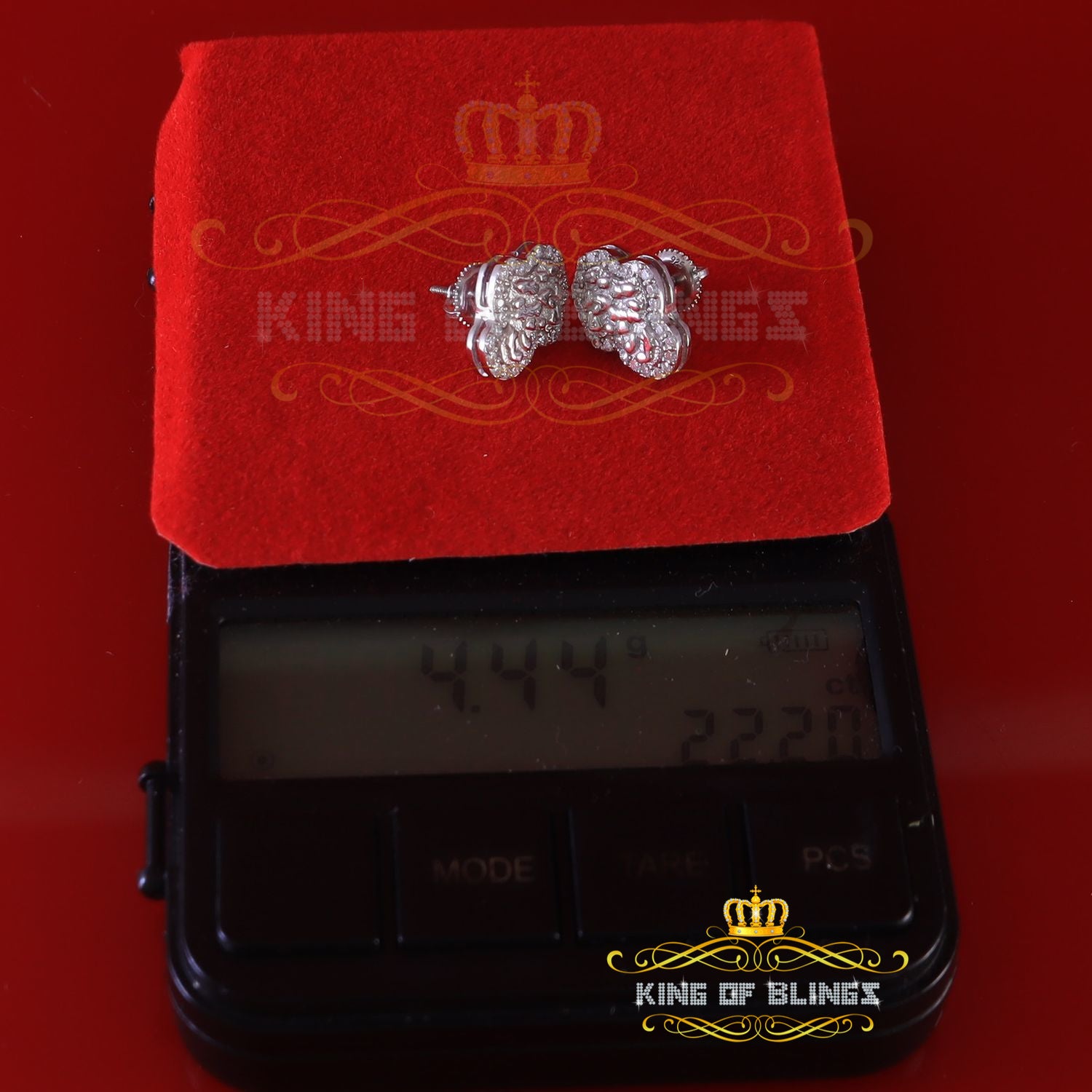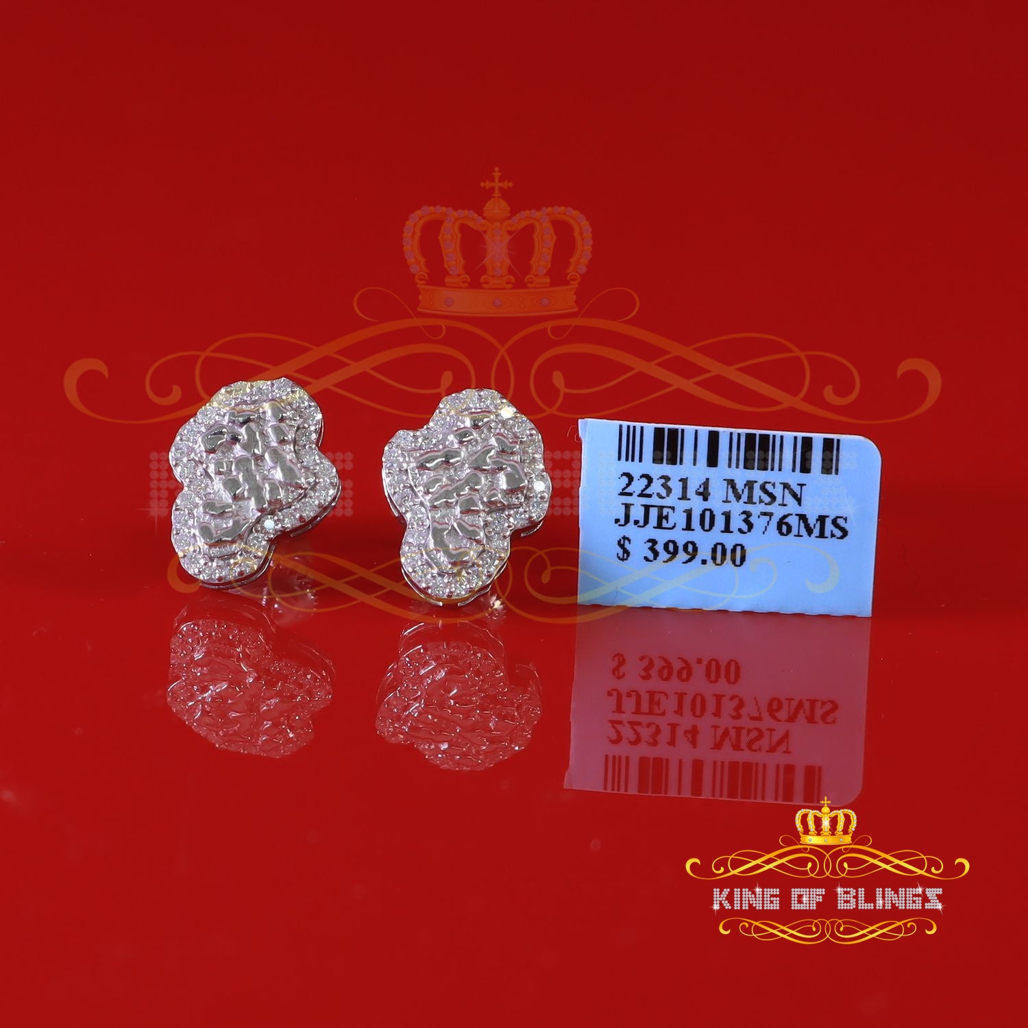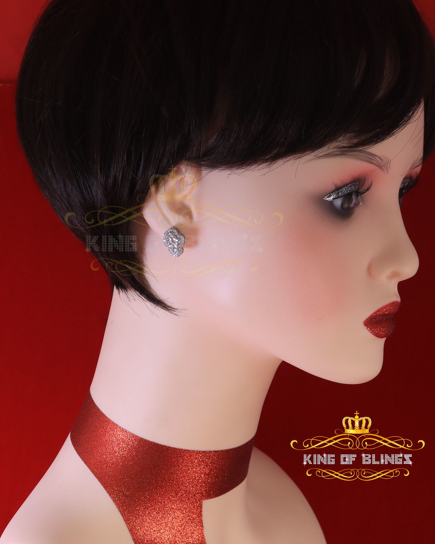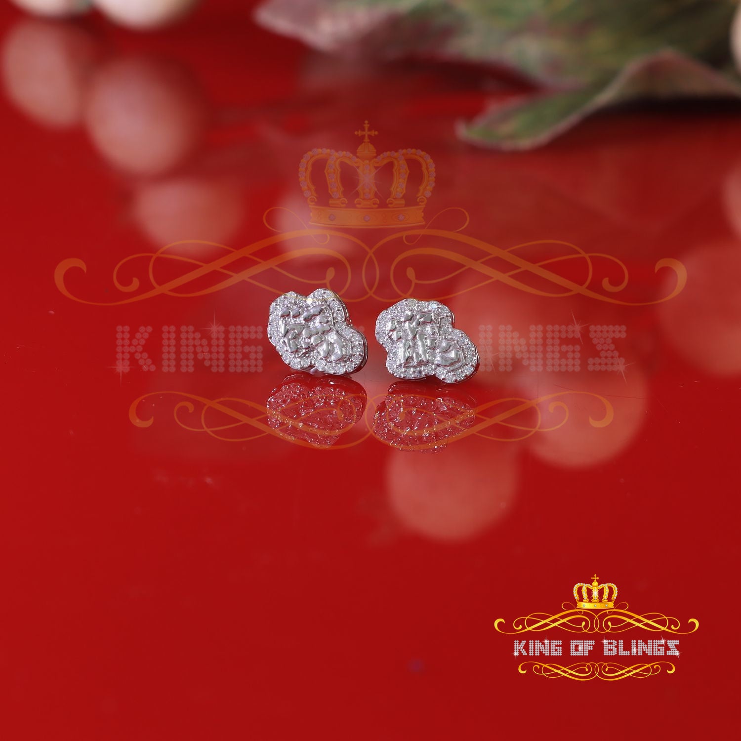 King of Bling's 1.00ct Moissanite White 925 Sterling Silver Women's Nugget Earrings