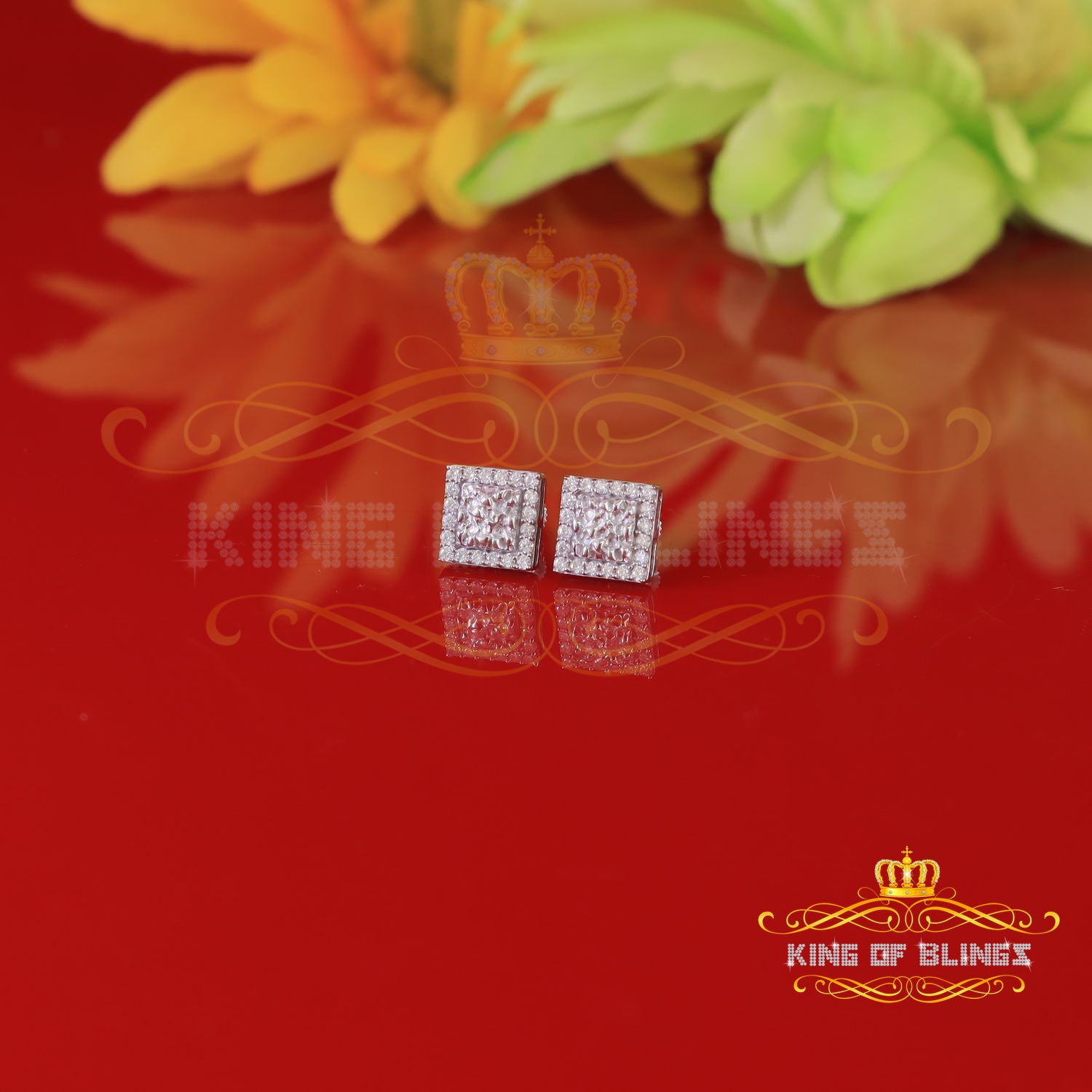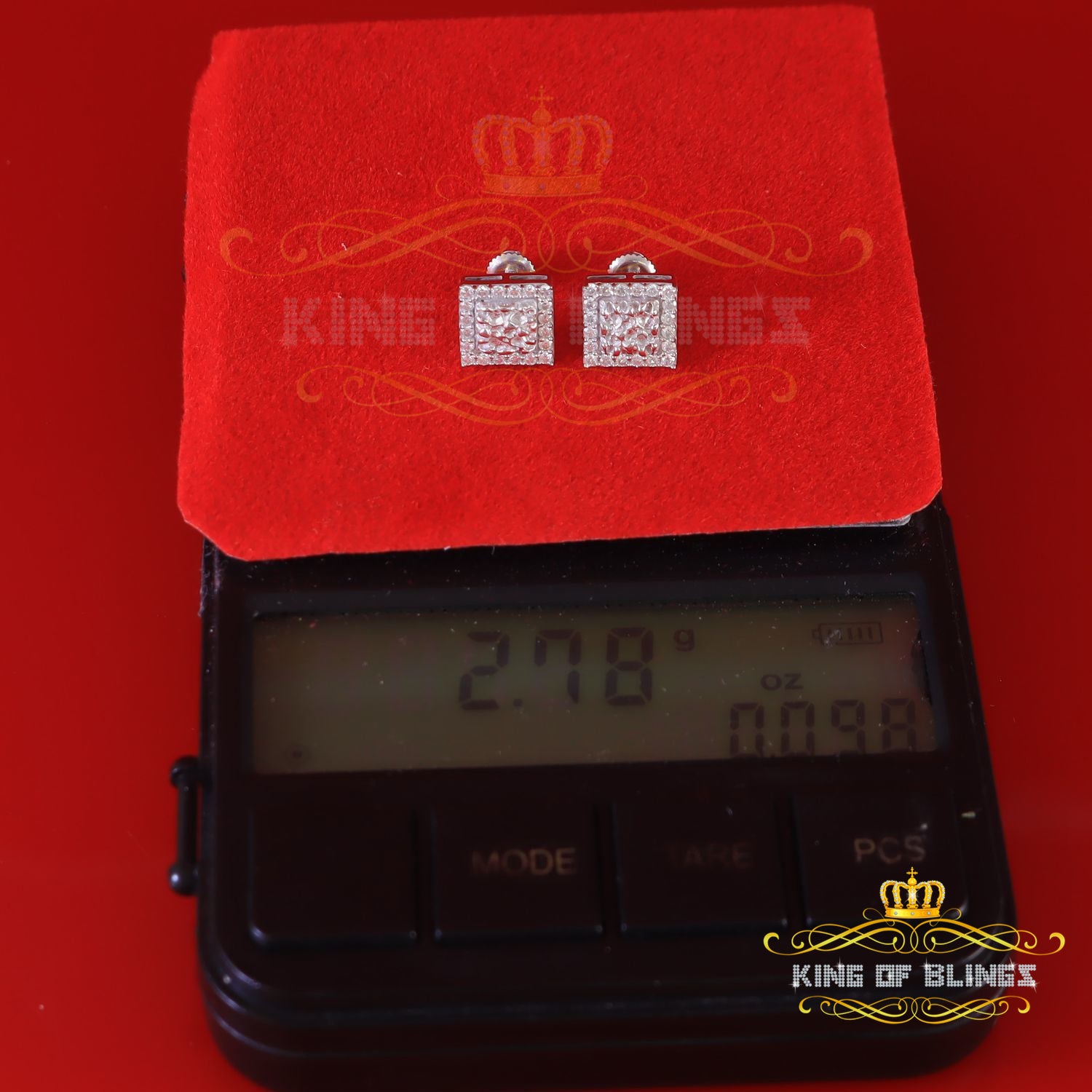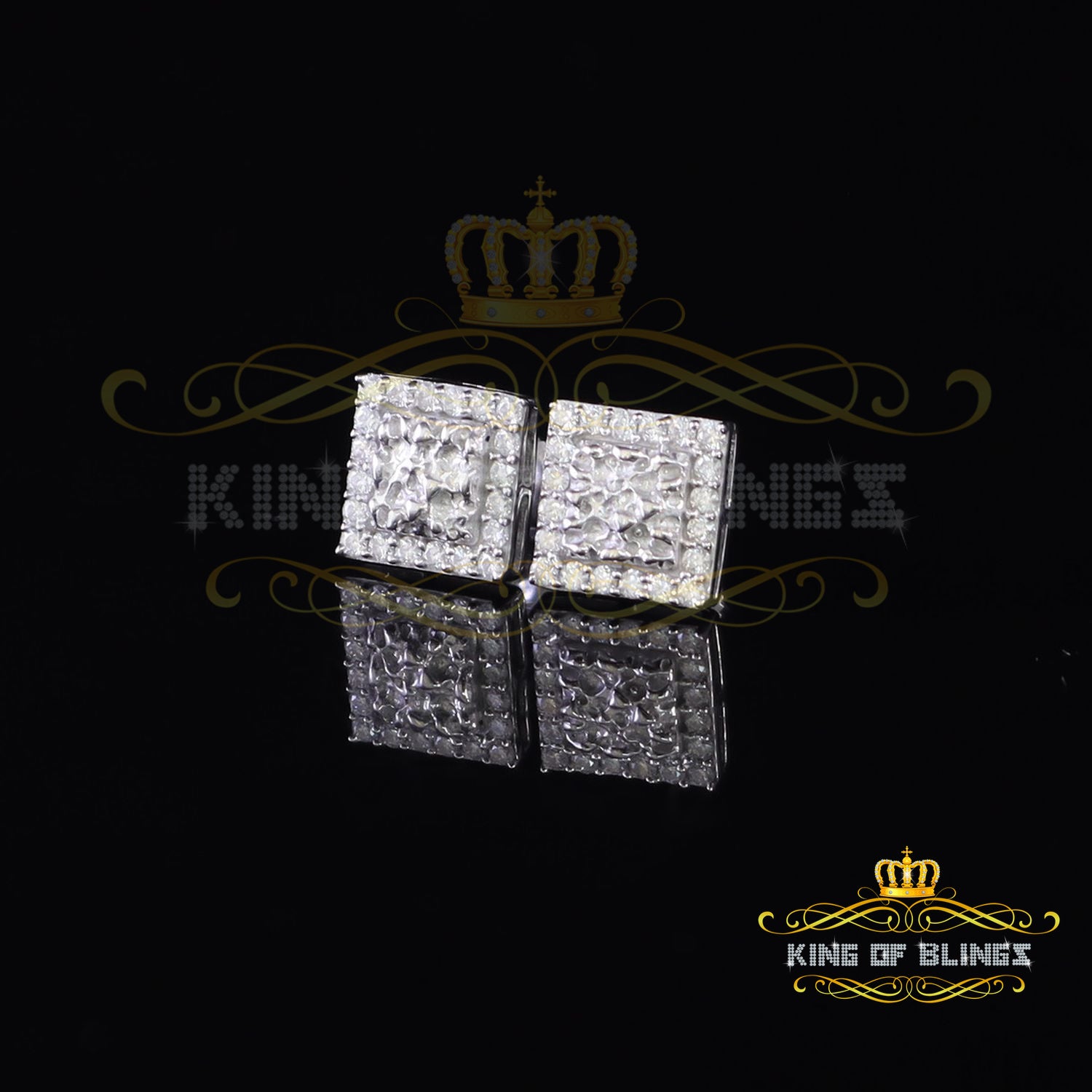 King of Bling's 1.00ct Moissanite White 925 Sterling Silver Women's Square Shape Nugget Earrings