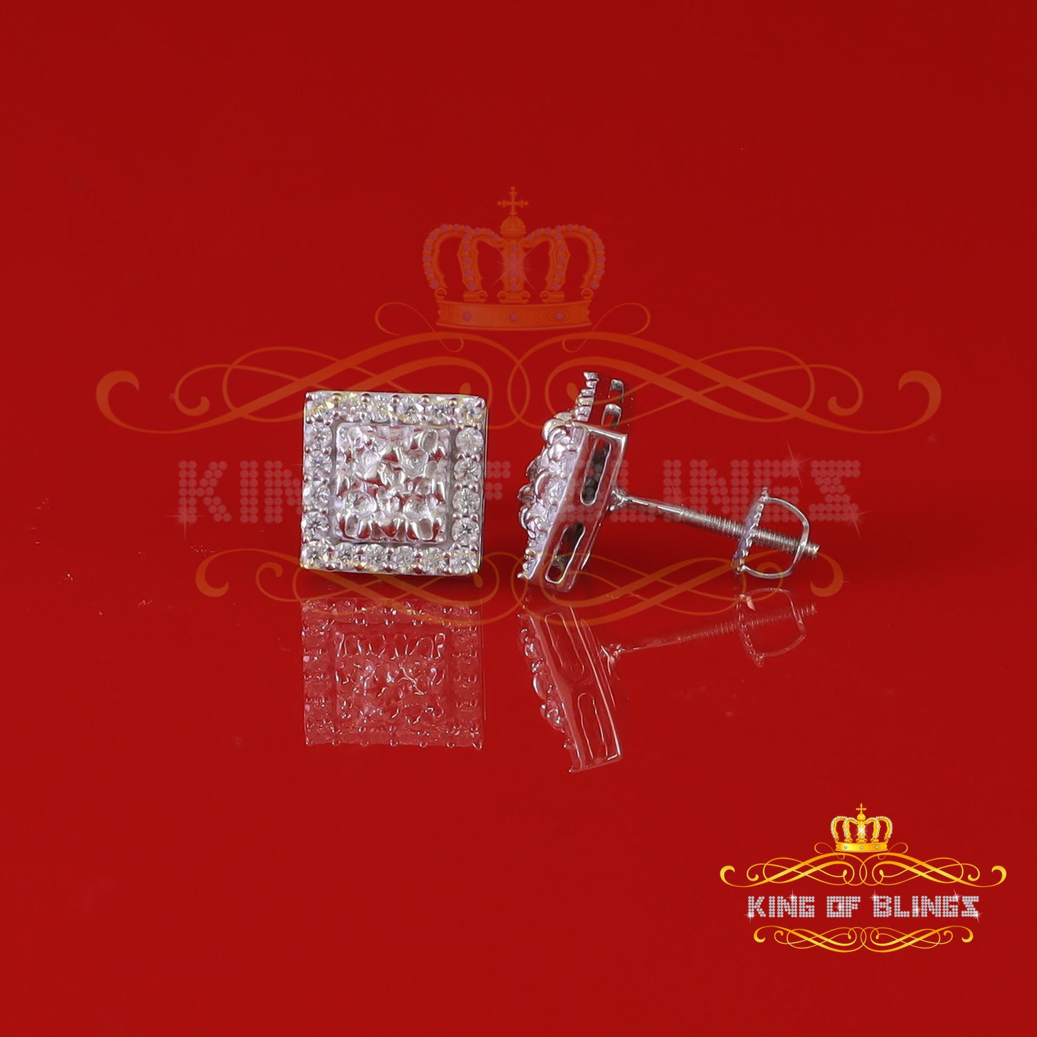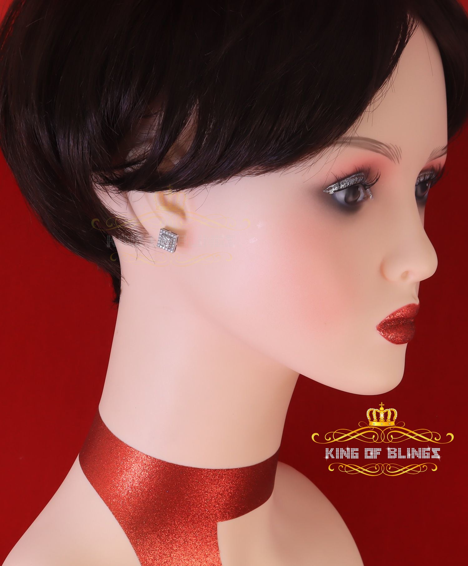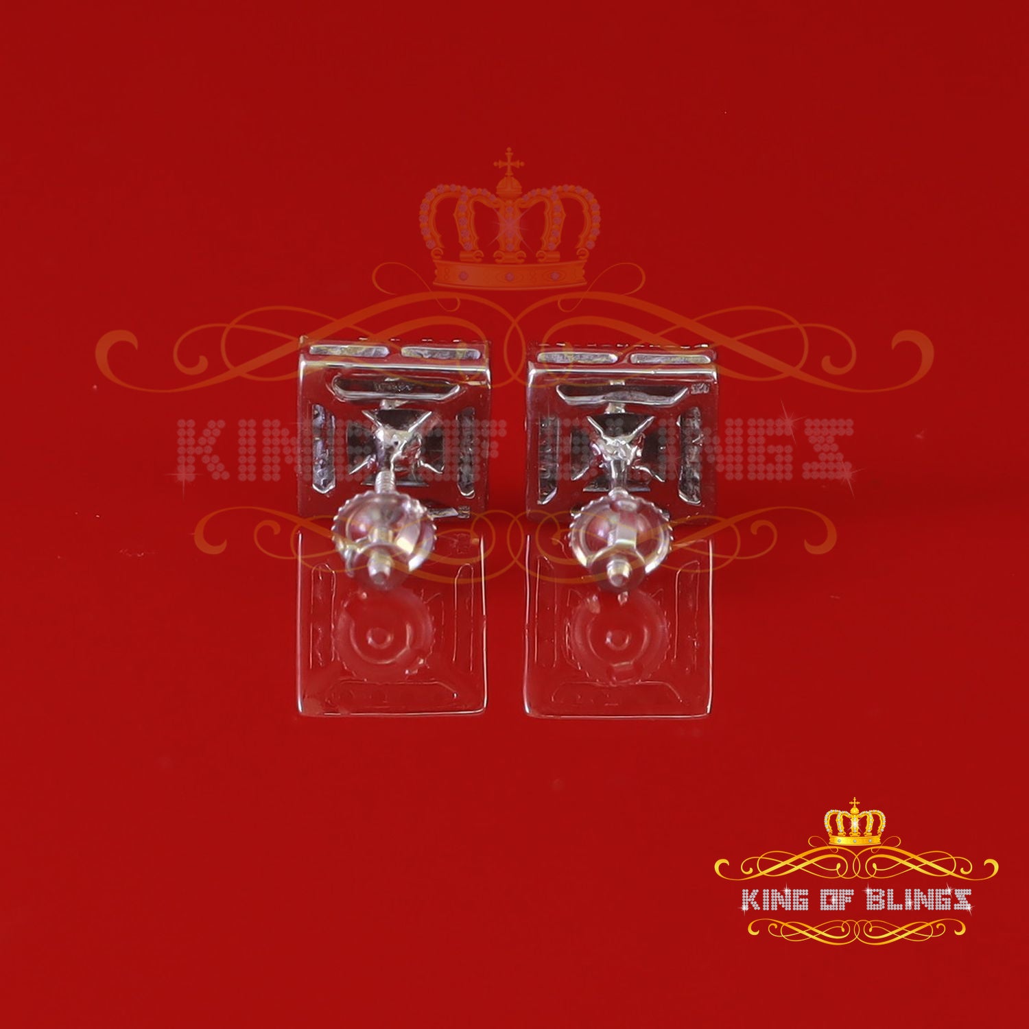 King of Bling's 1.00ct Moissanite White 925 Sterling Silver Women's Square Shape Nugget Earrings