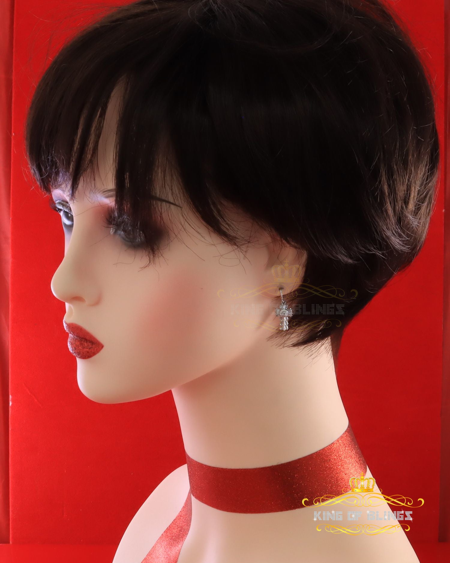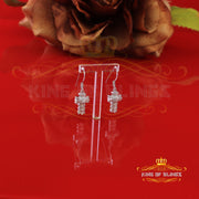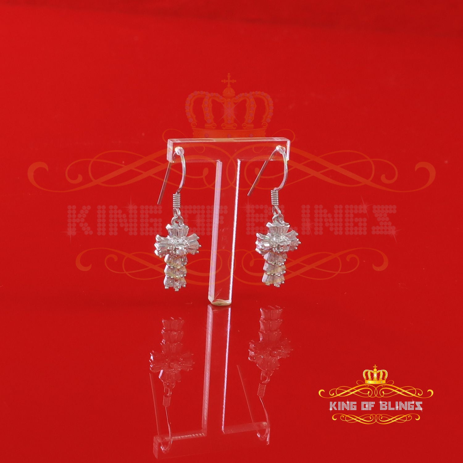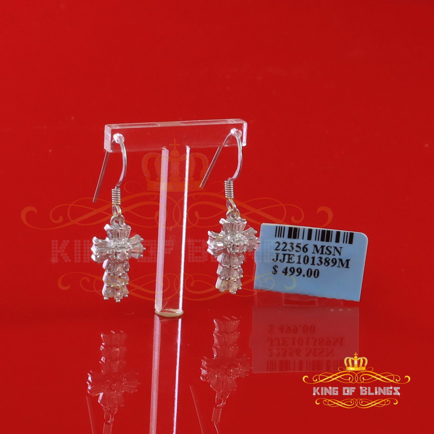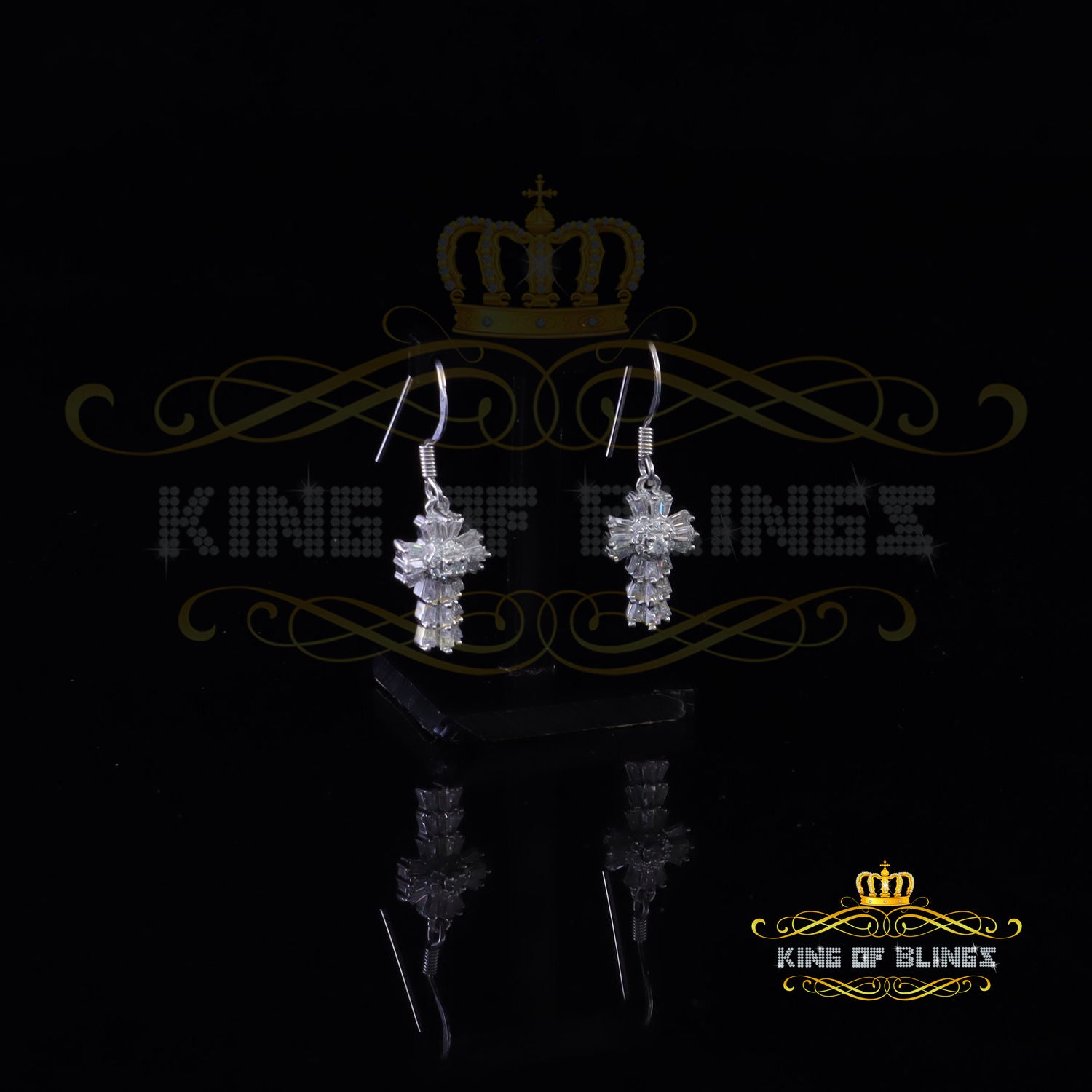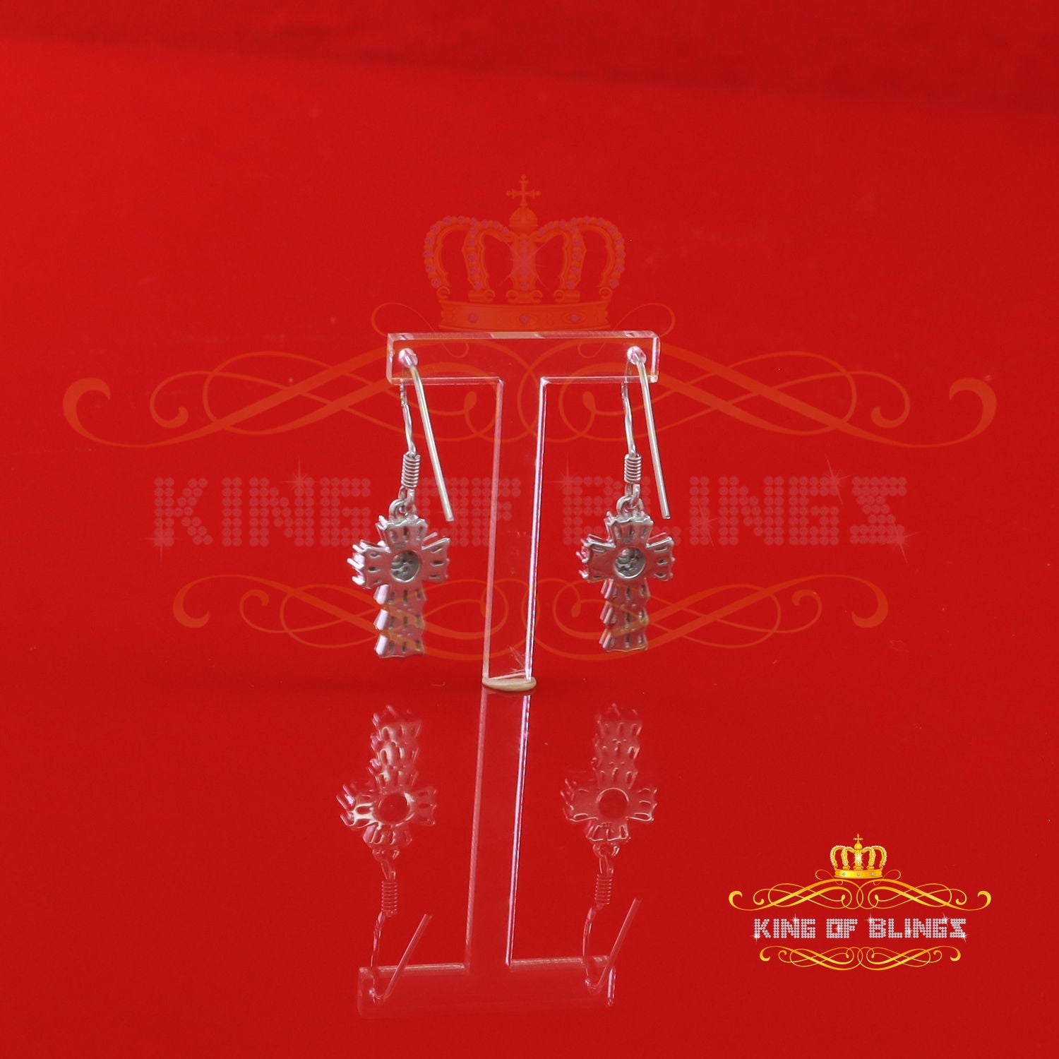 King of Bling's 1.00ct Moissanite White 925 Silver Women's Dangling Cross Fish Hook Earrings