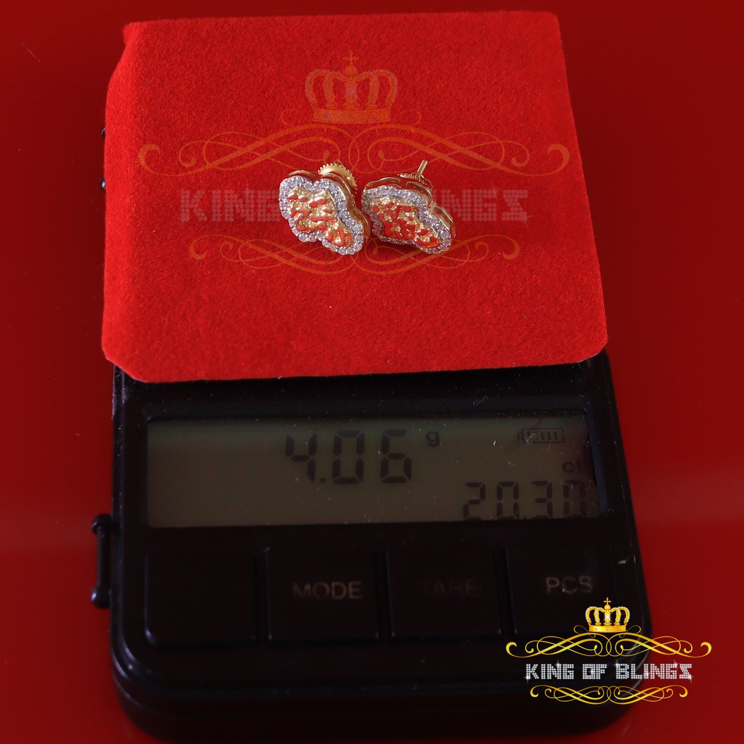 King of Bling's 1.00ct Moissanite Yellow 925 Sterling Silver Women's Nugget Earrings
