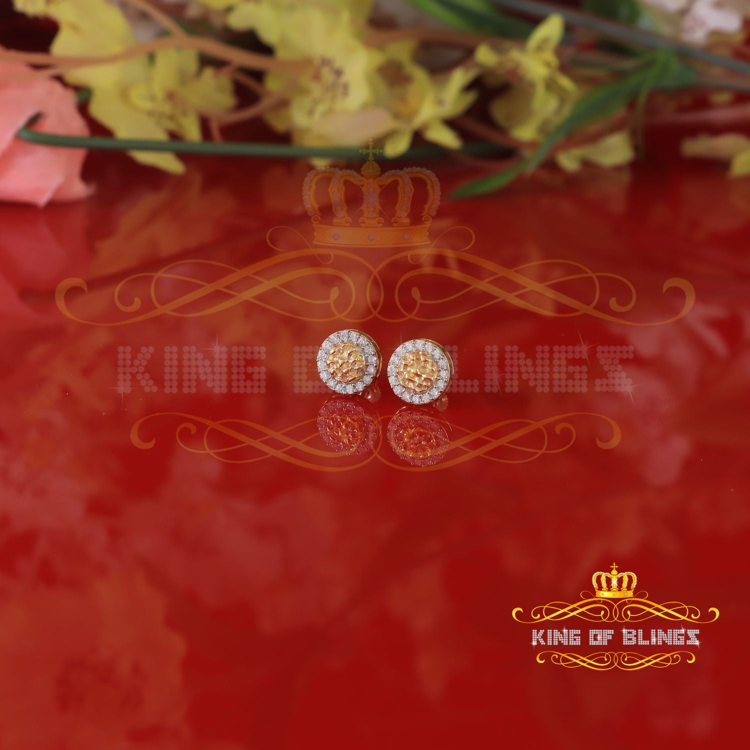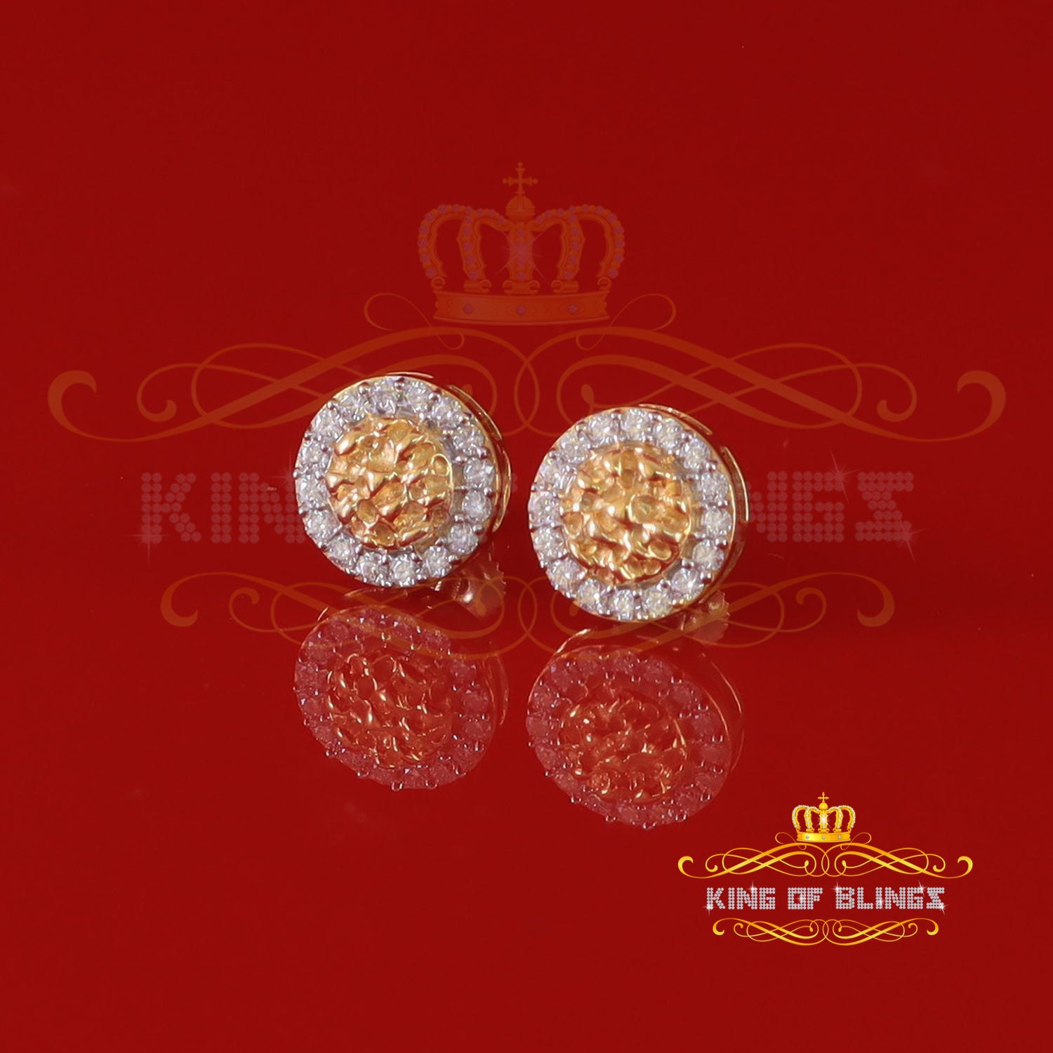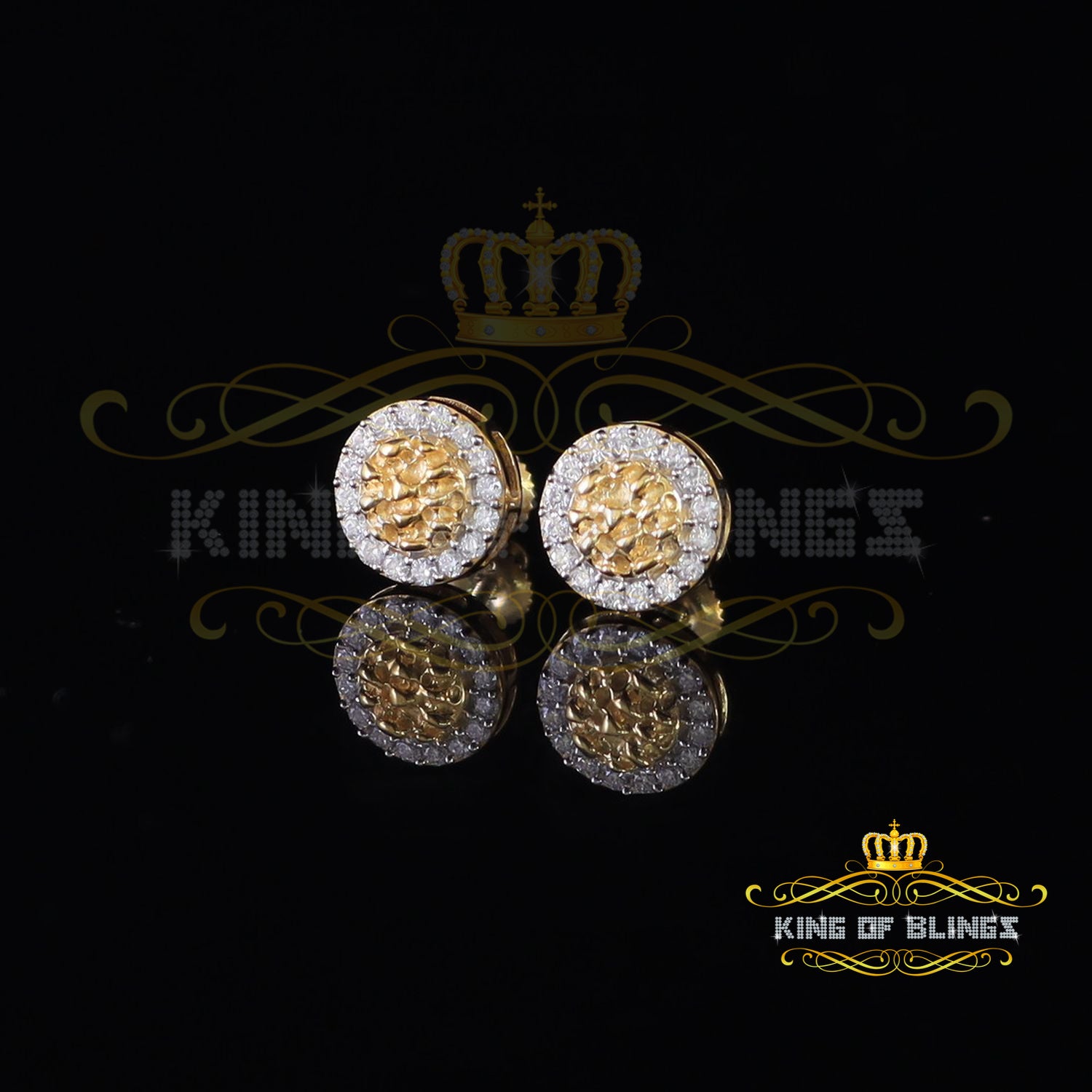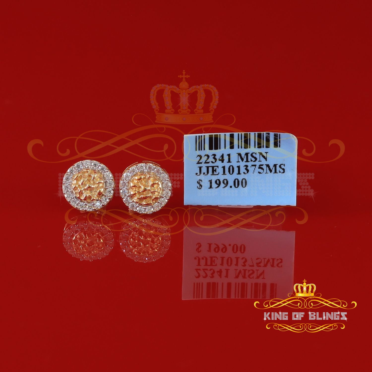 King of Bling's 1.00ct Moissanite Yellow 925 Sterling Silver Women's Circle Shape Nugget Earring