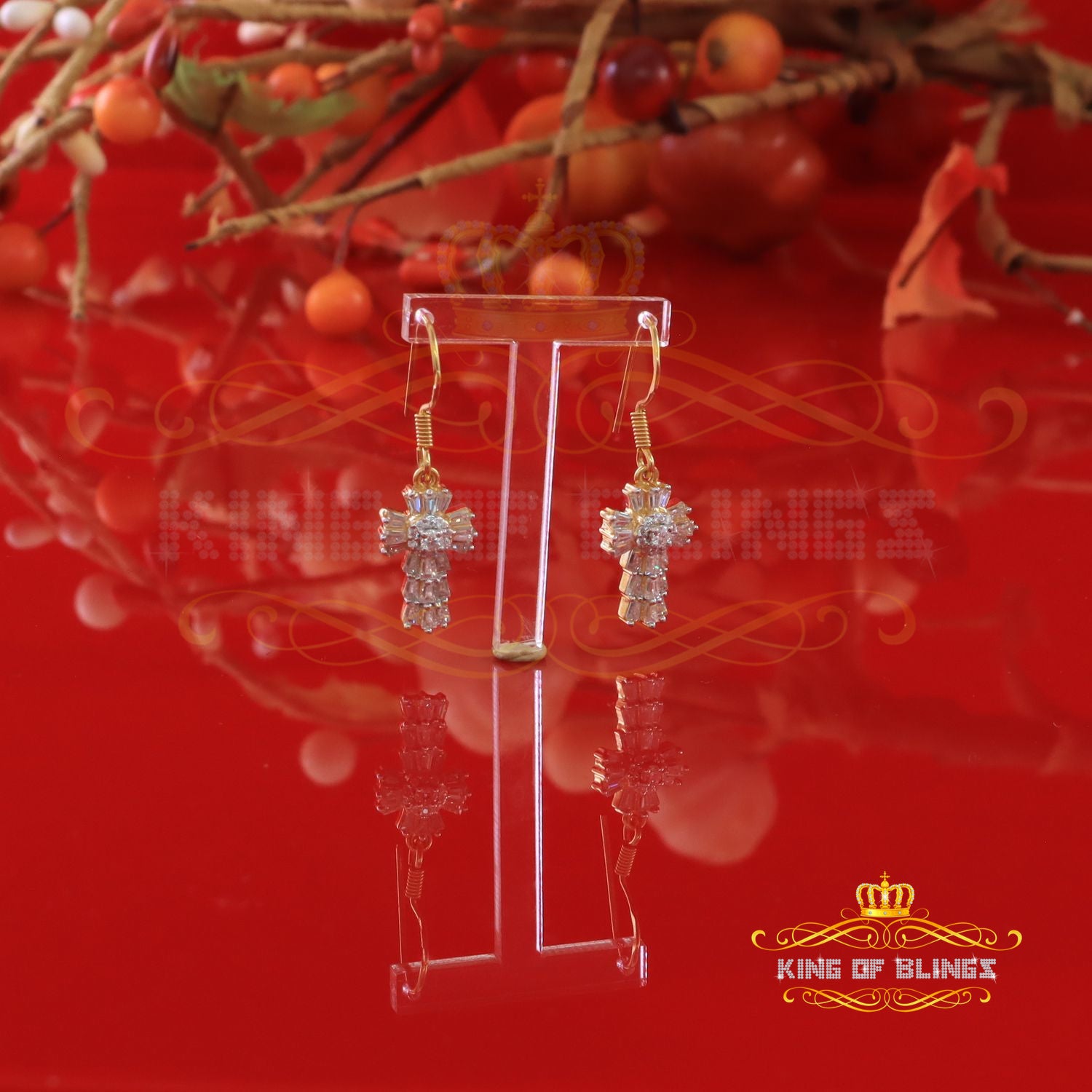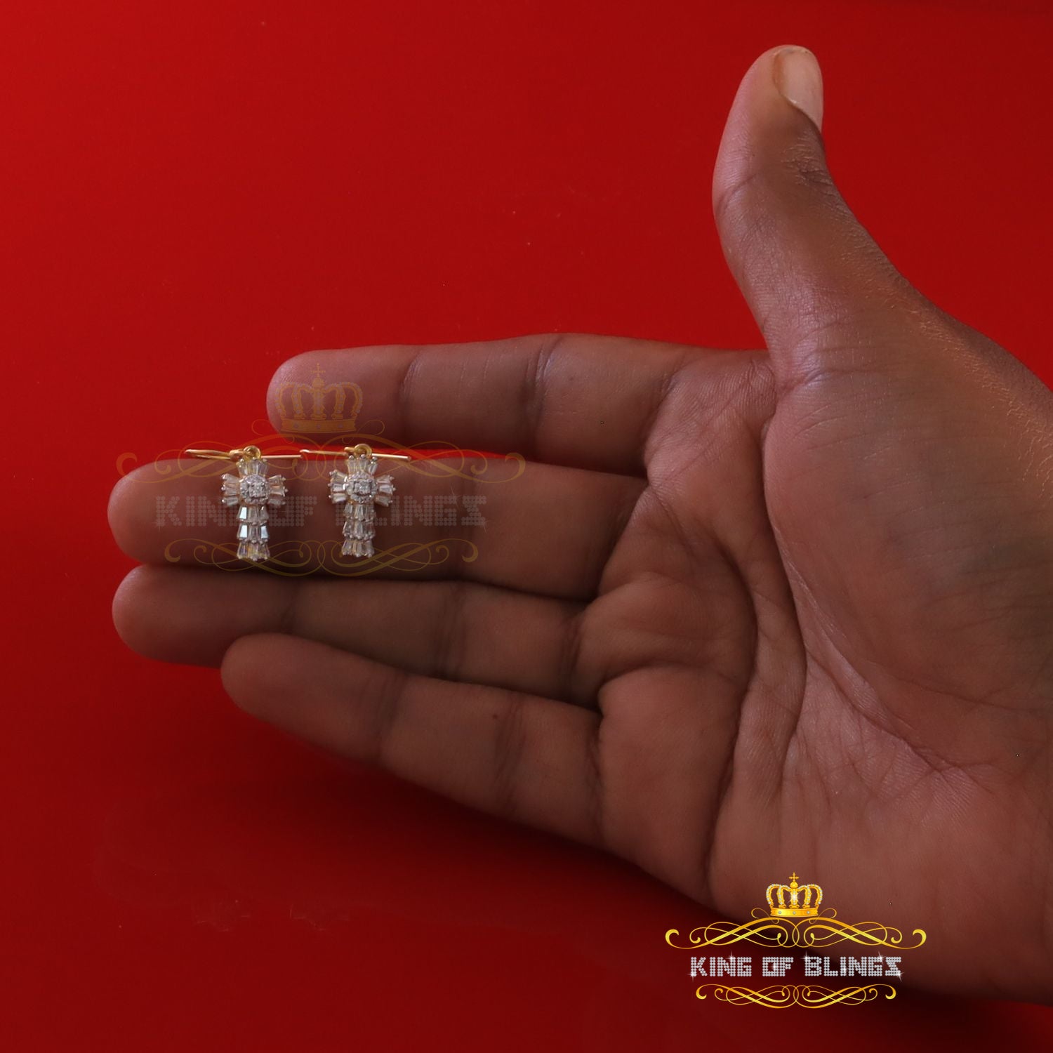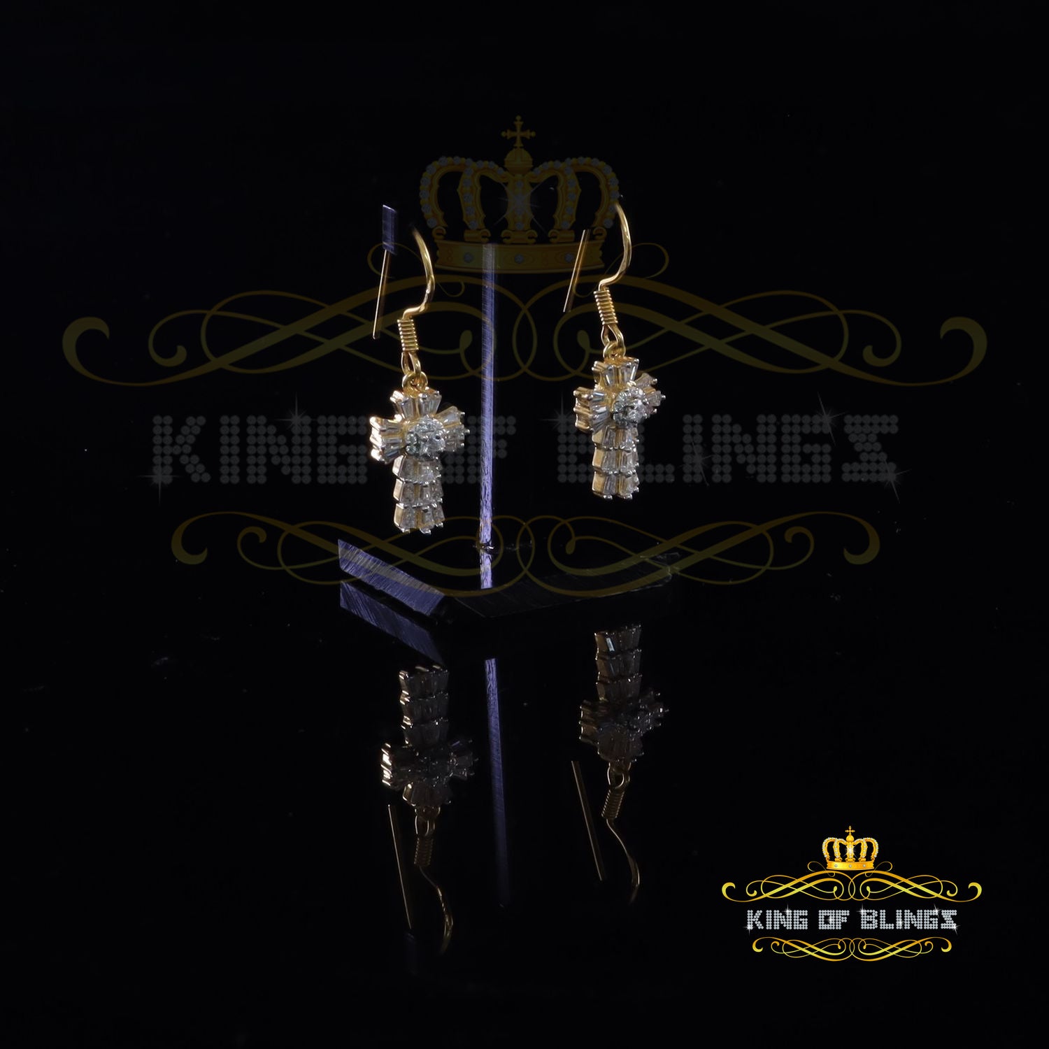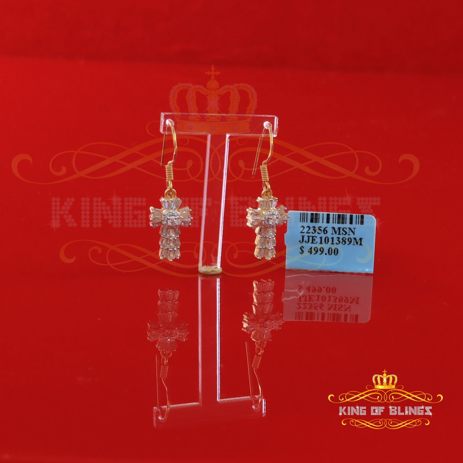 King of Bling's 1.00ct Moissanite Yellow 925 Silver Women's Dangling Cross Fish Hook Earrings