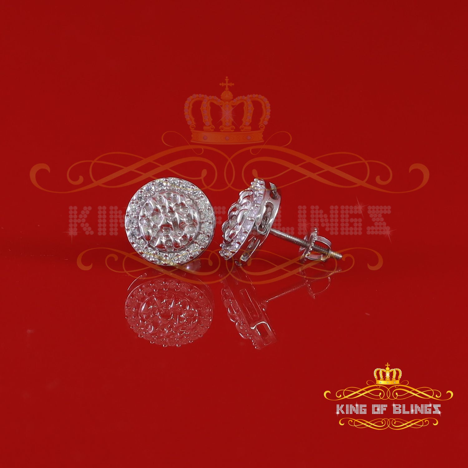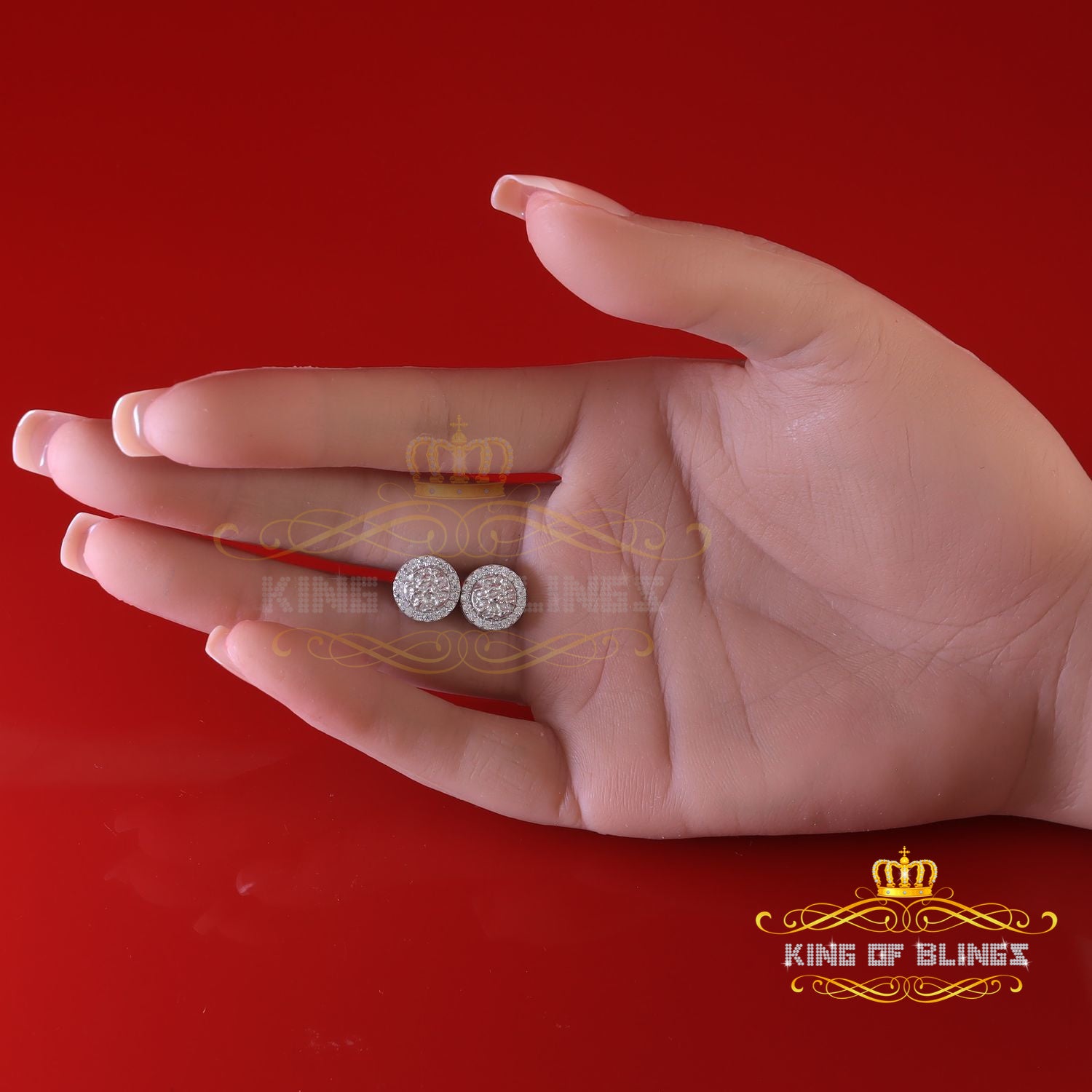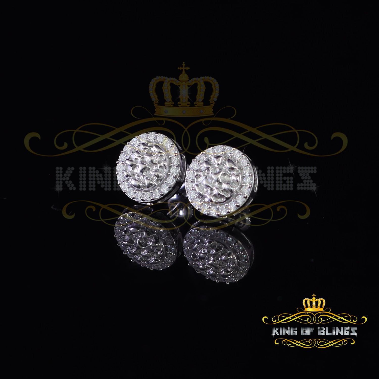 King of Bling's 1.50ct Moissanite White 925 Sterling Silver Women's Circle Shape Nugget Earrings