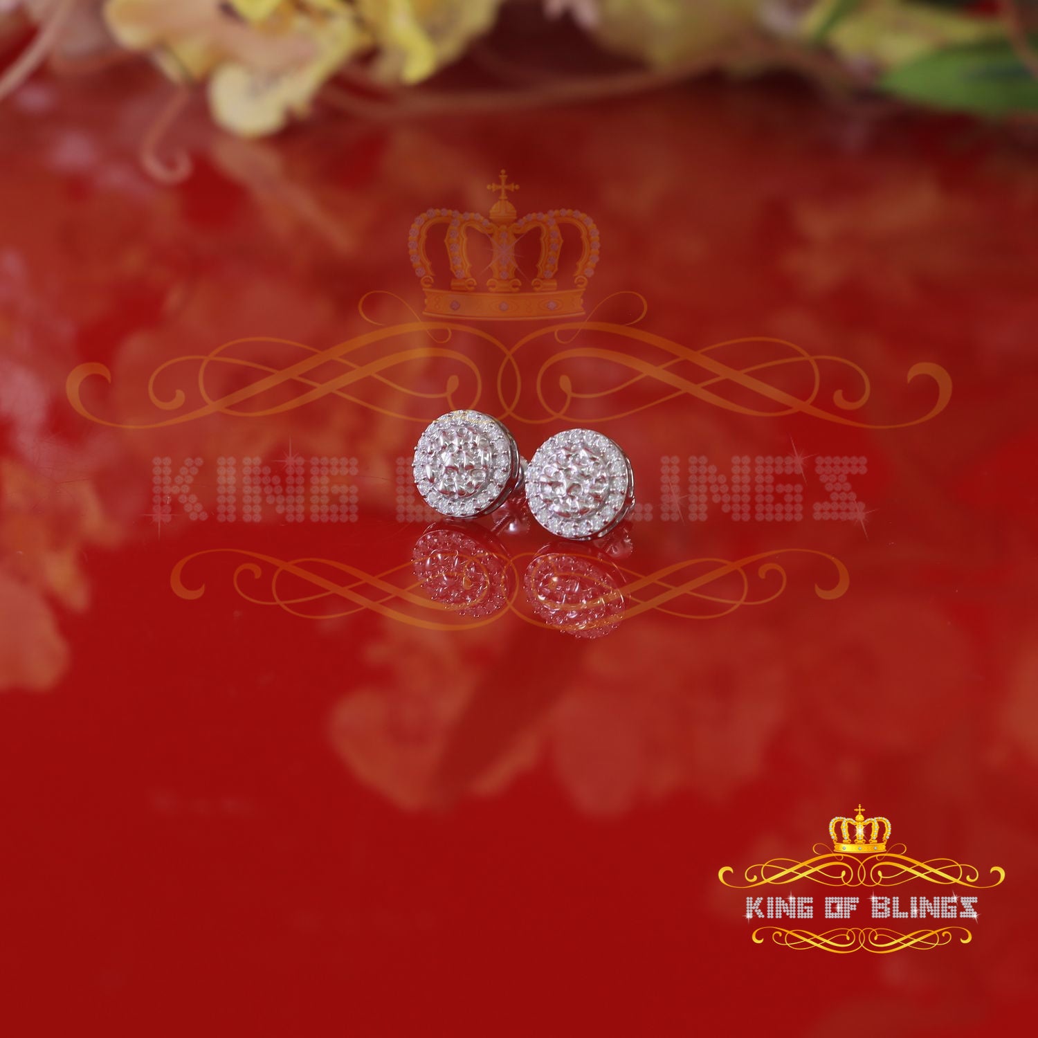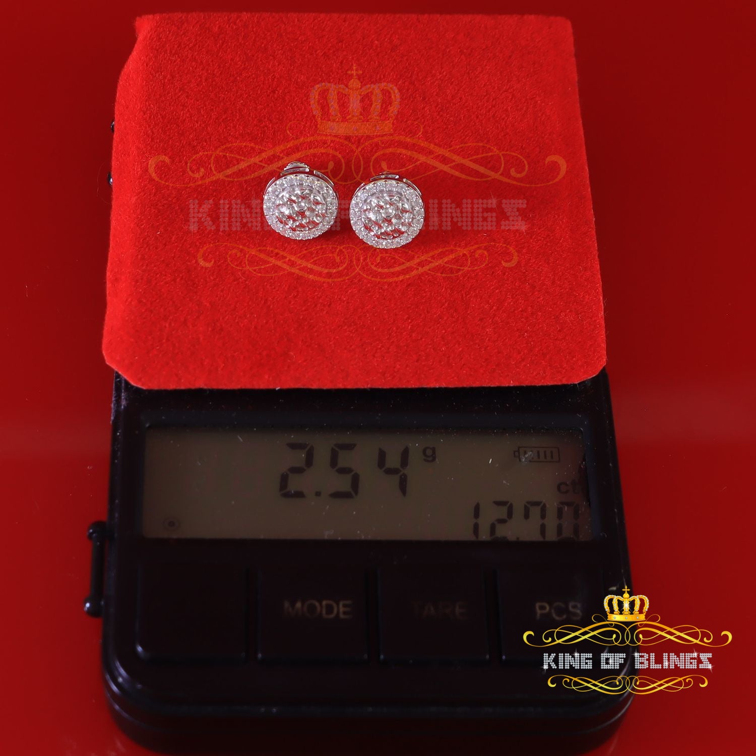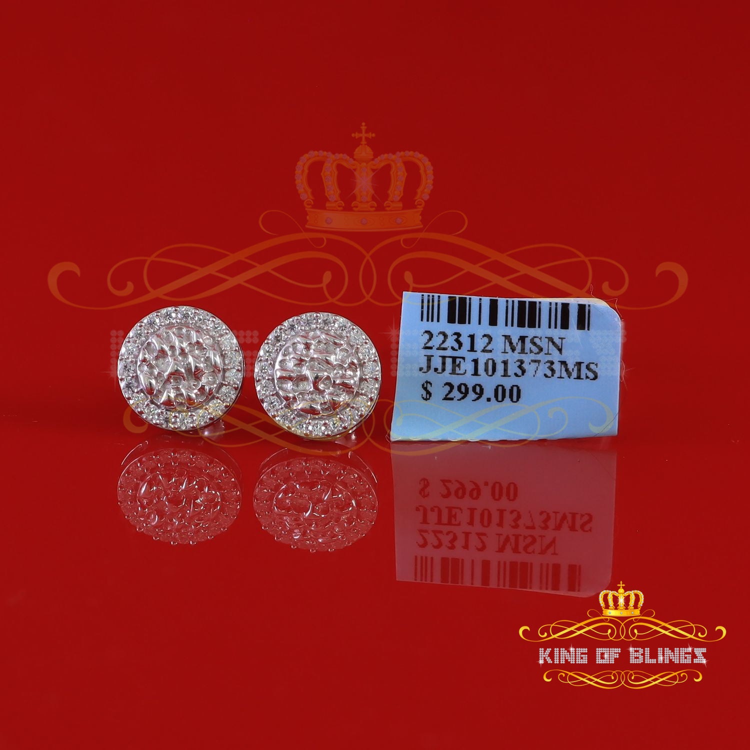 King of Bling's 1.50ct Moissanite White 925 Sterling Silver Women's Circle Shape Nugget Earrings