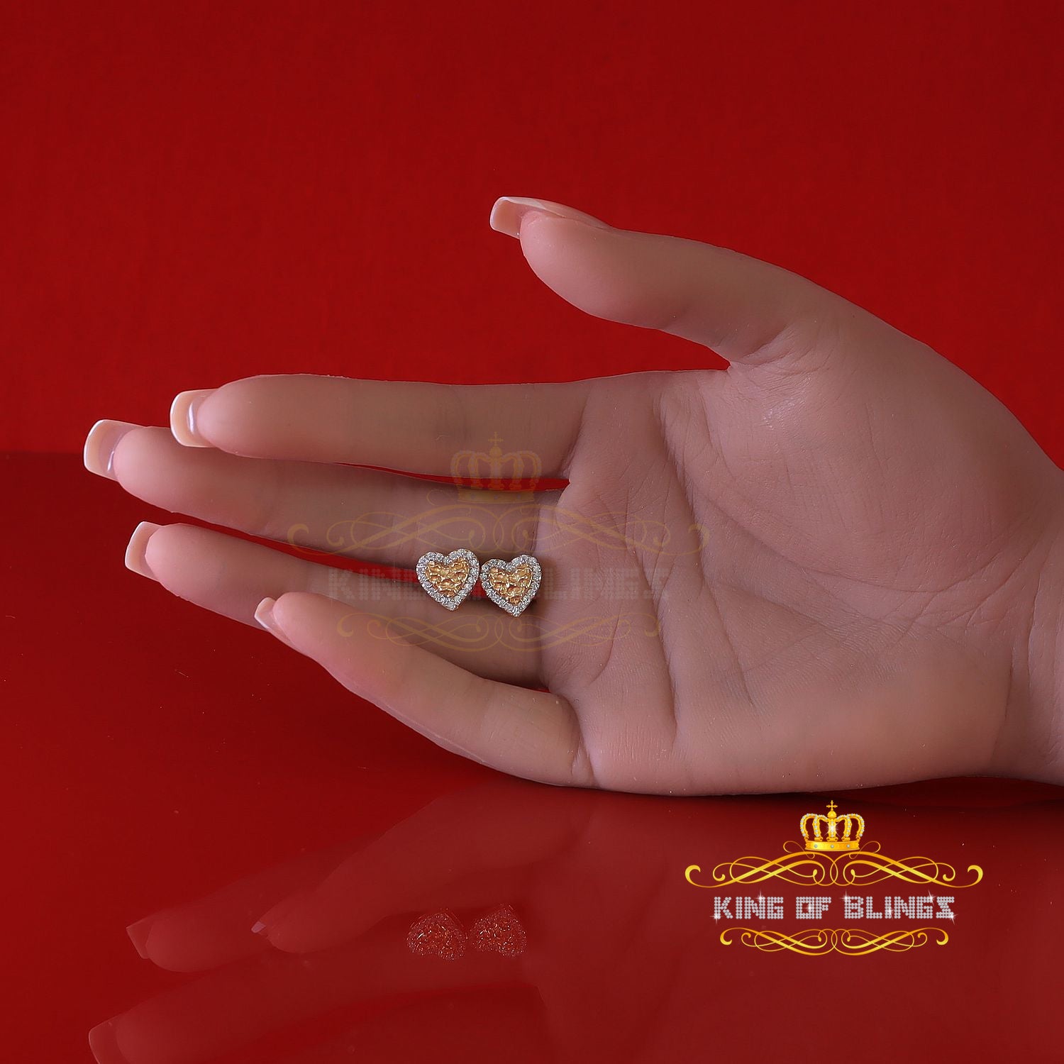 King of Bling's 1.50ct Moissanite Yellow 925 Sterling Silver Women's Heart Shape Nugget Earrings