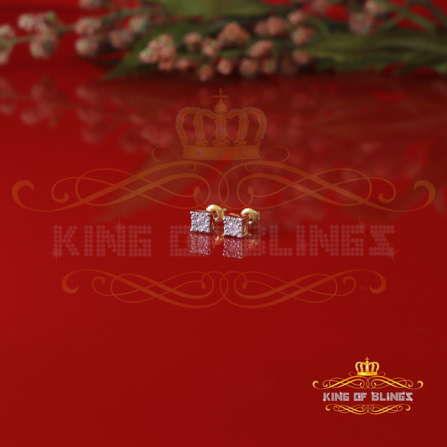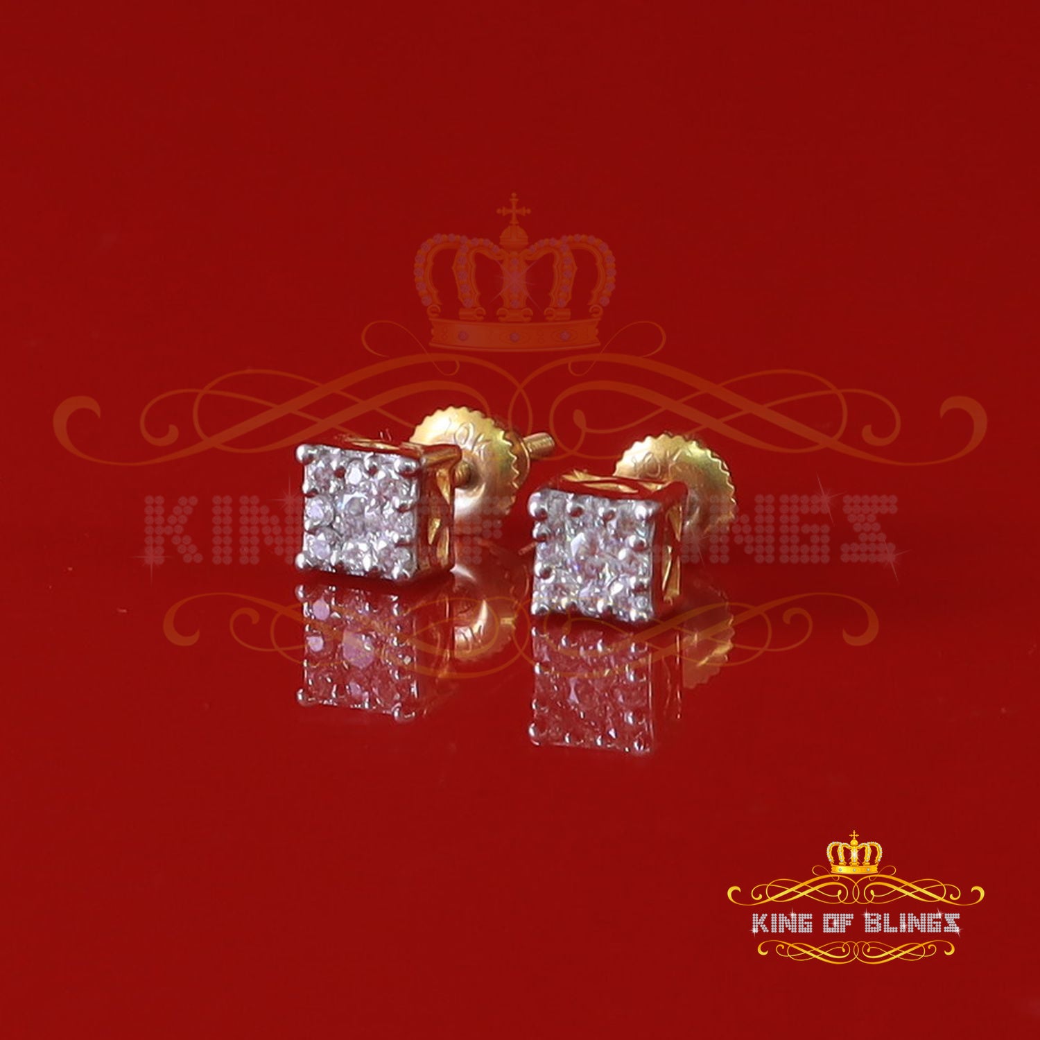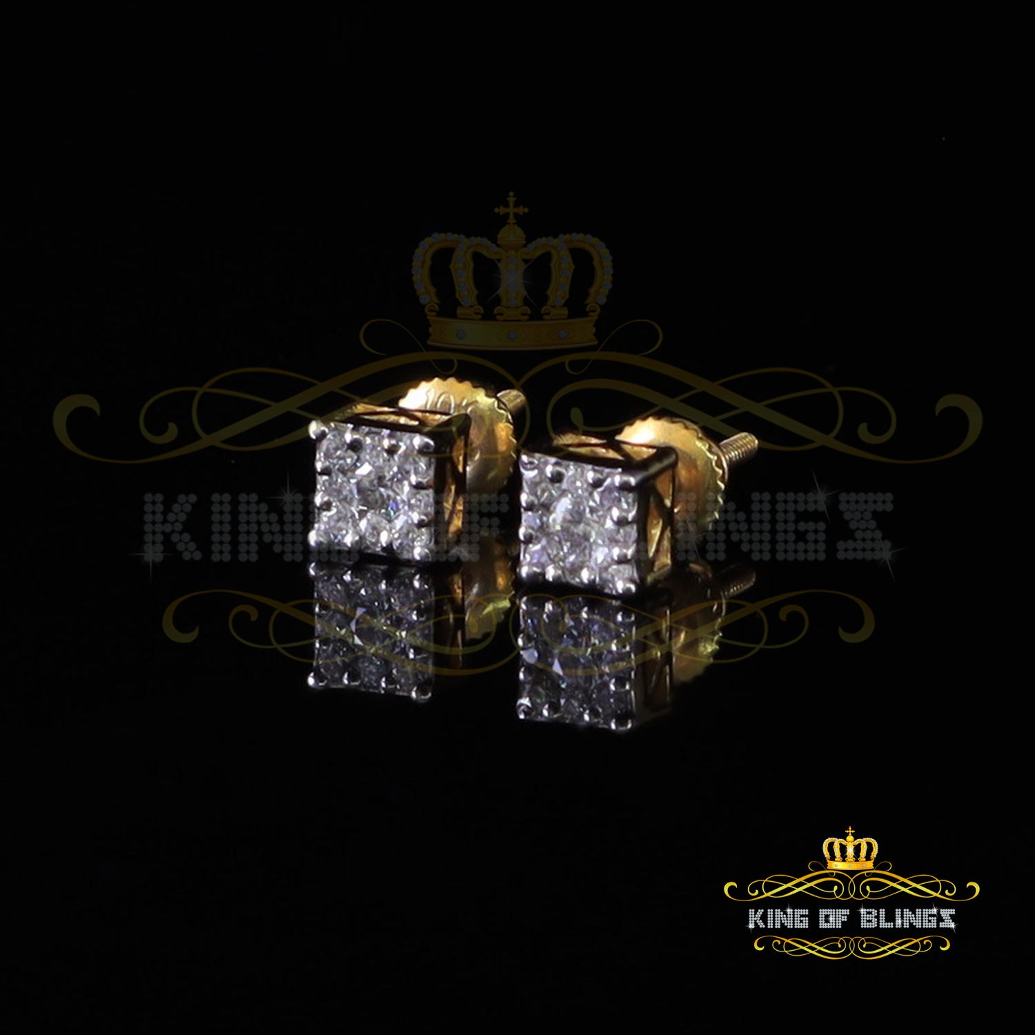 King Of Bling's 10k Real Yellow Gold 0.25ct Vvs 'D' Color Real Moissanite Stud Square Earrings