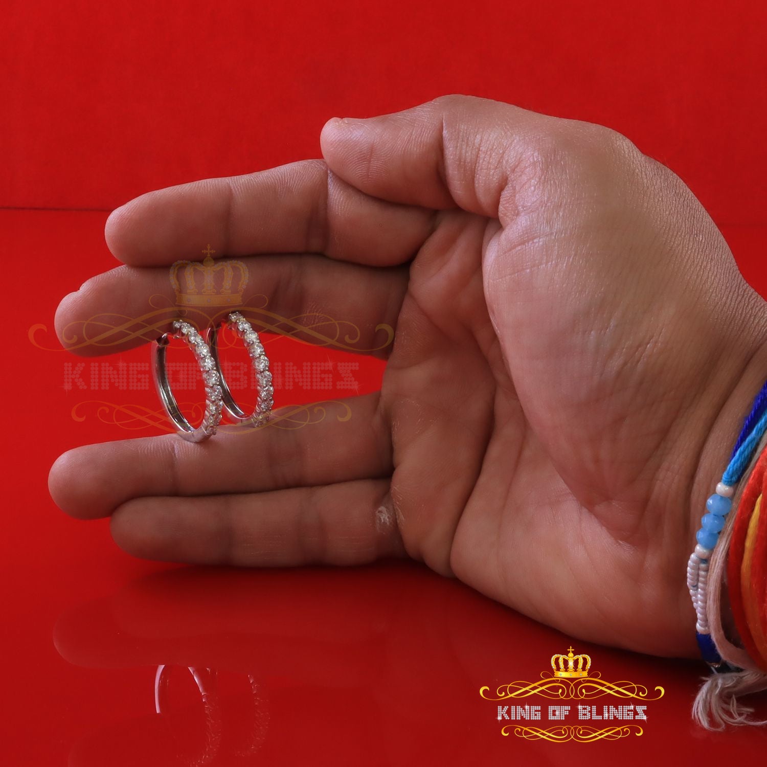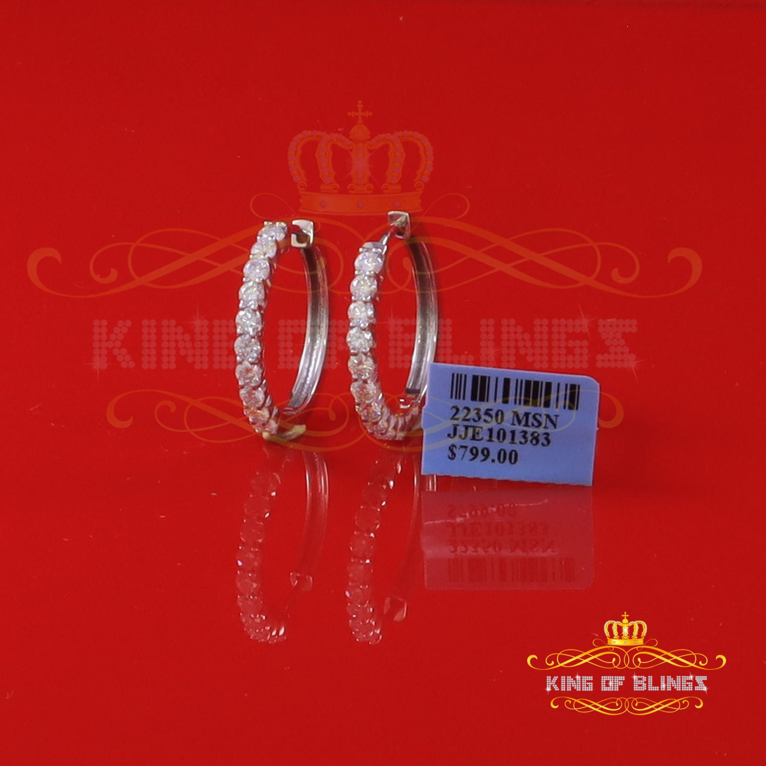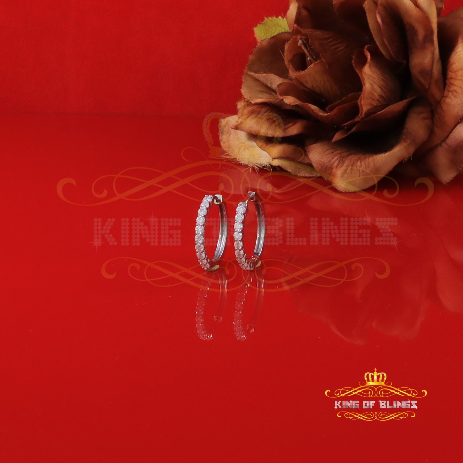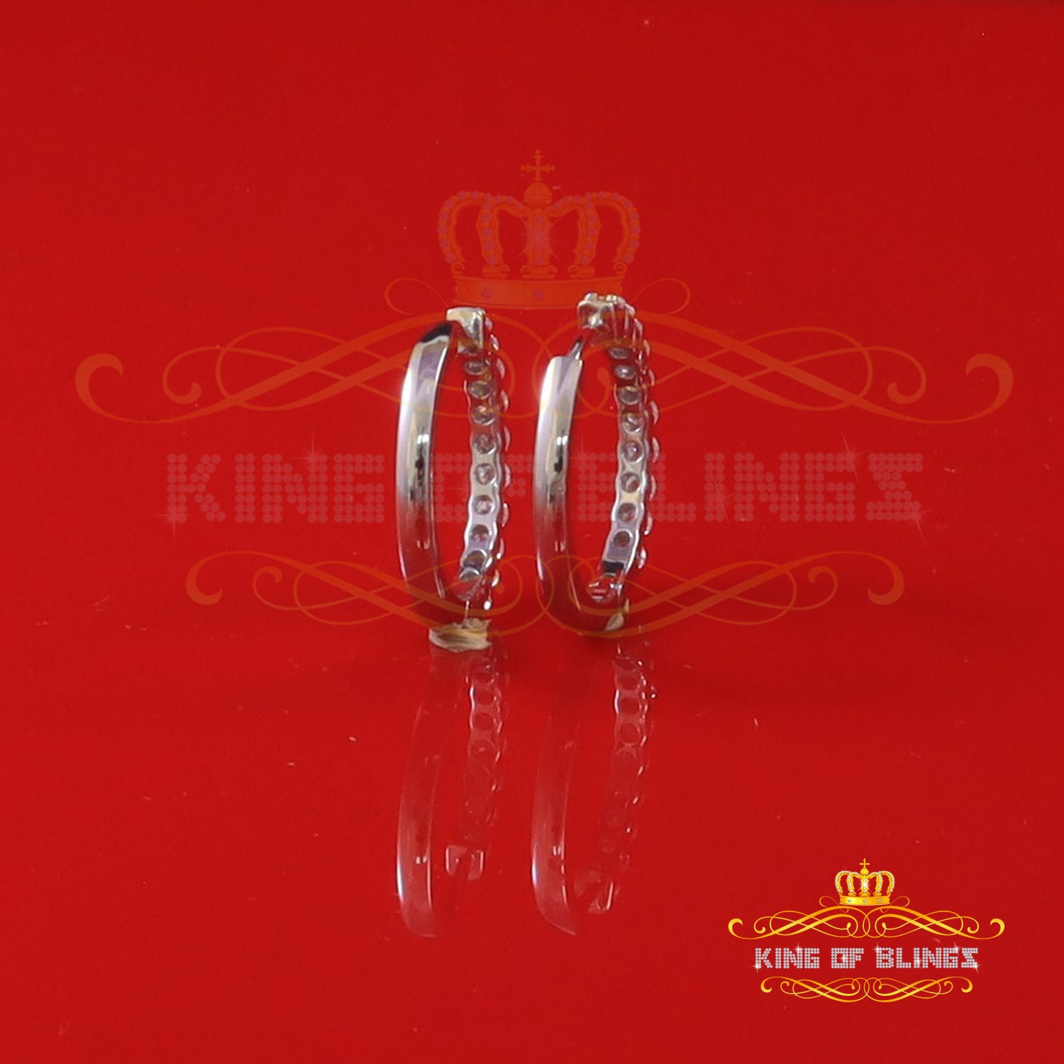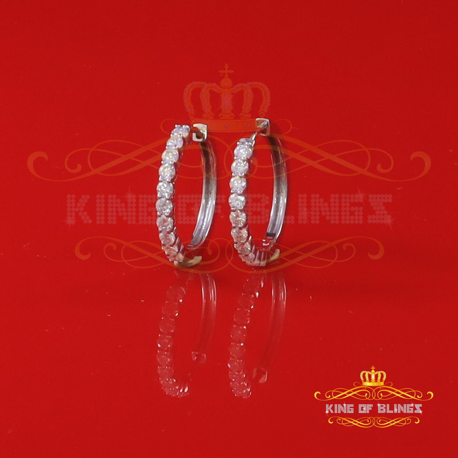 King of Bling's 2.00ct Moissanite White 925 Sterling Silver Women's Hoop Earrings