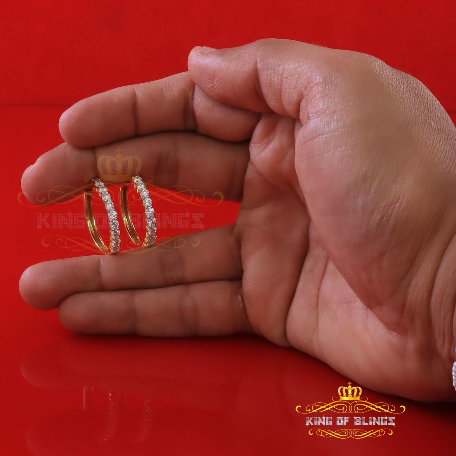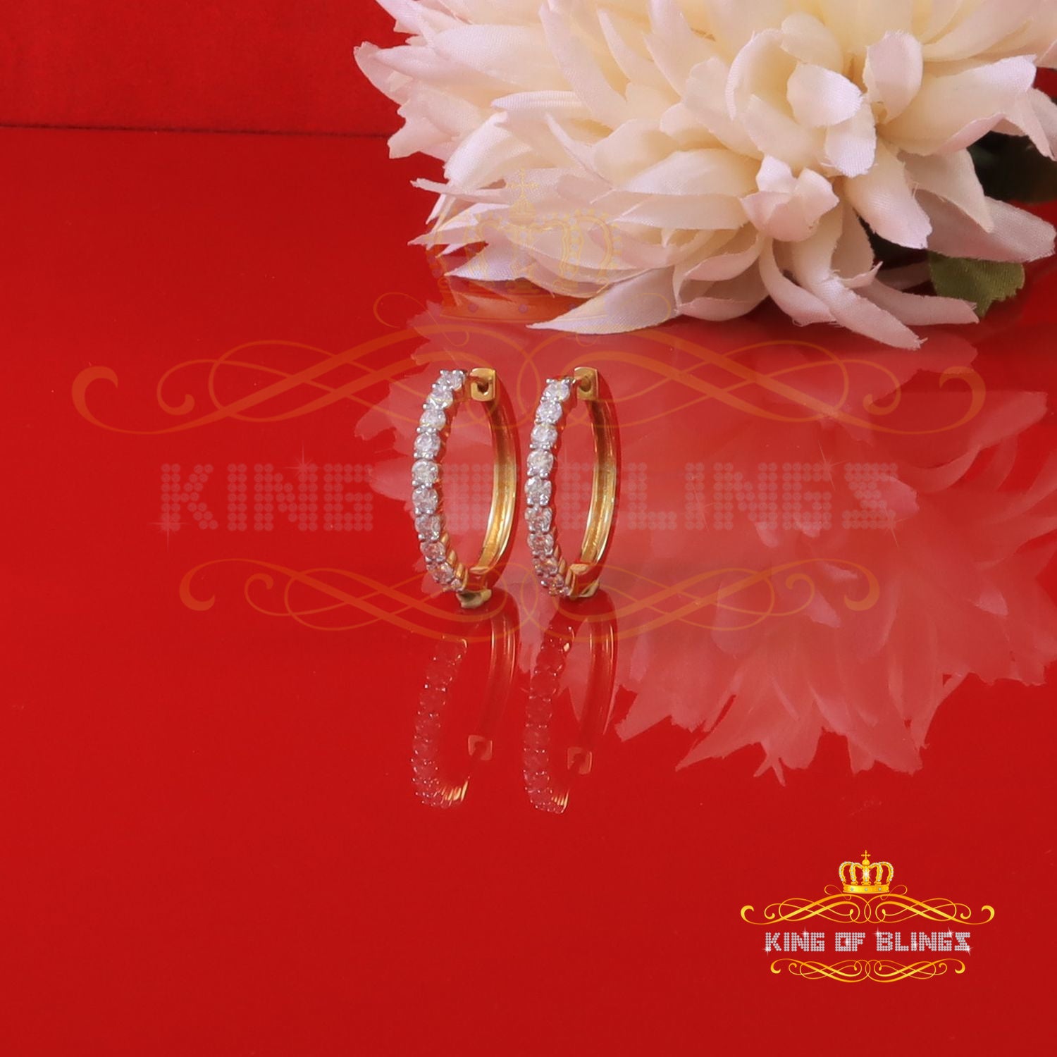 King of Bling's 2.00ct Moissanite Yellow 925 Sterling Silver Women's Hoop Earrings