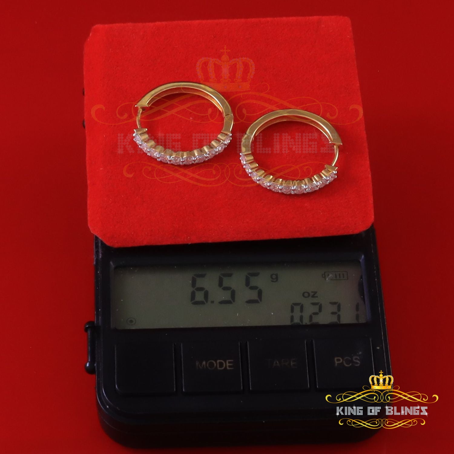 Experience the allure of these exquisite Moissanite earrings, meticulously crafted from 925 sterling Yellow silver. With their timeless beauty and exceptional quality, these earrings are destined to captivate hearts. Weighing 6.55 grams, and they strike the perfect balance between elegance and comfort, making them ideal for all genders and age groups. The glistening Moissanite stones 2.00 ct & have Clarity & Color Comes with GRA Certificate adorning these earrings emanate a radiant sparkle,