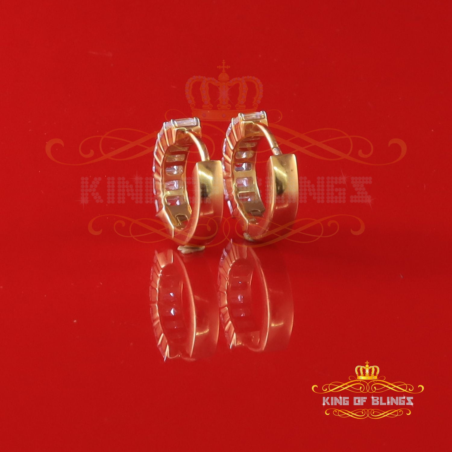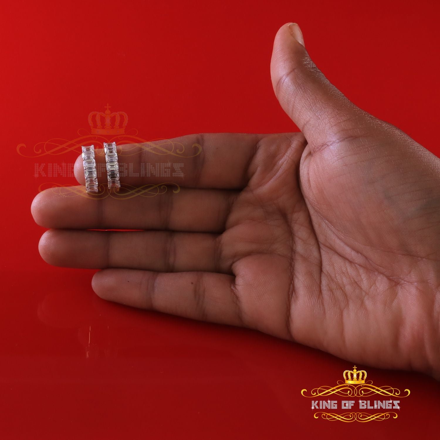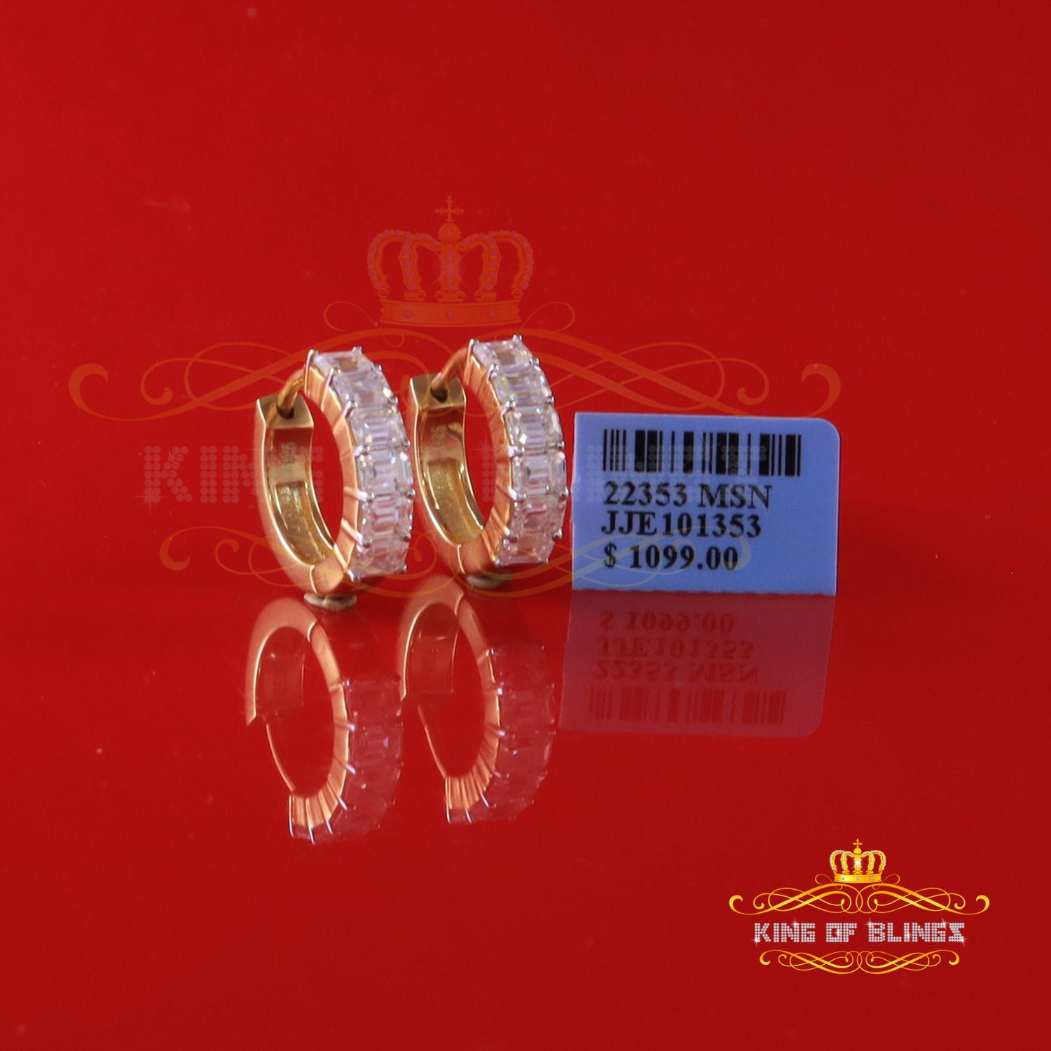 King of Bling's 3.00ct Moissanite Emerald White 925 Sterling Silver Women's Hoop Earrings