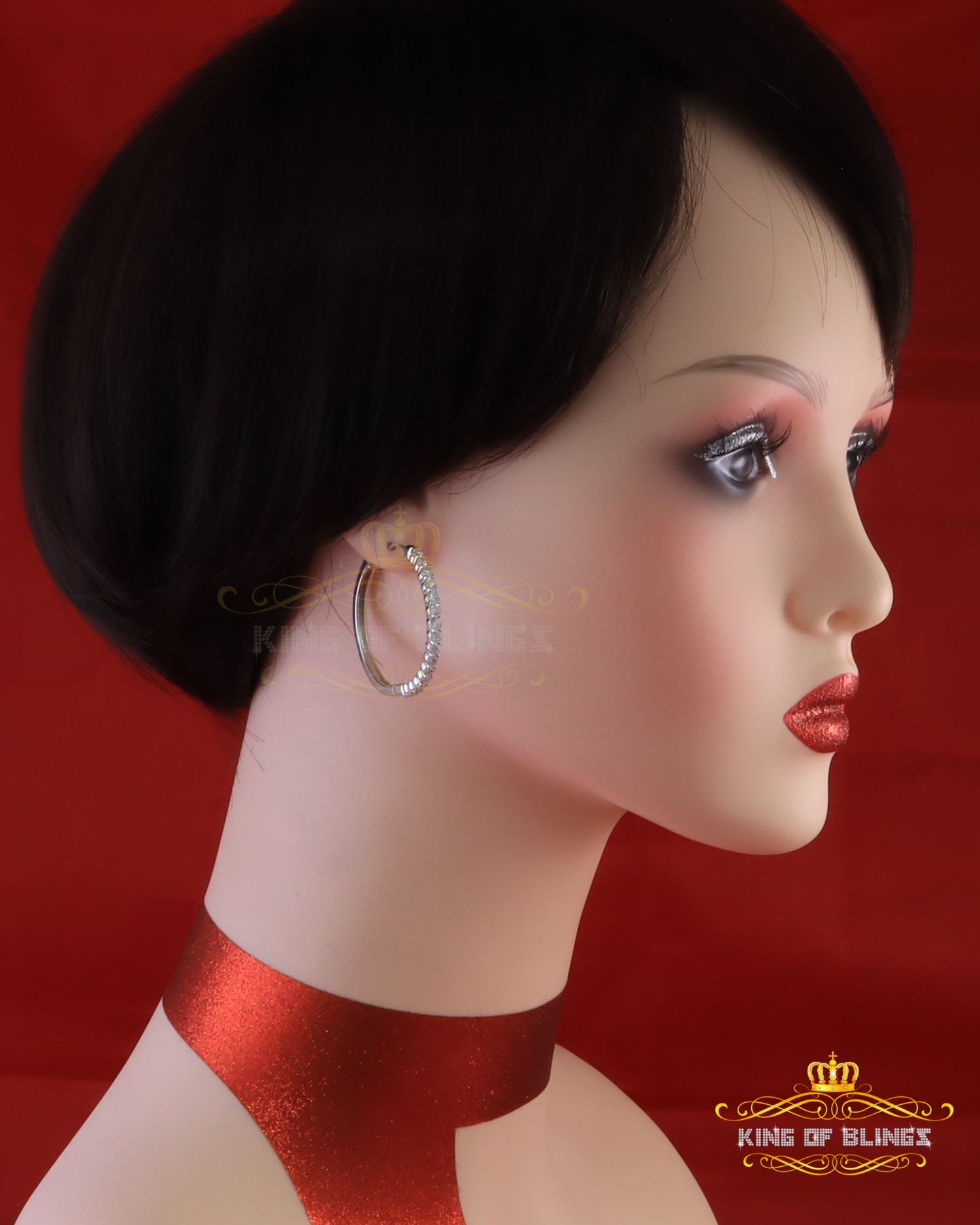 King of Bling's 3.00ct Moissanite White 925 Sterling Silver Women's In and Out Hoop Earrings