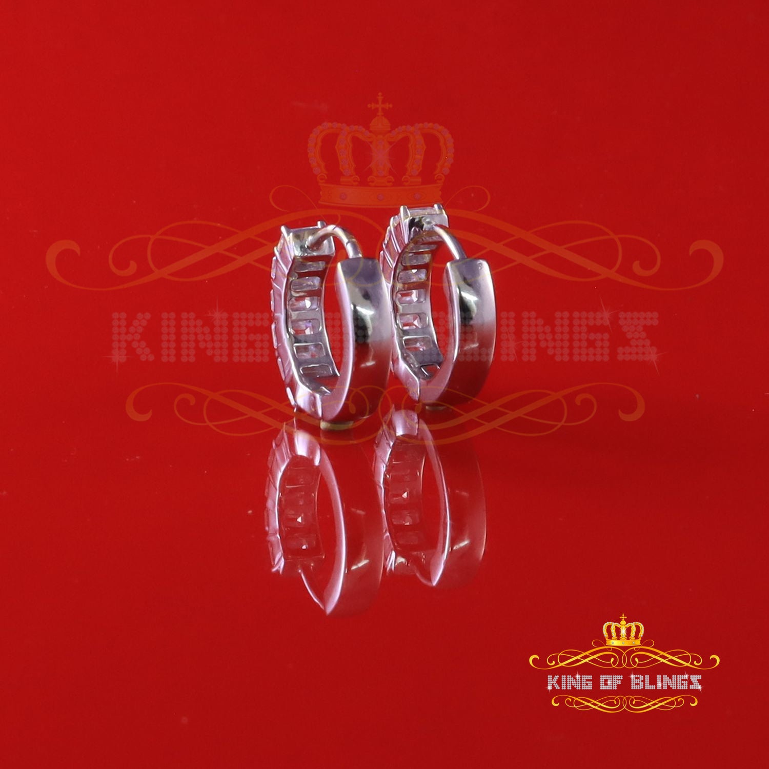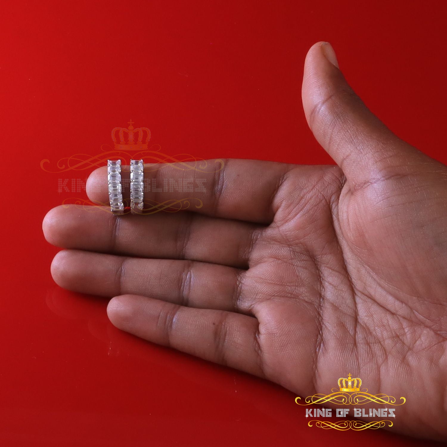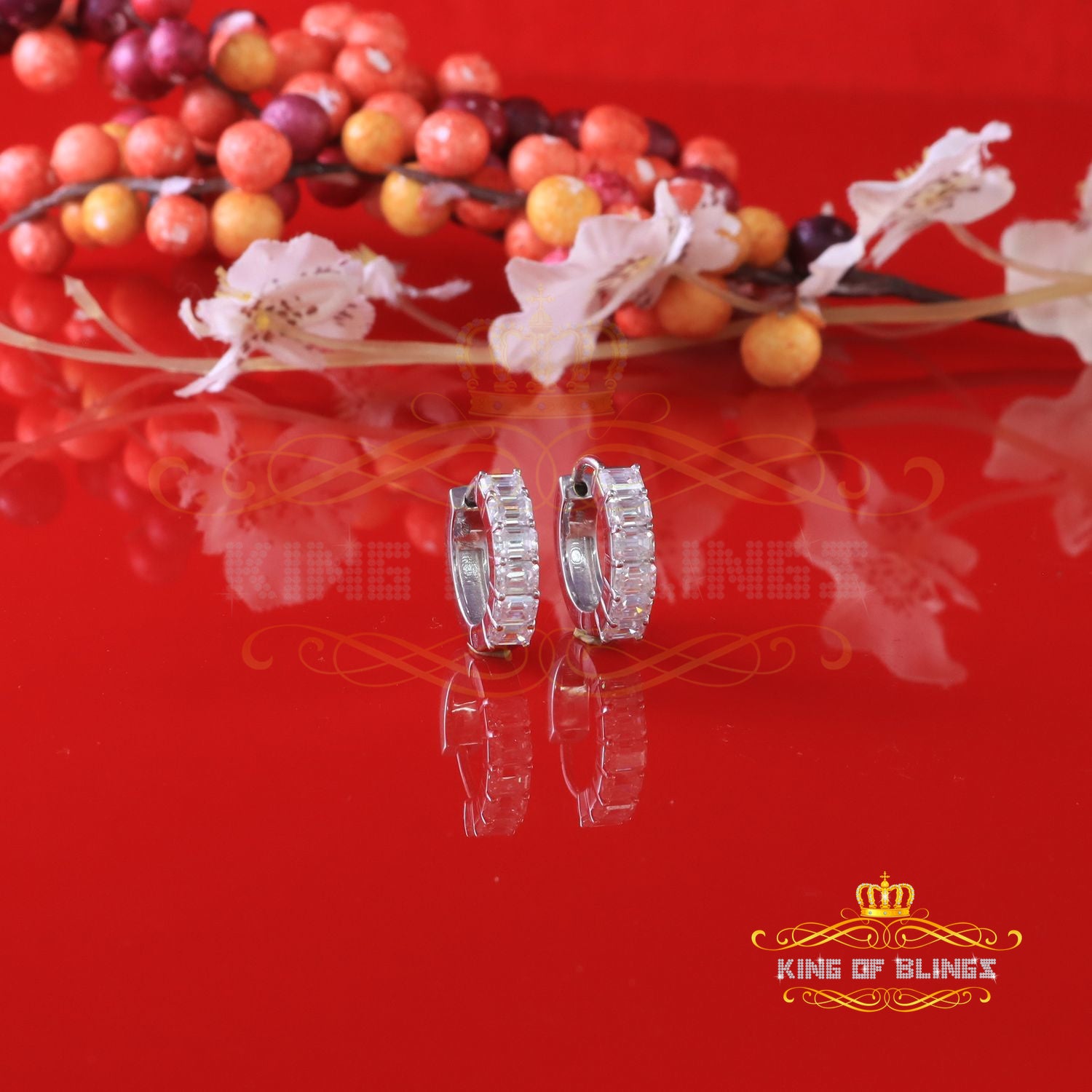 King of Bling's 3.00ct Moissanite Emerald White 925 Sterling Silver Women's Hoop Earrings