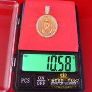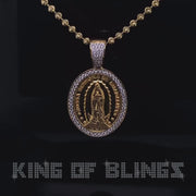 3D Oval Guadalupe Catholic Virgin Mary in CZ Yellow 925 Silver 1.63ct Pendant