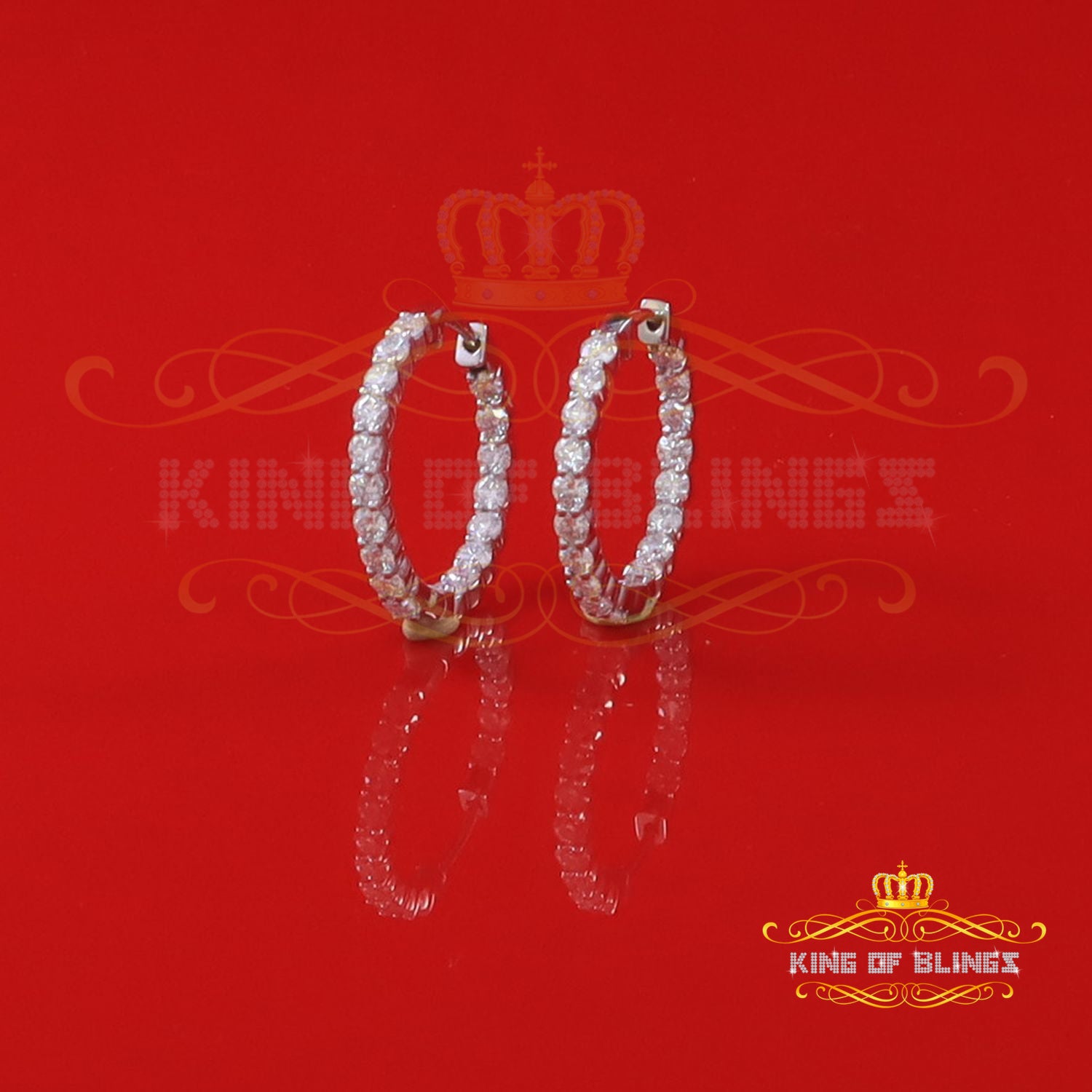 King of Bling's 4.00ct Moissanite Yellow 925 Sterling Silver Women's In and Out Hoop Earrings