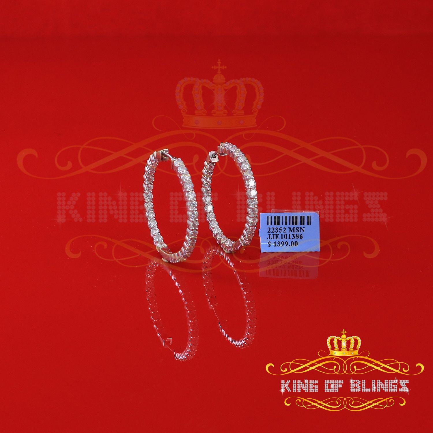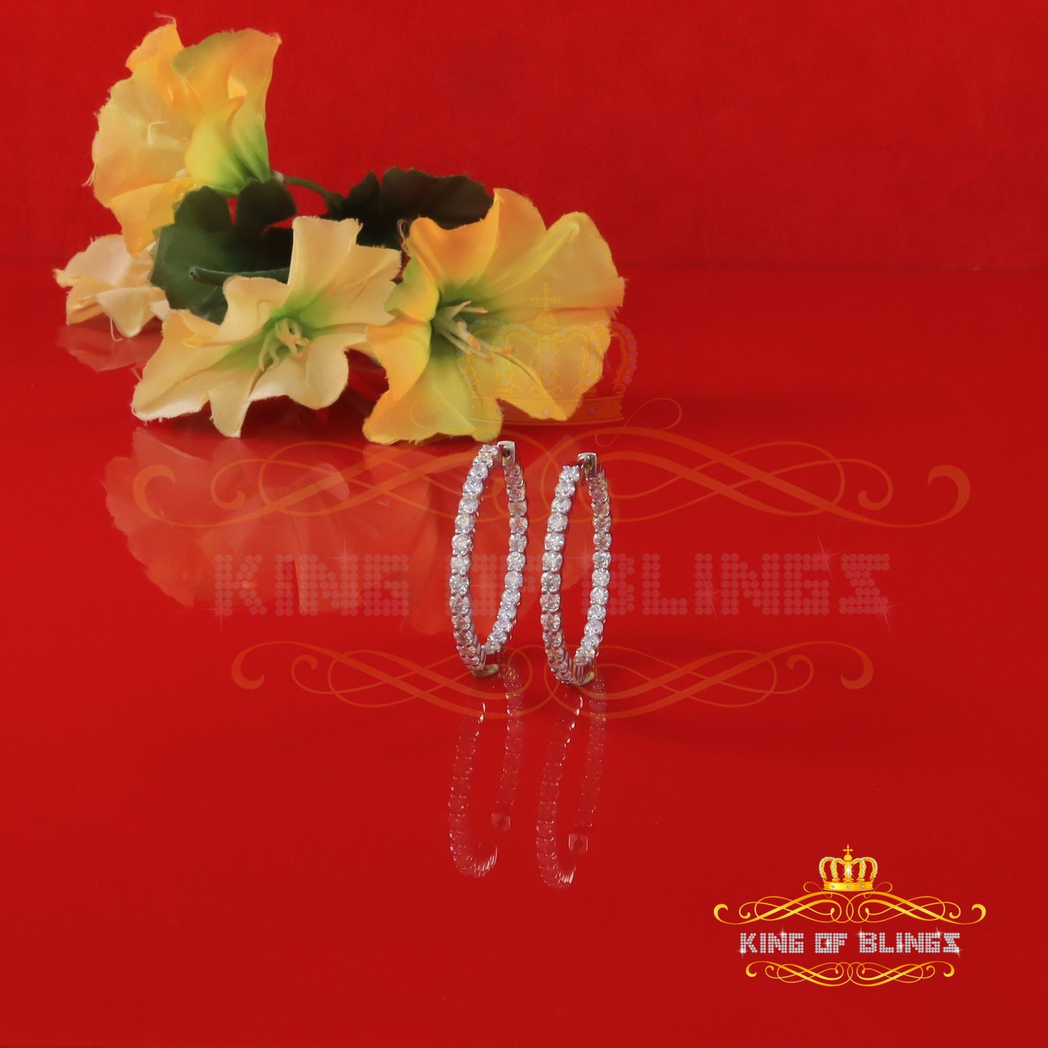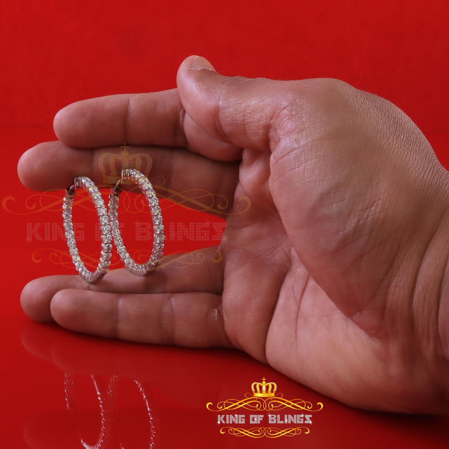 King of Bling's 6.00ct Moissanite White 925 Sterling Silver Women's Hoop Earrings
