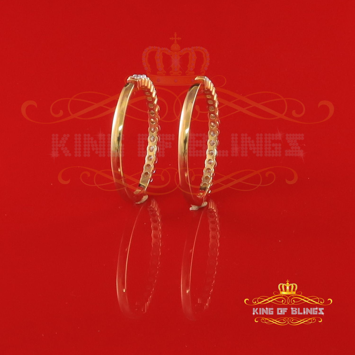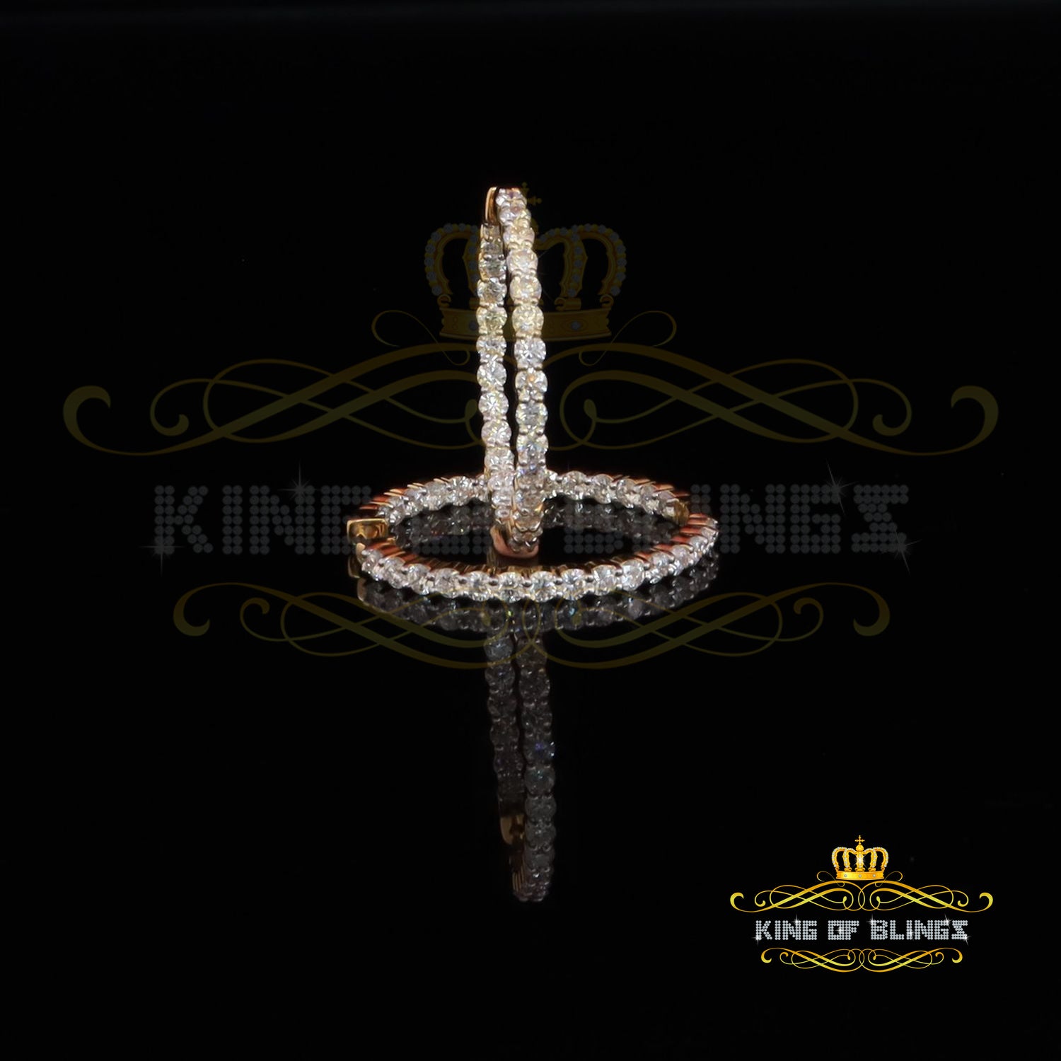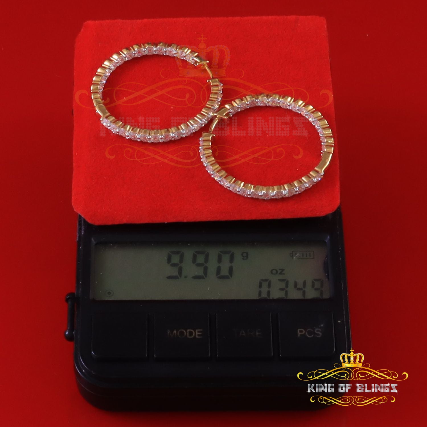 King of Bling's 6.00ct MoissaniteYellow925 Sterling Silver Women's In and Out Hoop Earrings