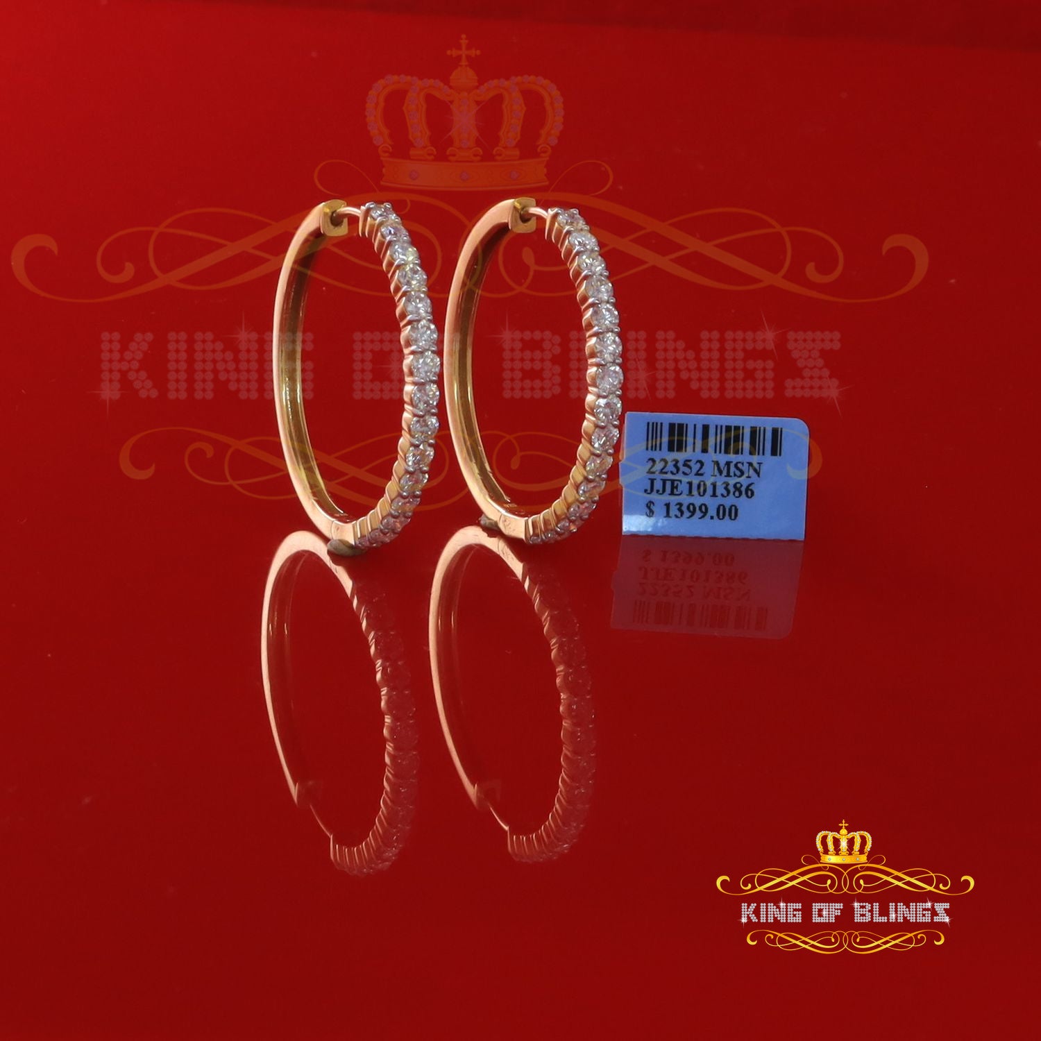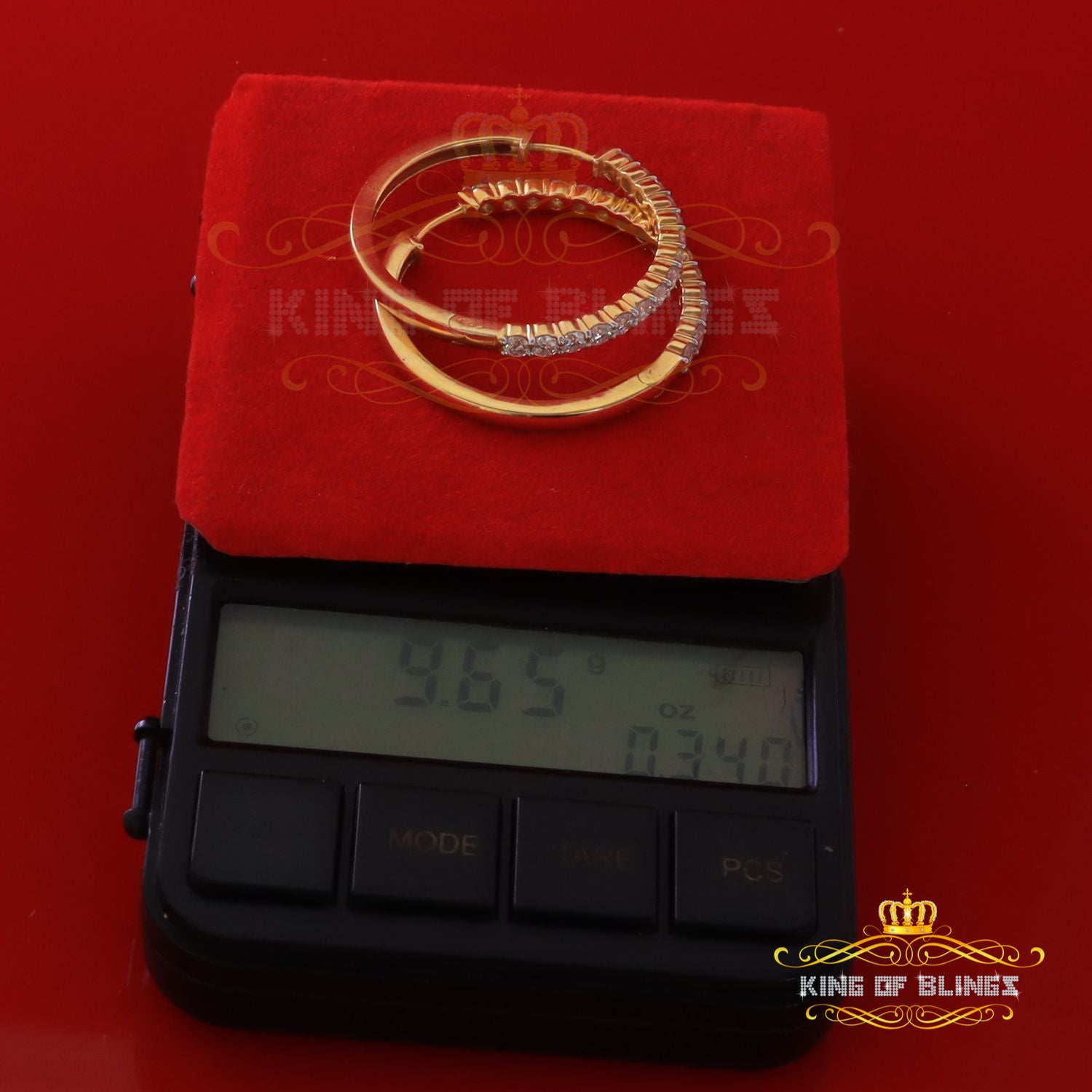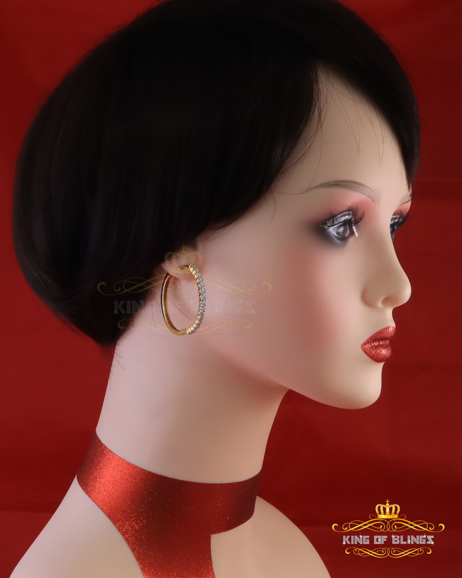 King of Bling's 6.00ct MoissaniteYellow925 Sterling Silver Women's In and Out Hoop Earrings