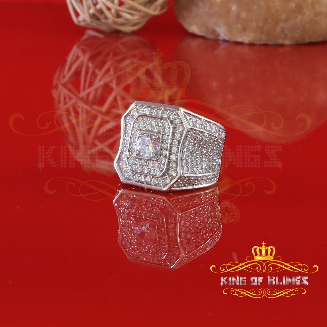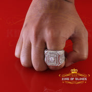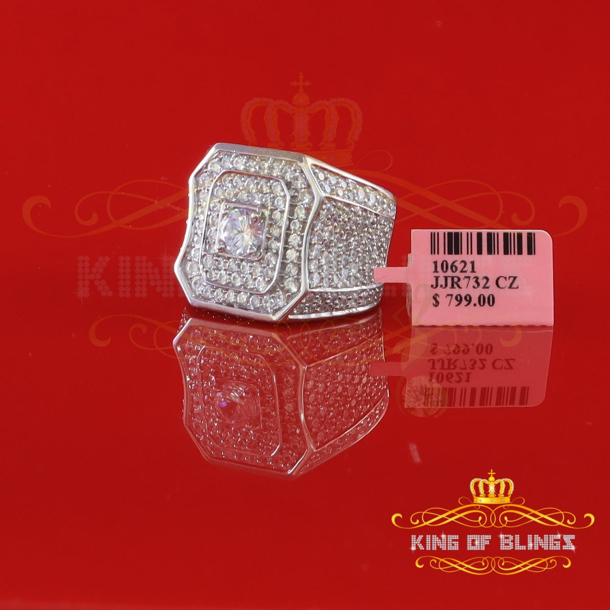 King Of Bling's925 Silver White 14.00ct Cubic Zirconia Wide Band Cocktail Men's Ring Size 10