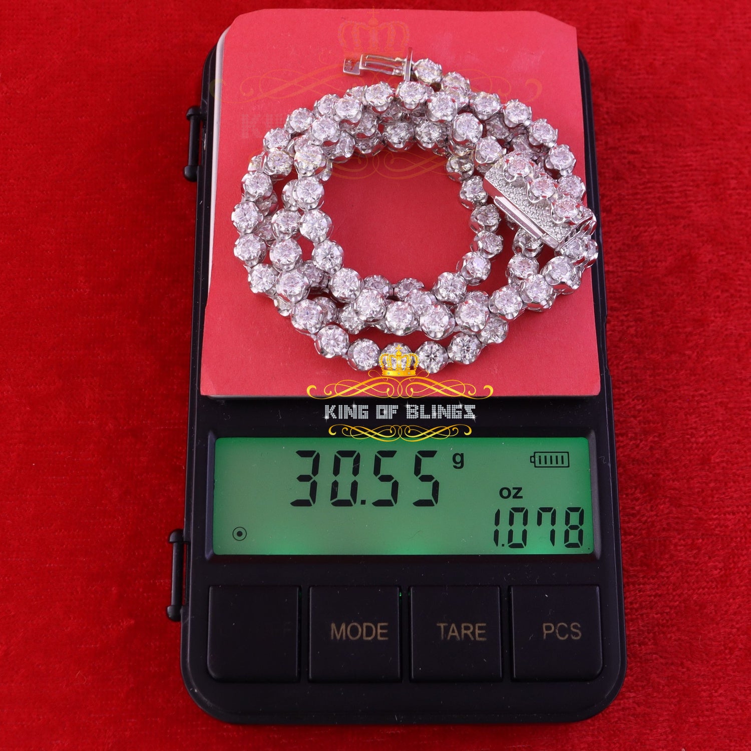 925 Silver White 20ct Moissanite Tennis Men's Necklace size 22inch & Width 6mm