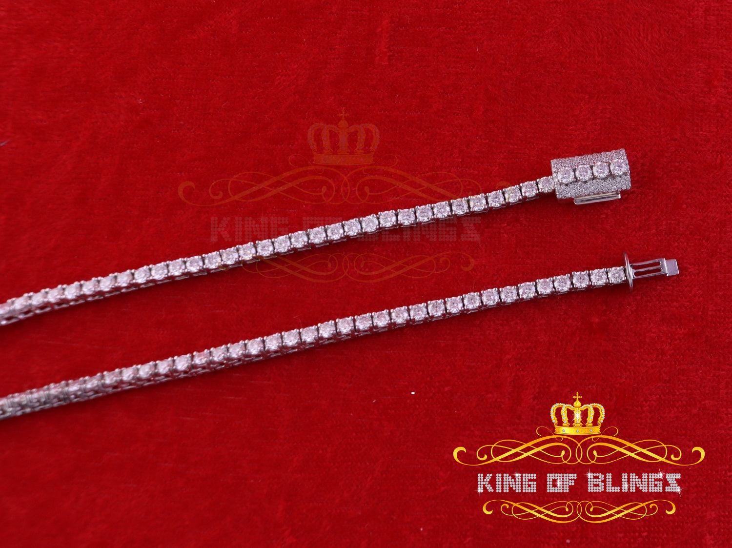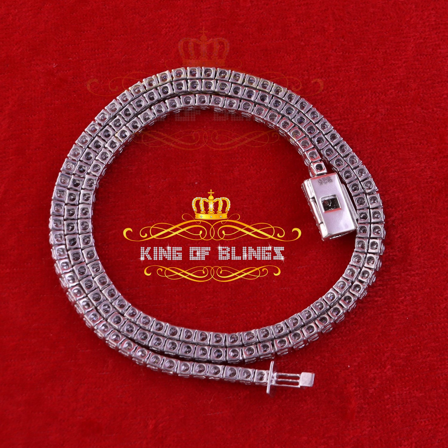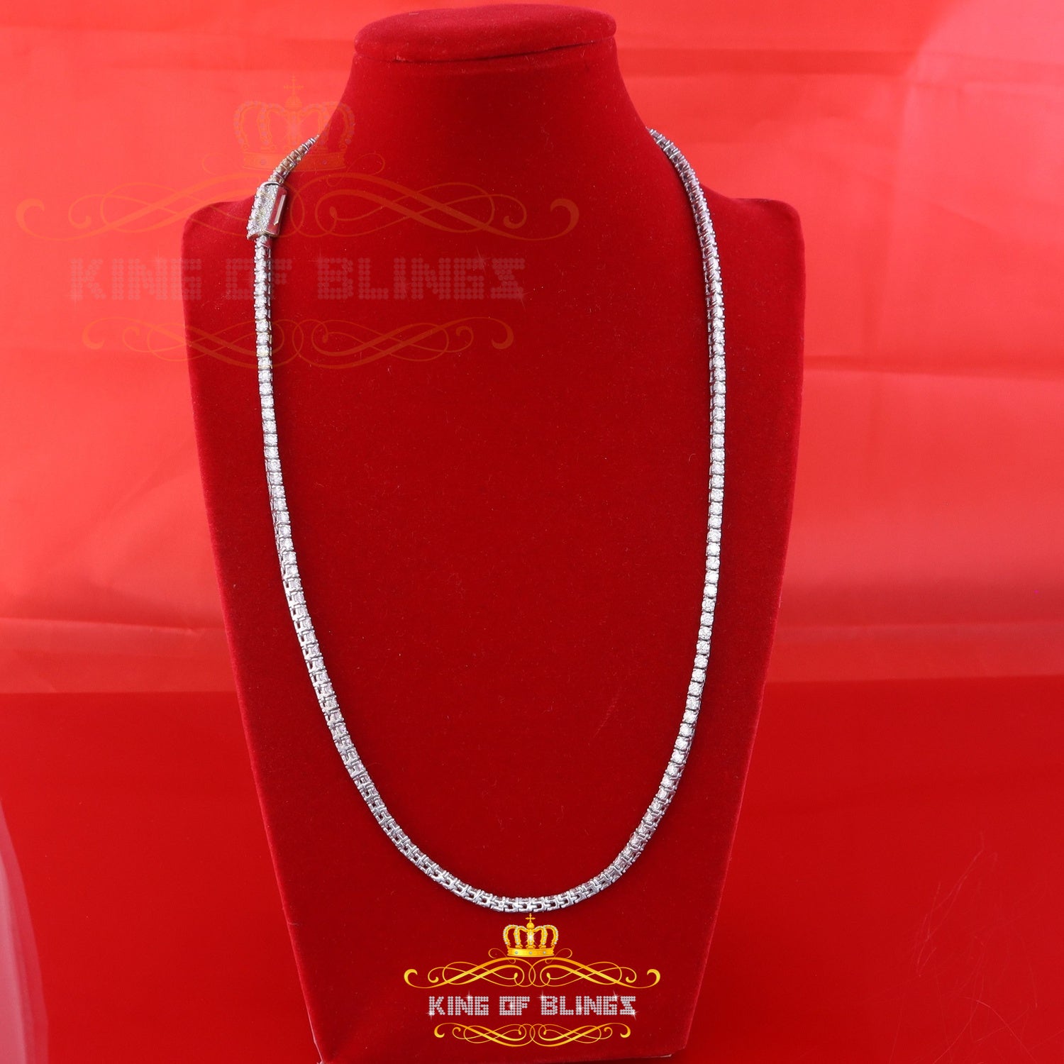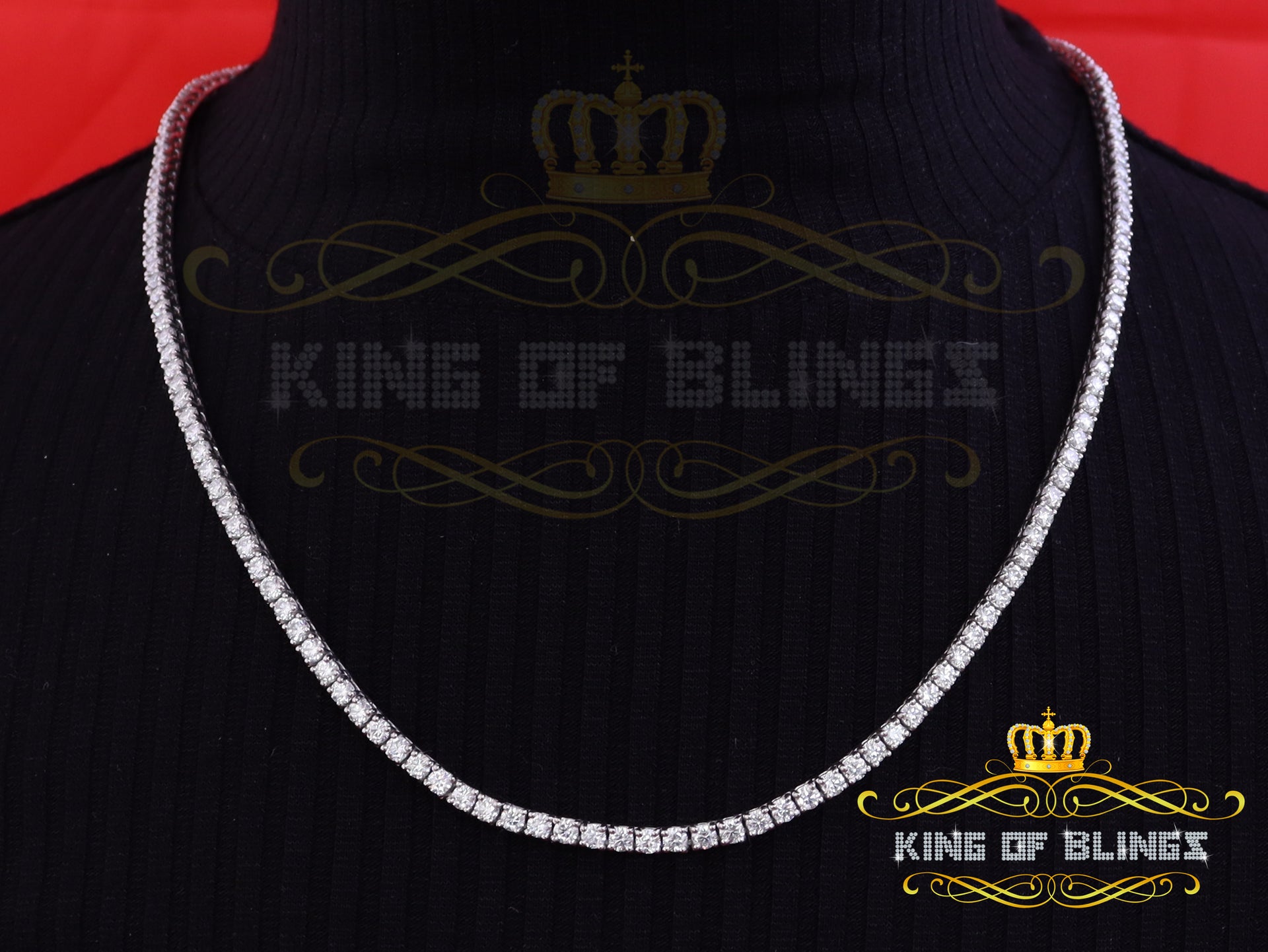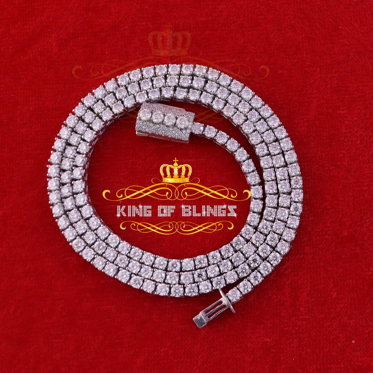 925 Silver White 23ct Moissanite Tennis Men's Necklace size 22inch & Width 3mm