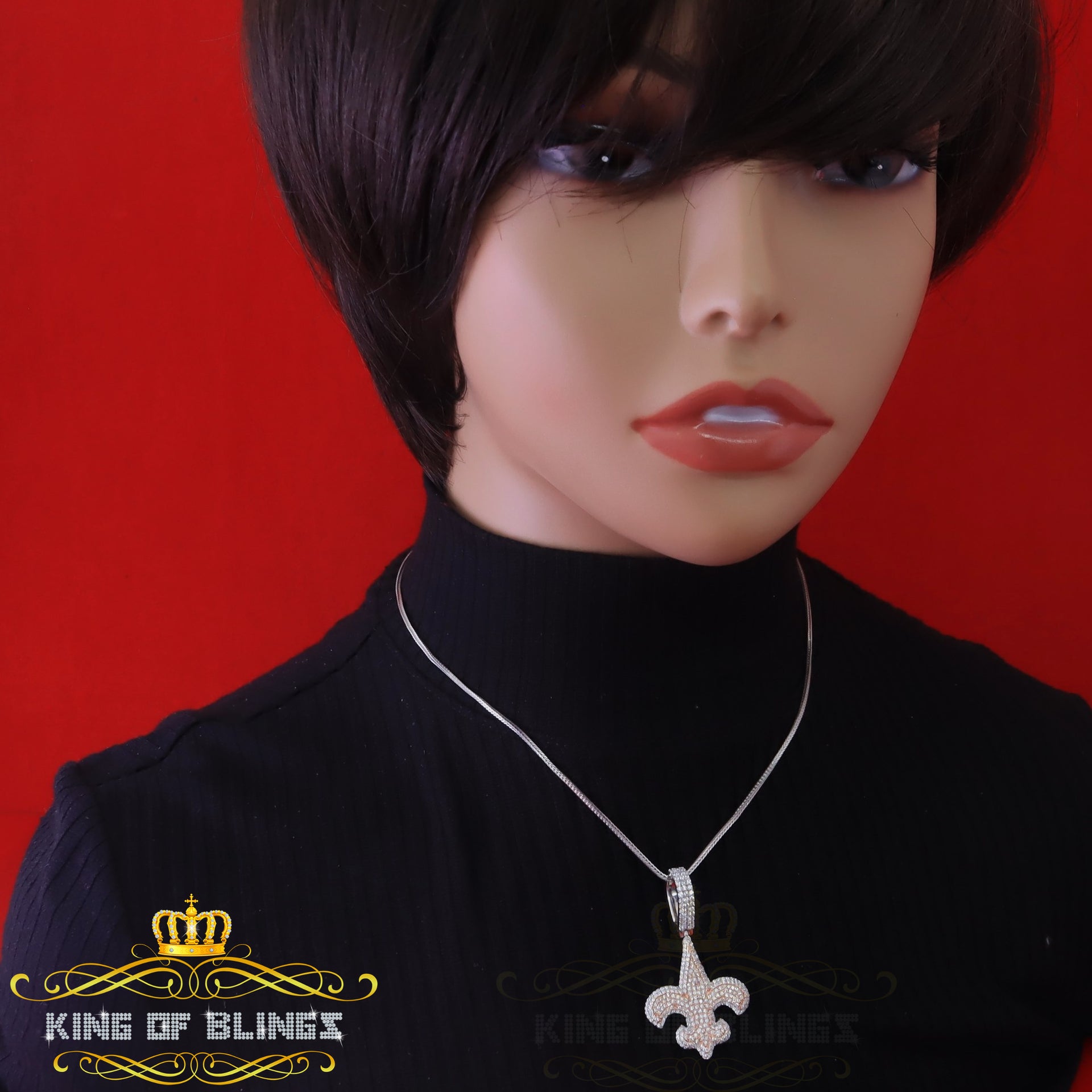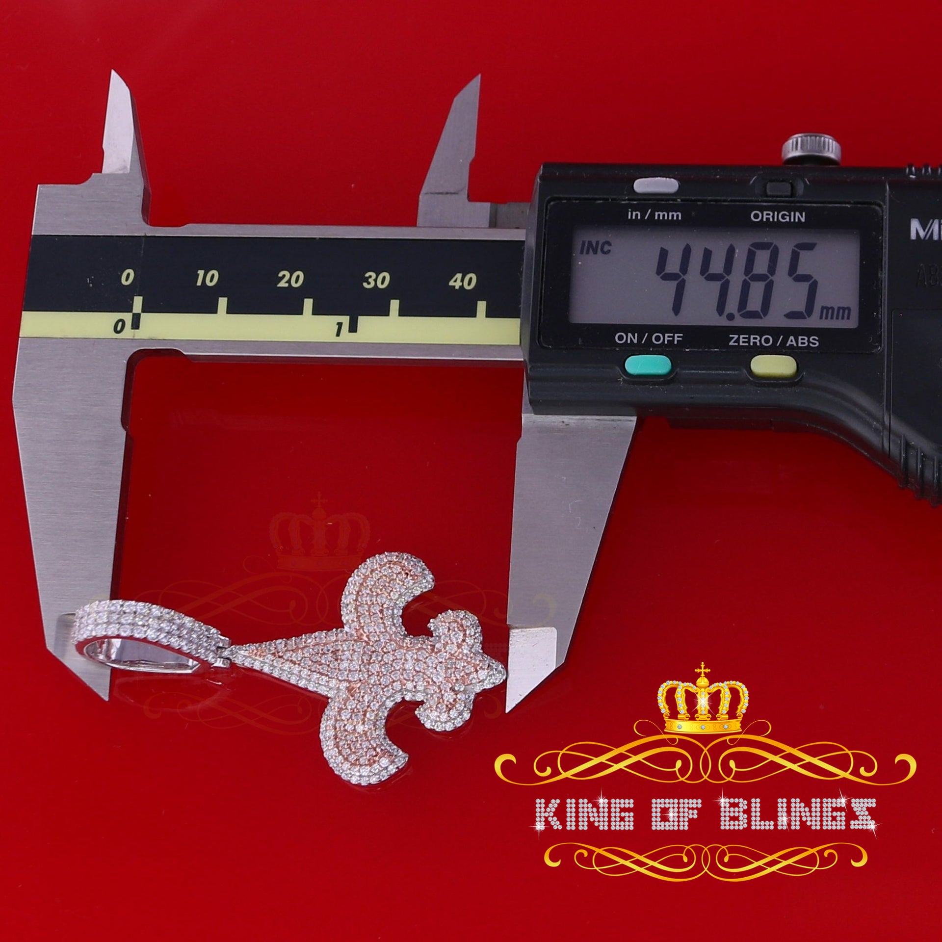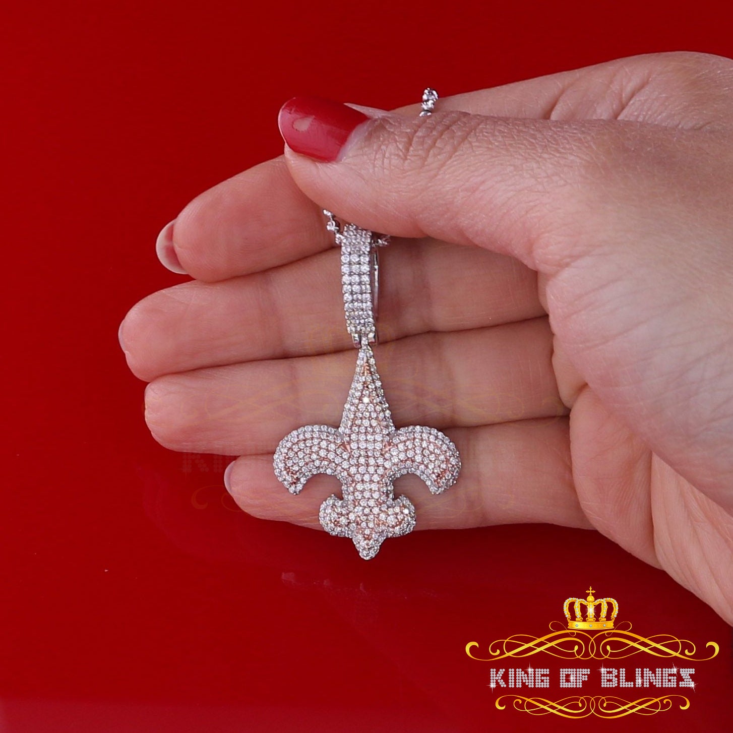 King Of Bling's Fancy 925 Sterling Silver Fleur de Lis White Pendant with 7.04ct Cubic Zirconia