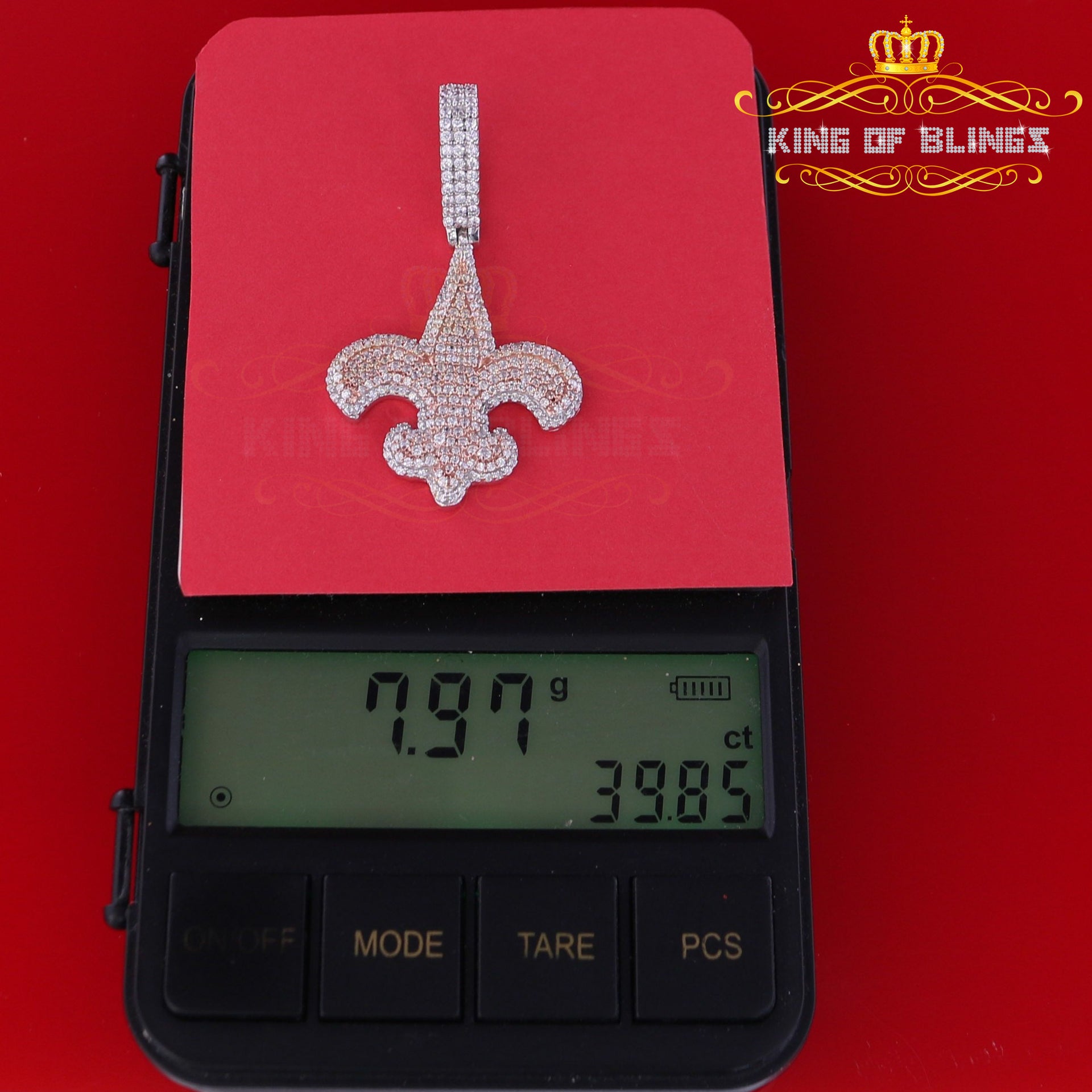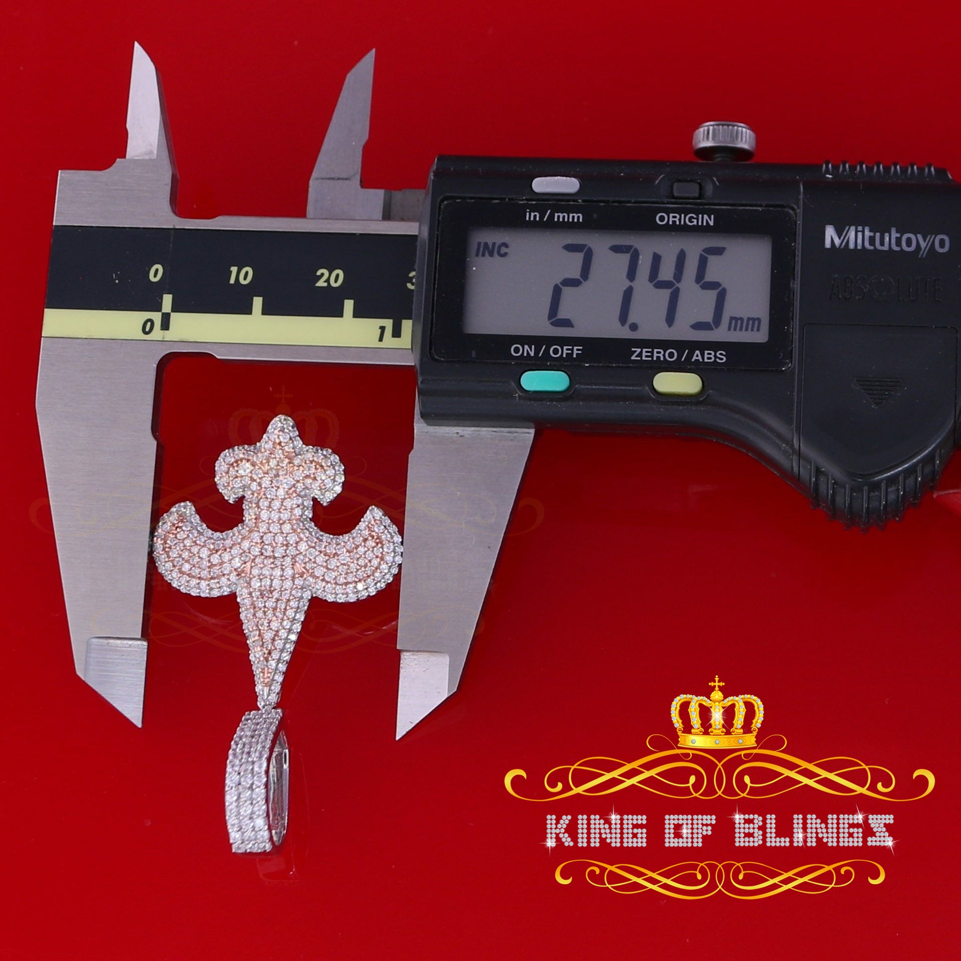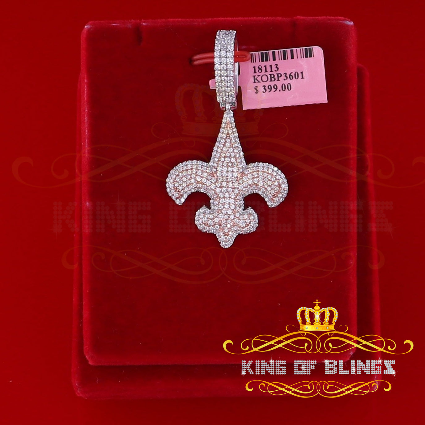 King Of Bling's Fancy 925 Sterling Silver Fleur de Lis White Pendant with 7.04ct Cubic Zirconia