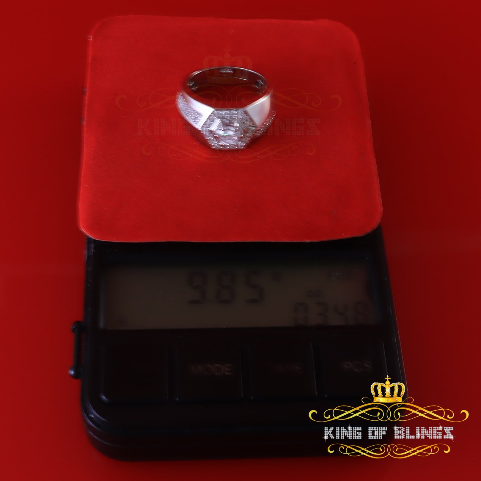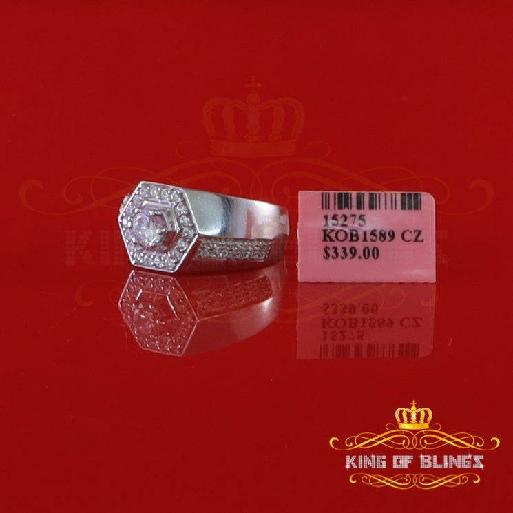 King Of Bling's925 White Silver Cubic Zirconia 2.50ct Men's Adjustable Ring From Size 9 to 11