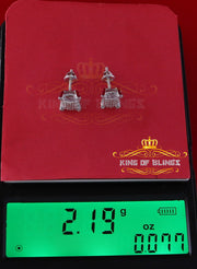 Presented as new with tags in the original packaging, these Silver Diamond earrings are ready to add a touch of sophistication to any outfit, making them a perfect choice for those seeking a combination of style and quality appealing to both men and women with their captivating sparkle. rest assured that the "King Of Blings" brand guarantees exceptional craftsmanship and materials. these womens stud earrings make a perfect gift or a stylish addition to your own jewelry collection,