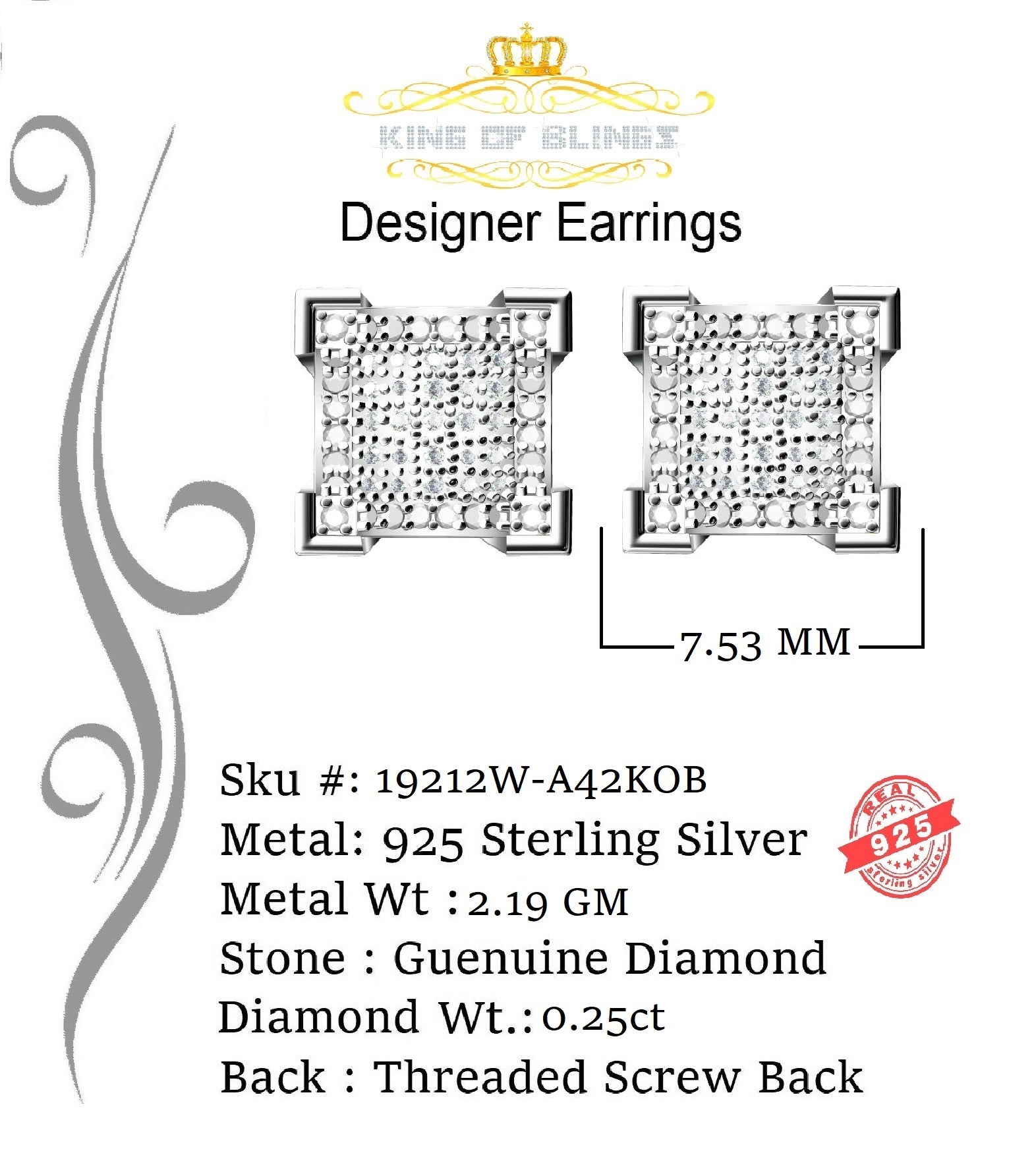 King Of Bling's Aretes Para 925 Sterling White Silver 0.25ct Diamond Women & Men Stud Earrings