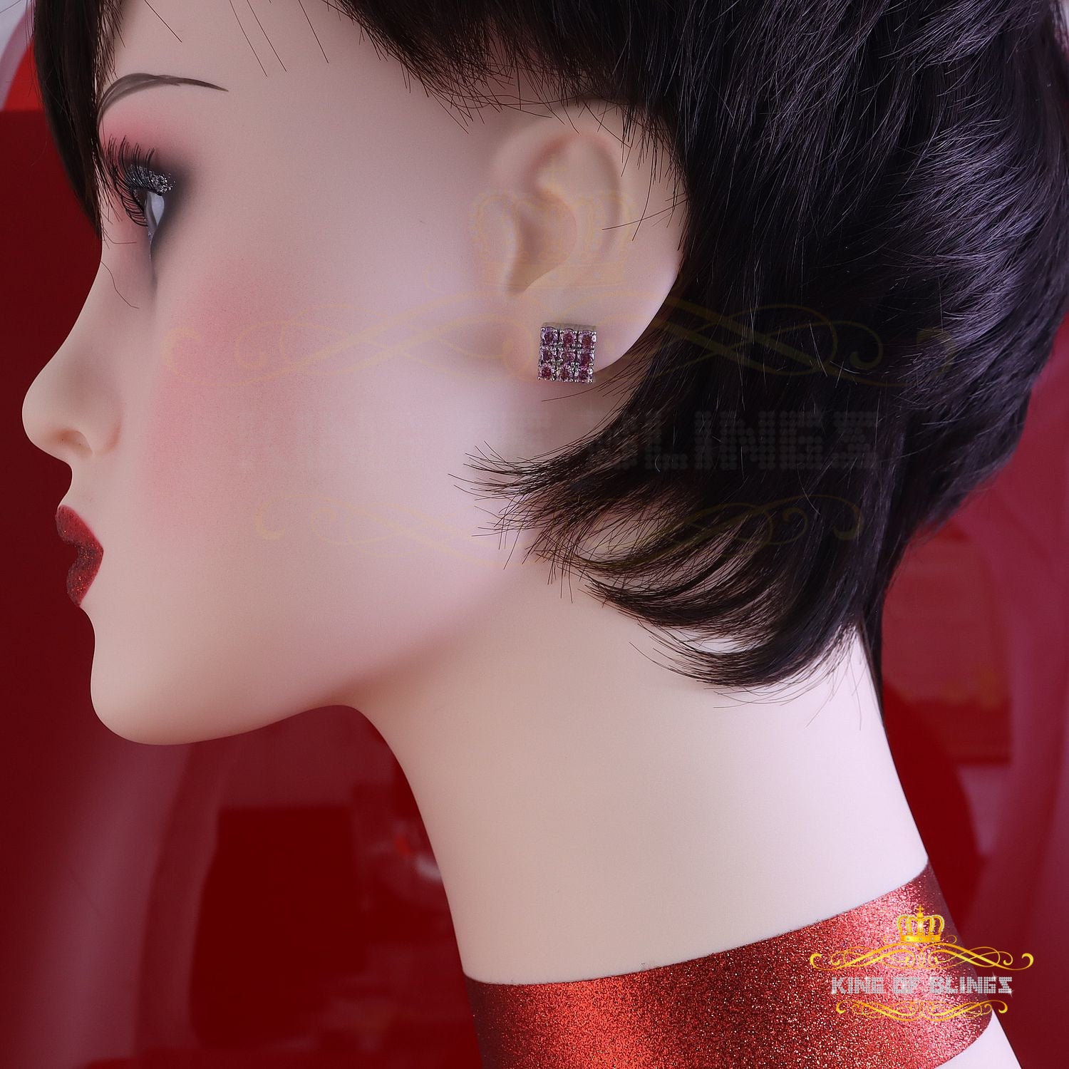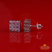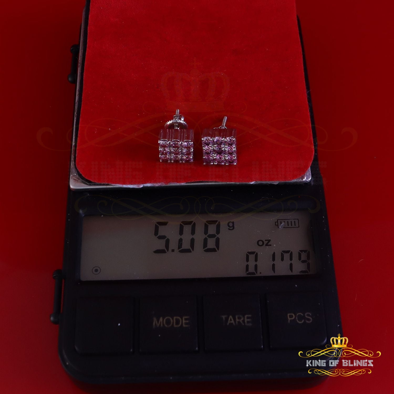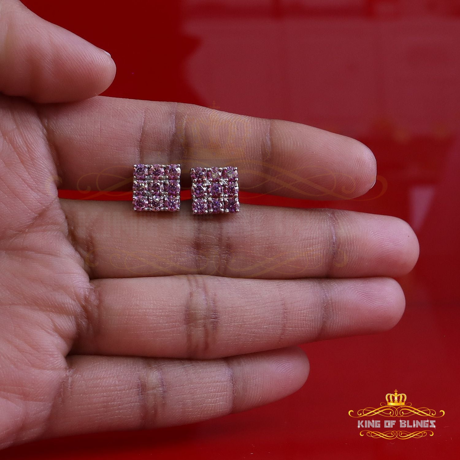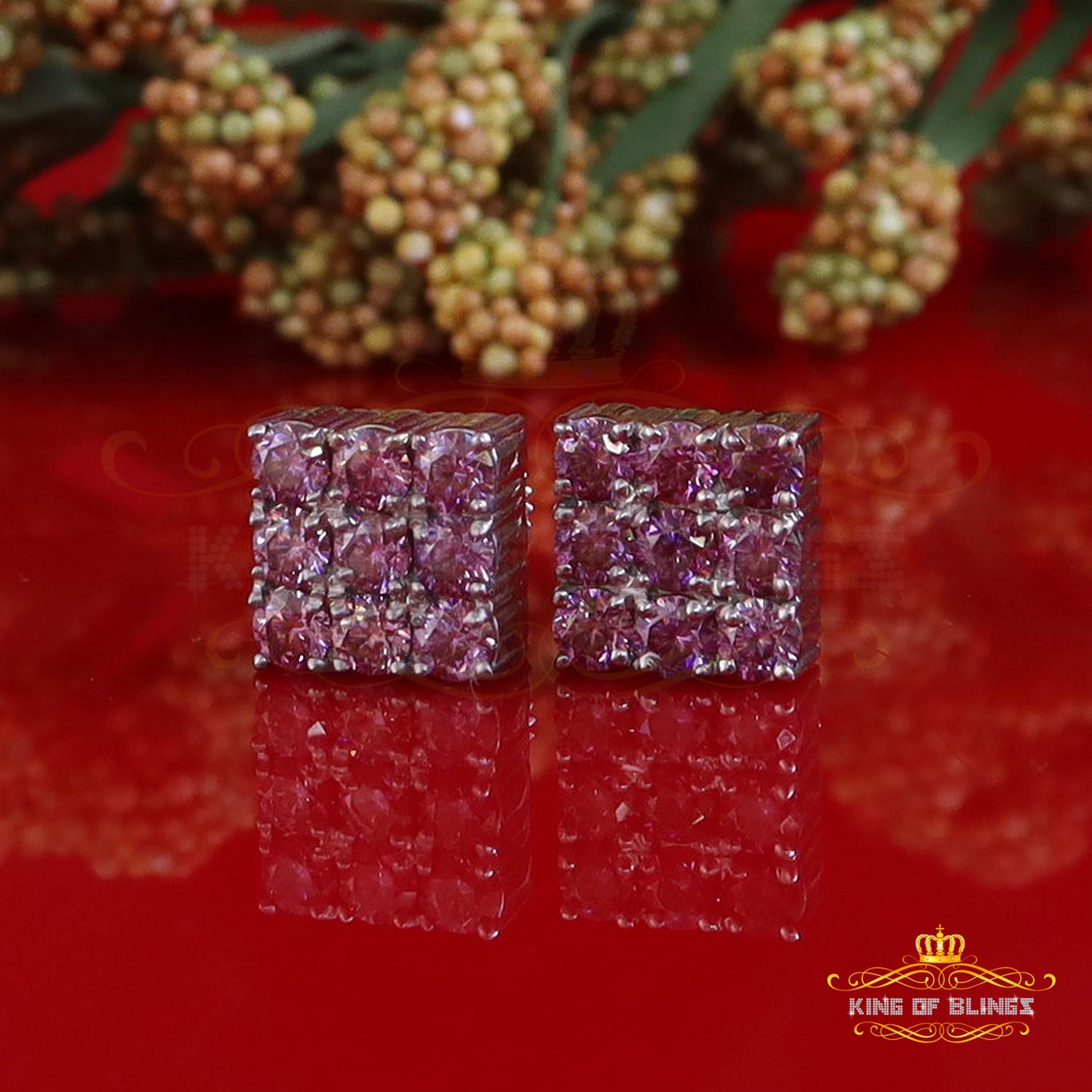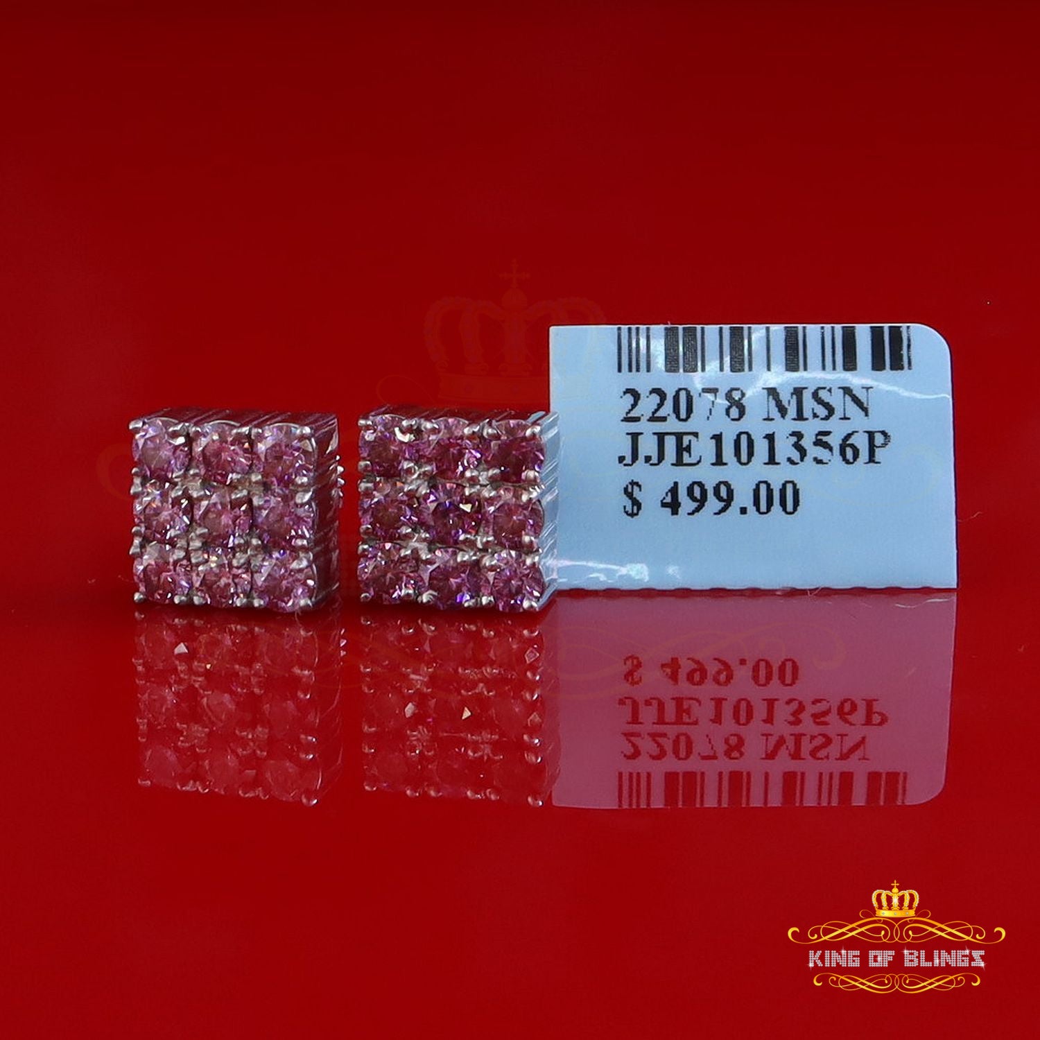 King of Bling's 925 Silver White 2.25ct VVS D Pink Moissanite Men's/Women's Square Stud Earrings