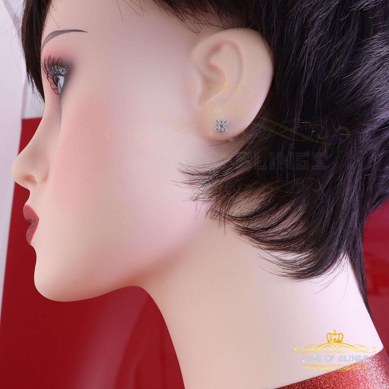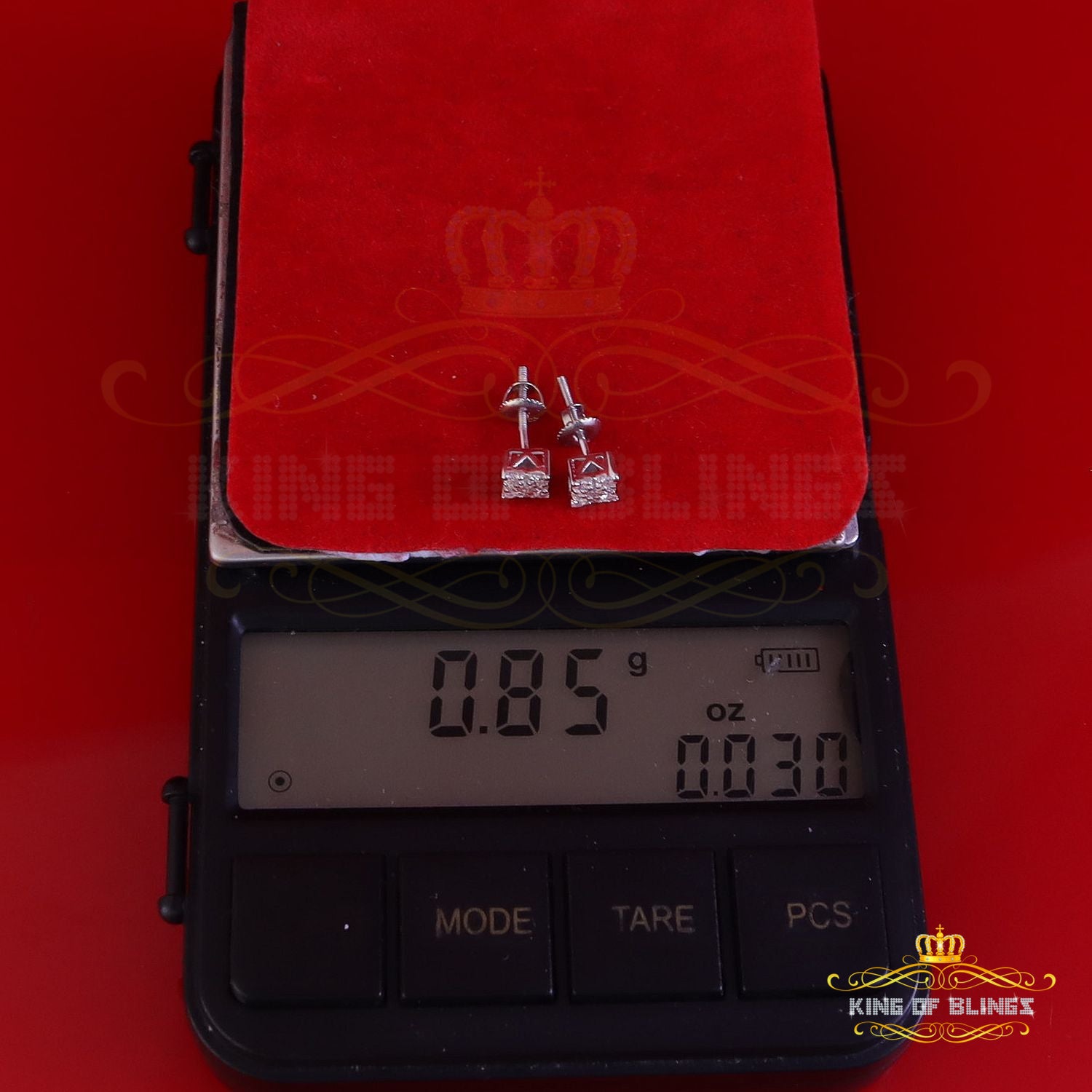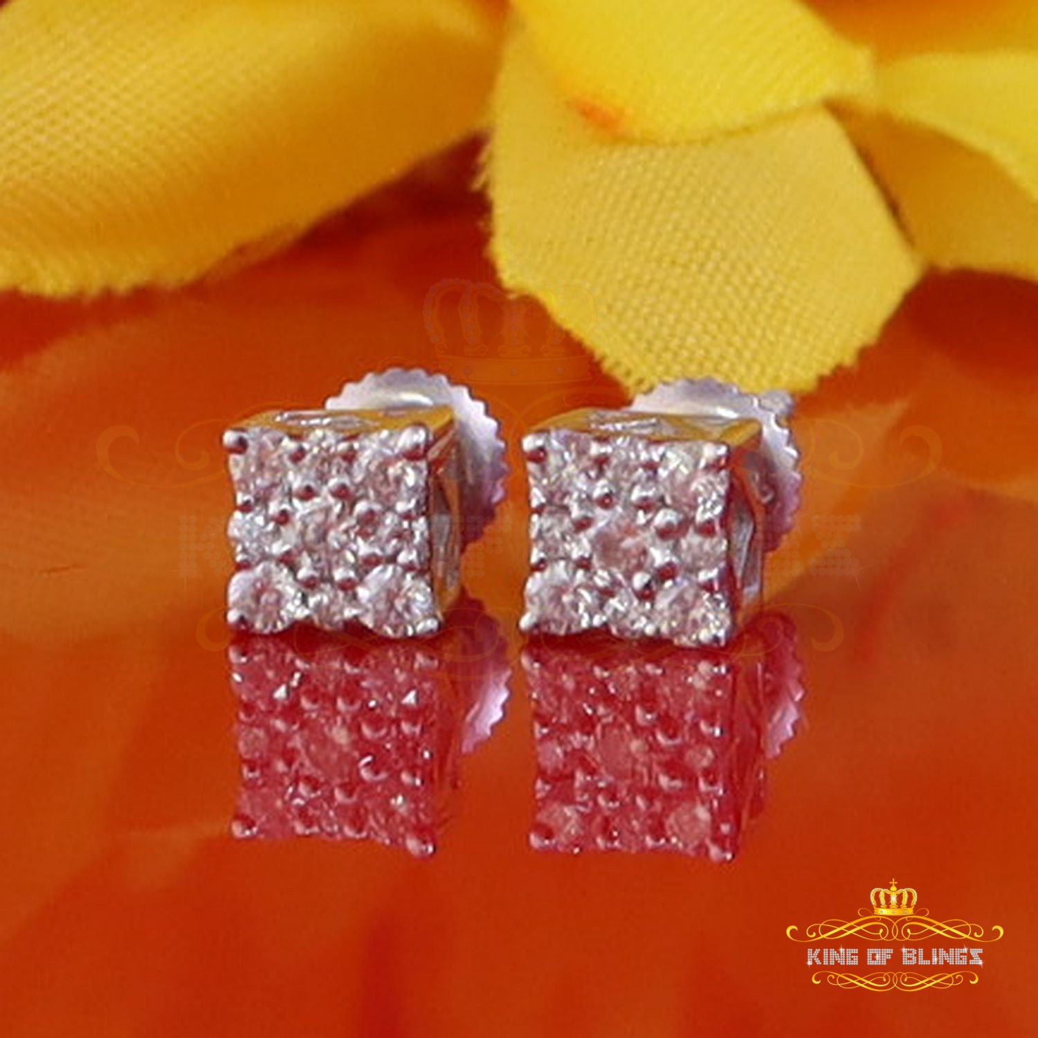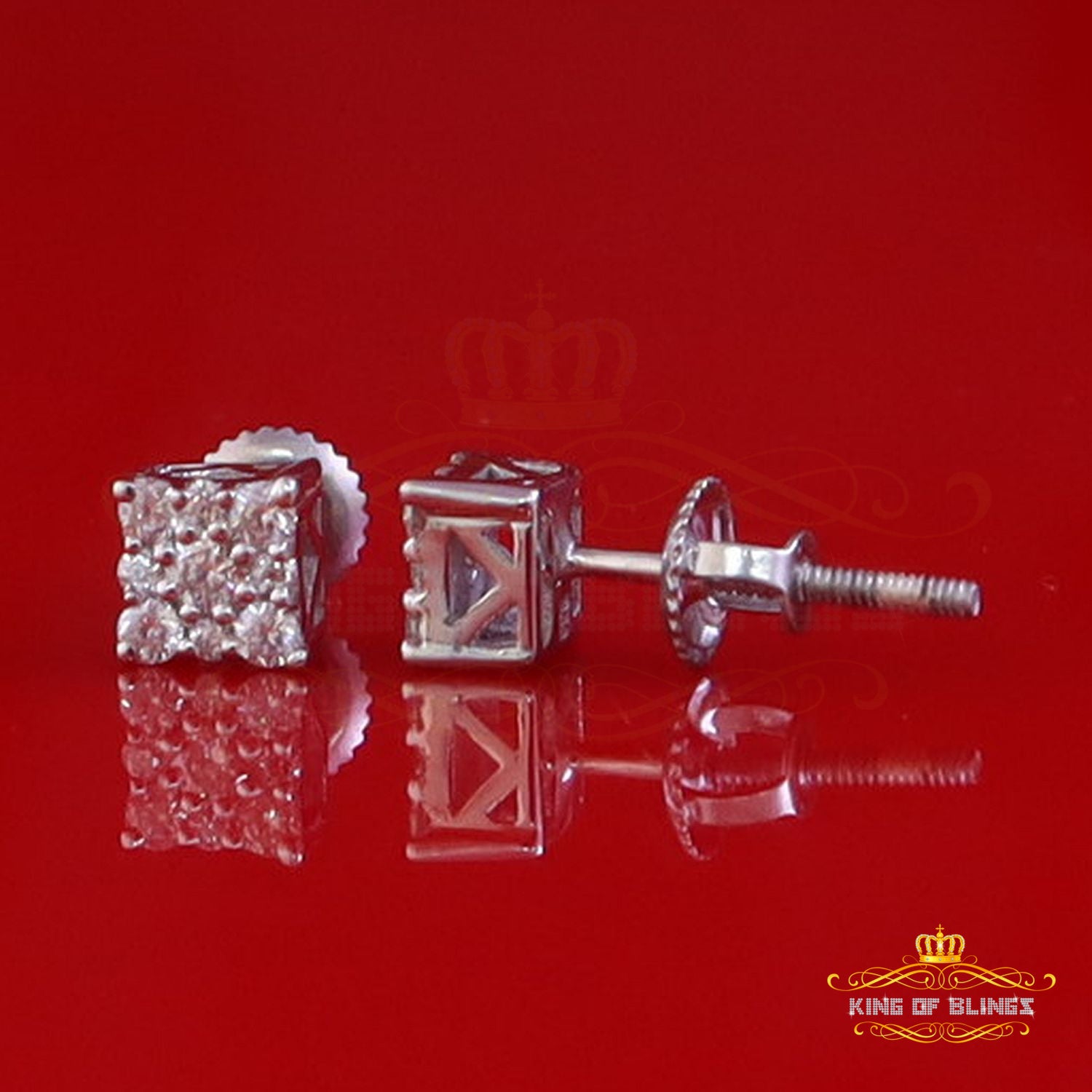 King of Bling's Mens & Womens 0.25ct Square Earrings Moissanite 925 Sterling Silver White