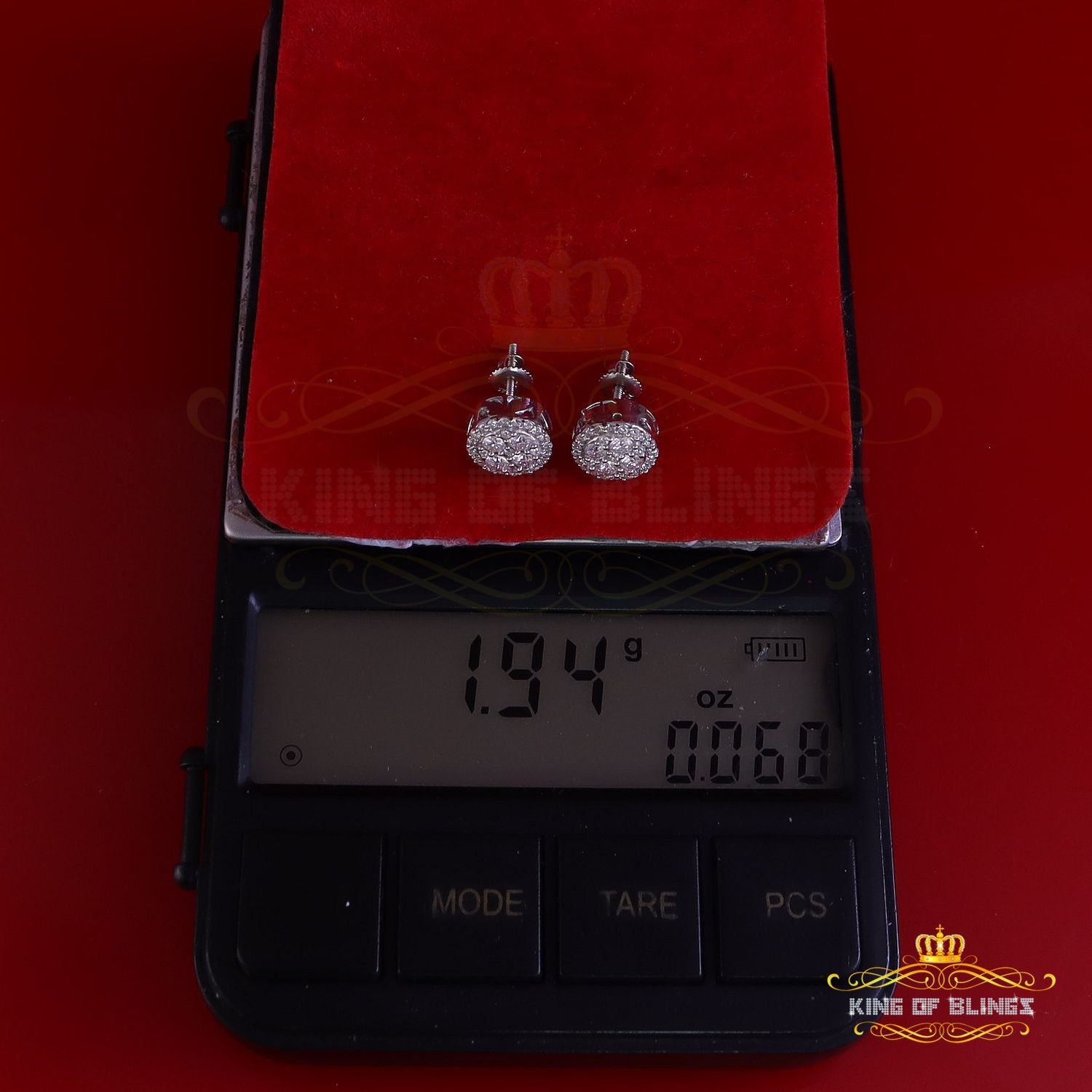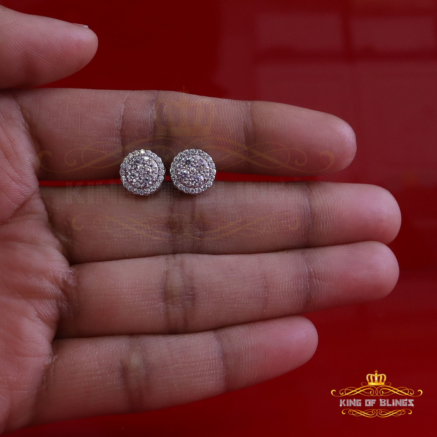 King of Bling's Moissanite 1.00ct 925 Sterling Silver White Cluster Earrings For Mens & Womens