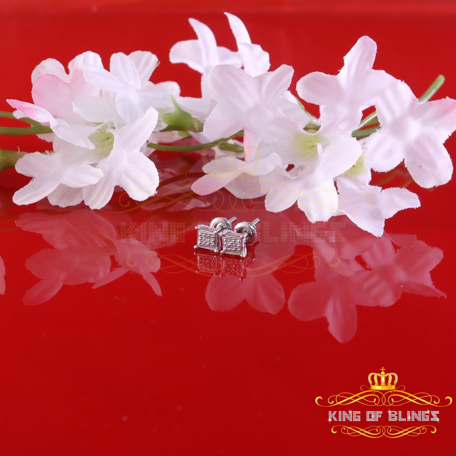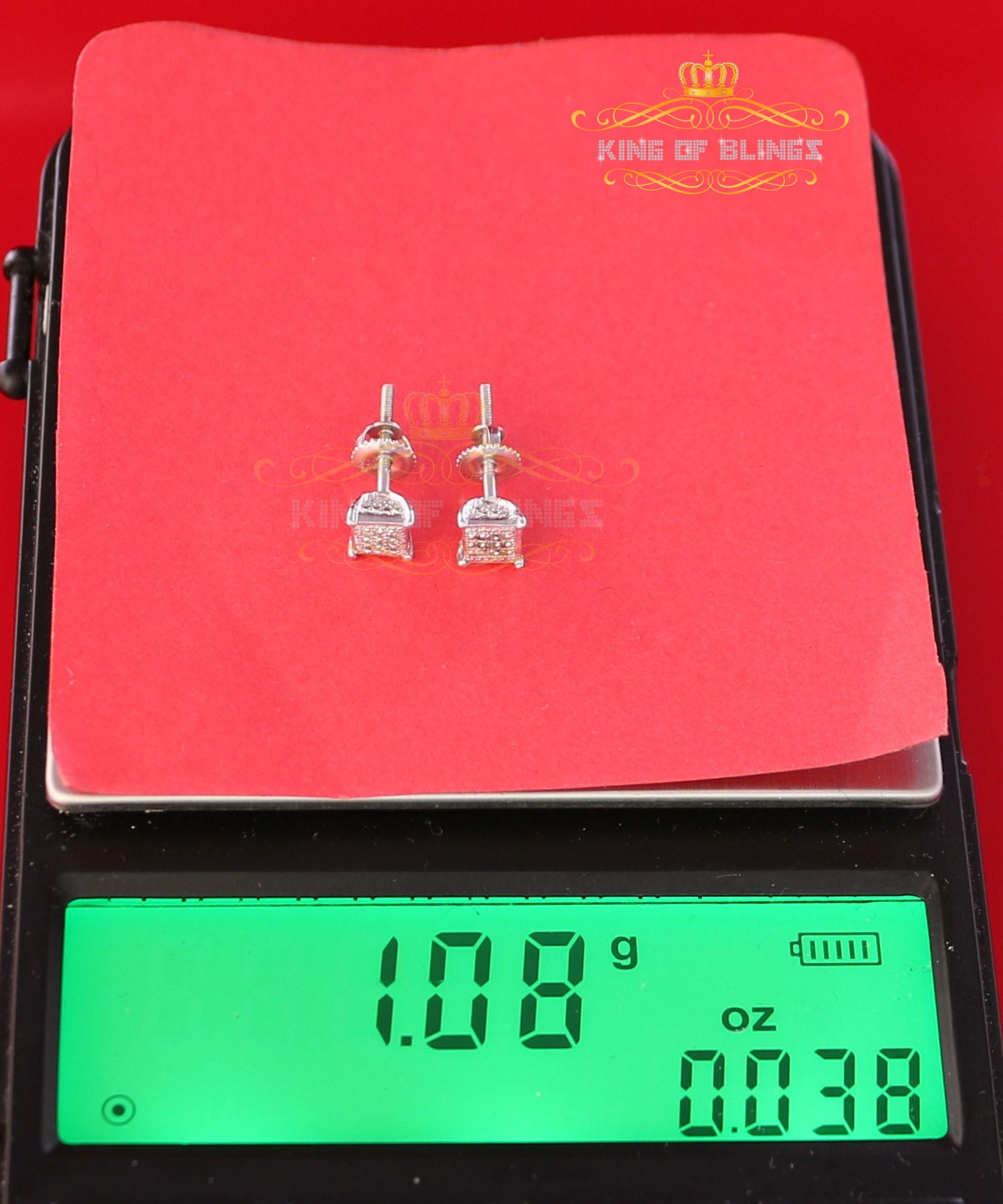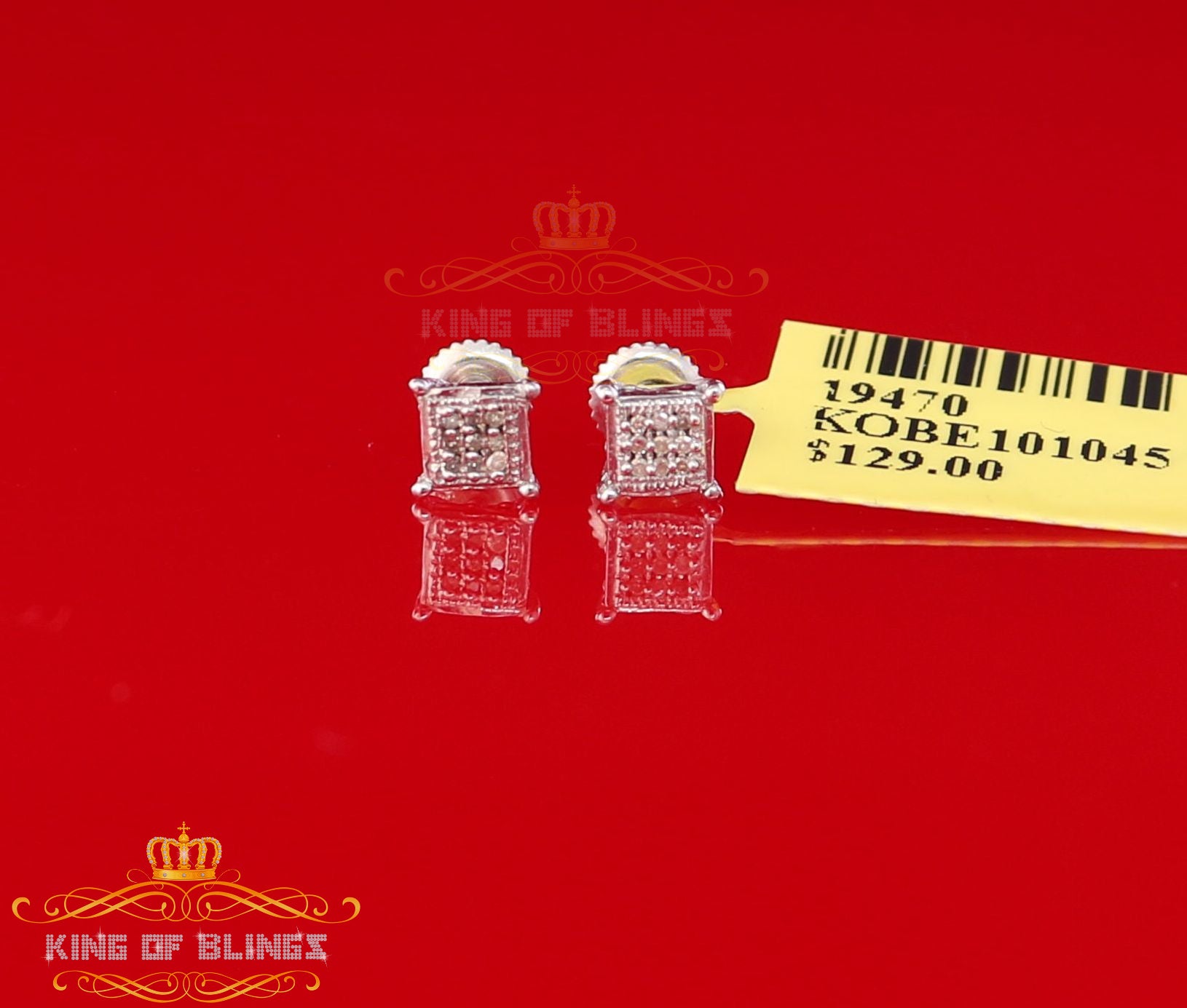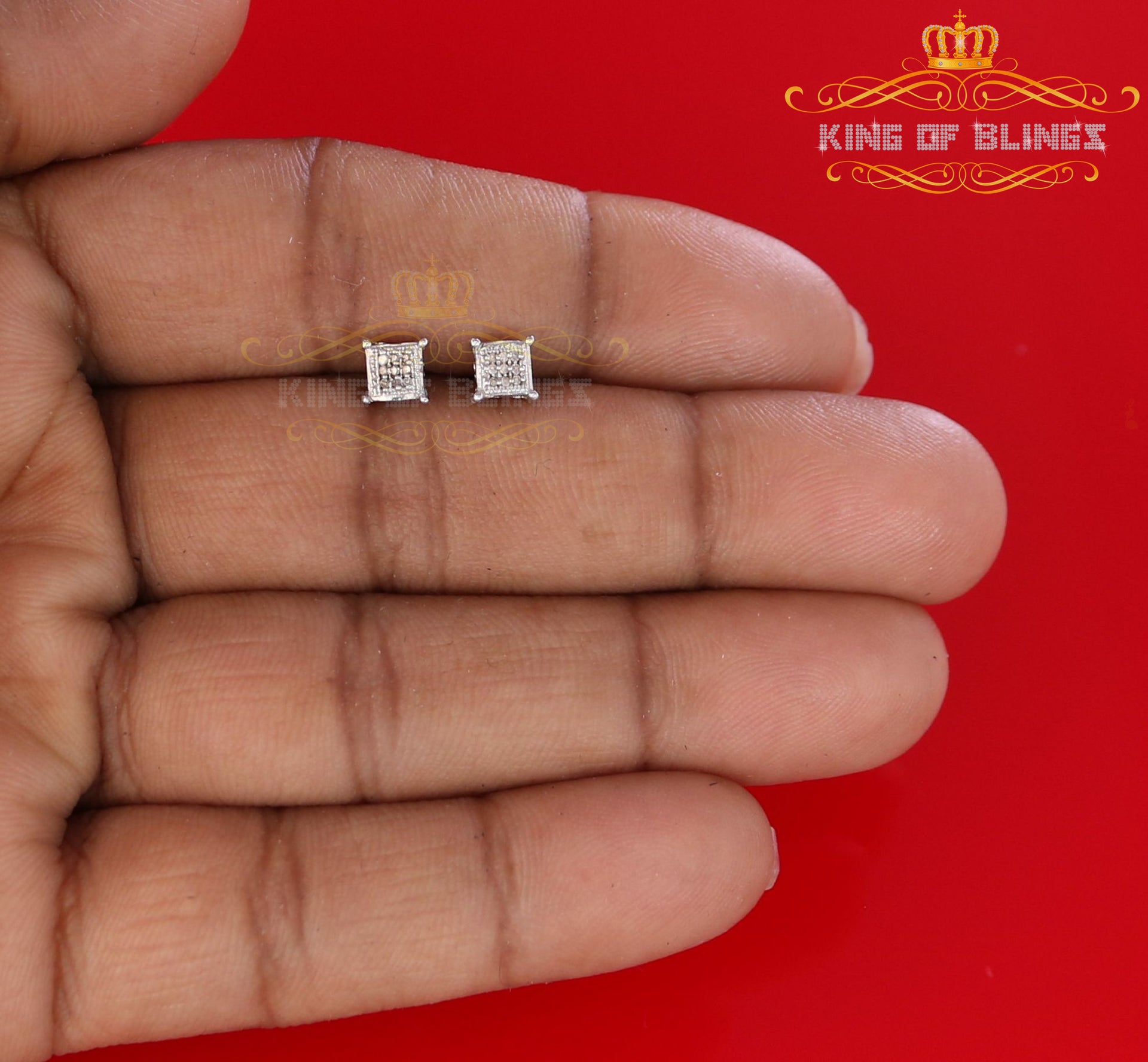 Presented as new with tags in the original packaging, these Silver Diamond earrings are ready to add a touch of sophistication to any outfit, making them a perfect choice for those seeking a combination of style and quality appealing to both men and women with their captivating sparkle. rest assured that the "King Of Blings" brand guarantees exceptional craftsmanship and materials. these womens stud earrings make a perfect gift or a stylish addition to your own jewelry collection,
