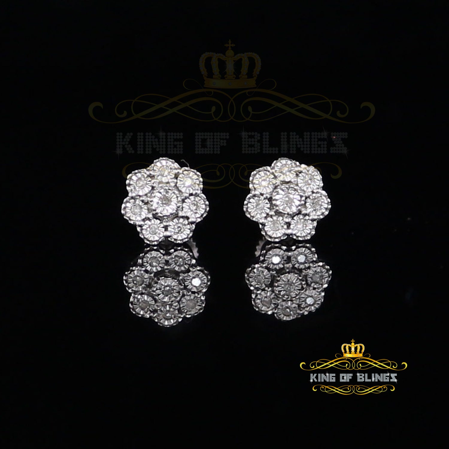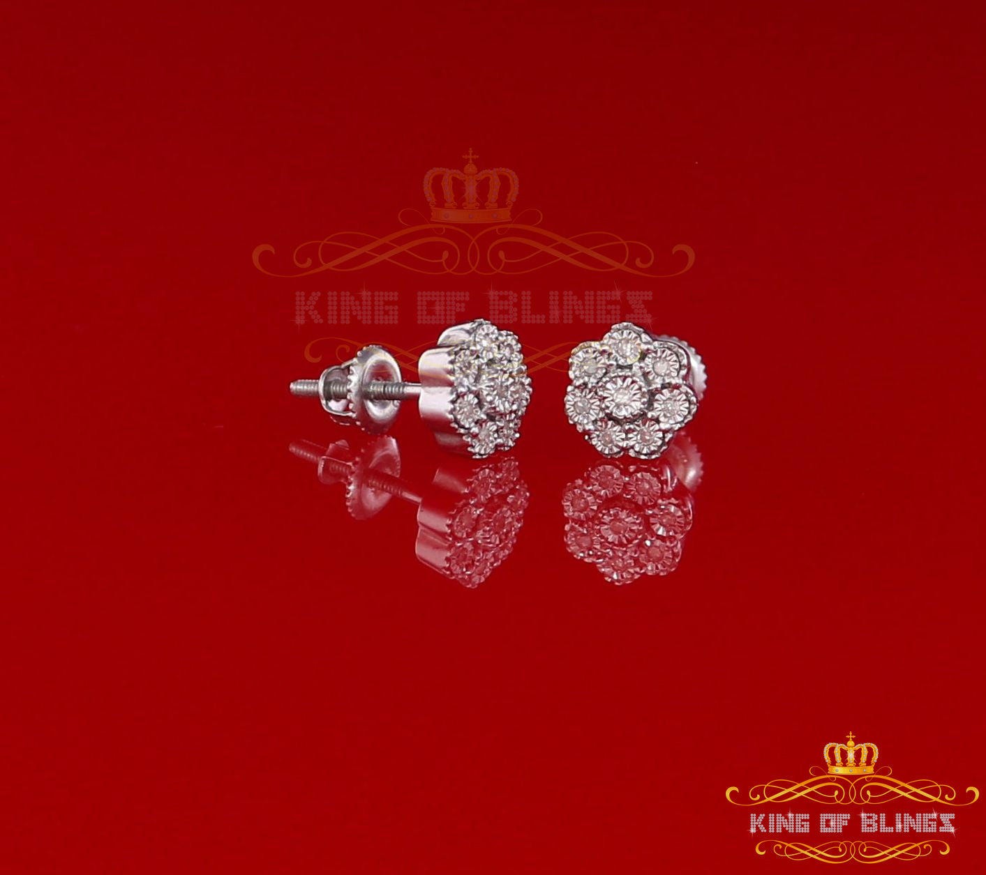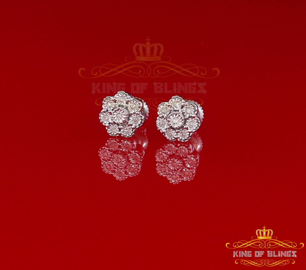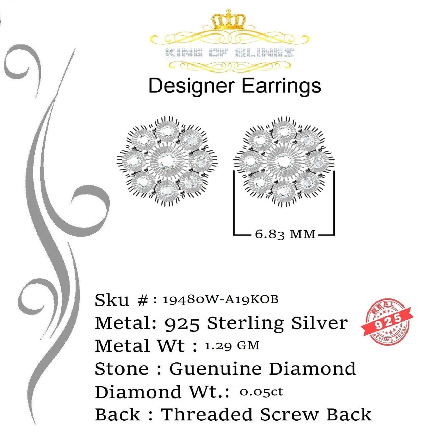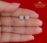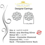 King Of Bling's 0.10ct Diamond 925 Sterling Silver White Floral Earrings For Men's & Women's