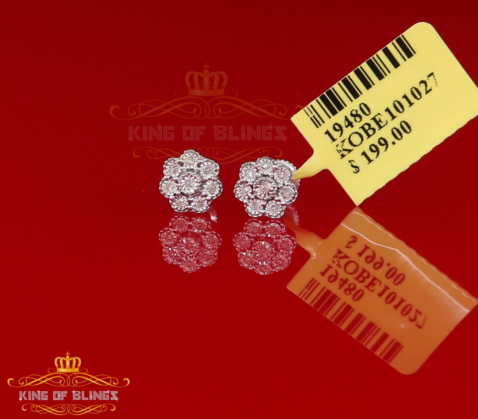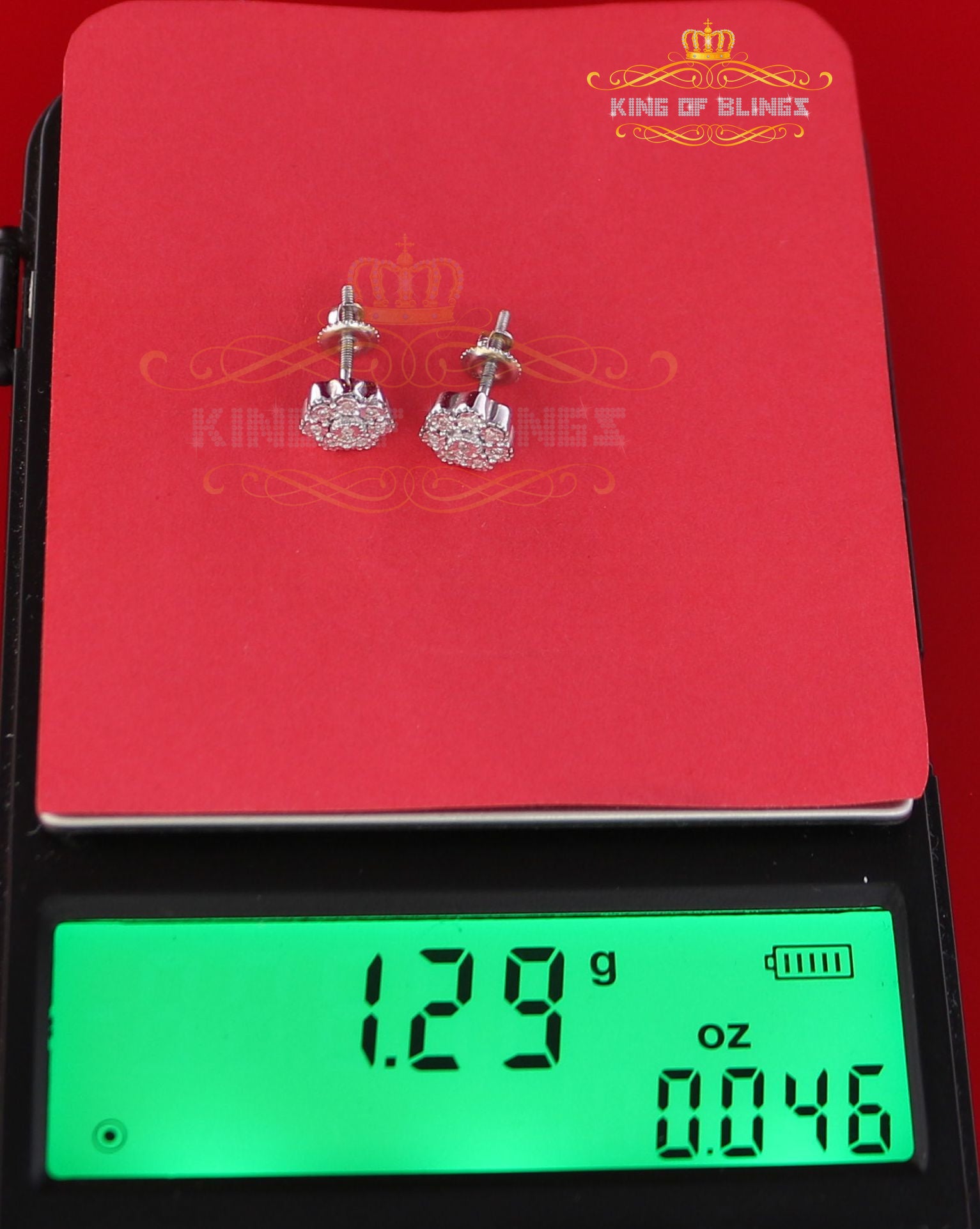 Presented as new with tags in the original packaging, these Silver Diamond earrings are ready to add a touch of sophistication to any outfit, making them a perfect choice for those seeking a combination of style and quality appealing to both men and women with their captivating sparkle. rest assured that the "King Of Blings" brand guarantees exceptional craftsmanship and materials. these womens stud earrings make a perfect gift or a stylish addition to your own jewelry collection,