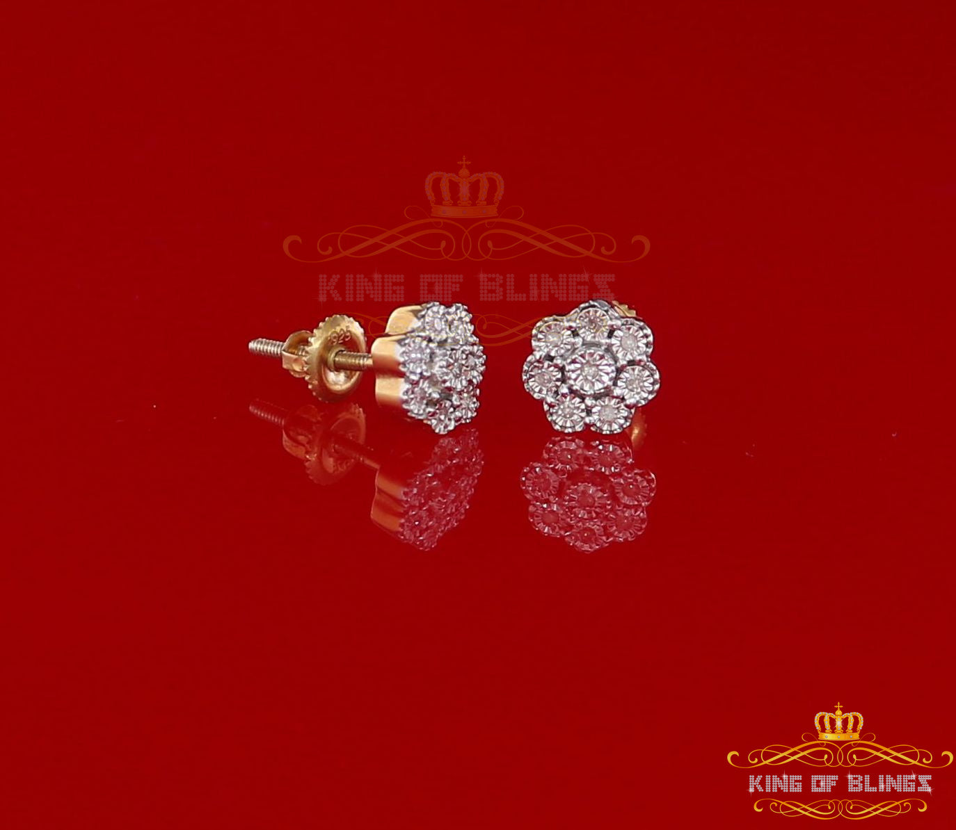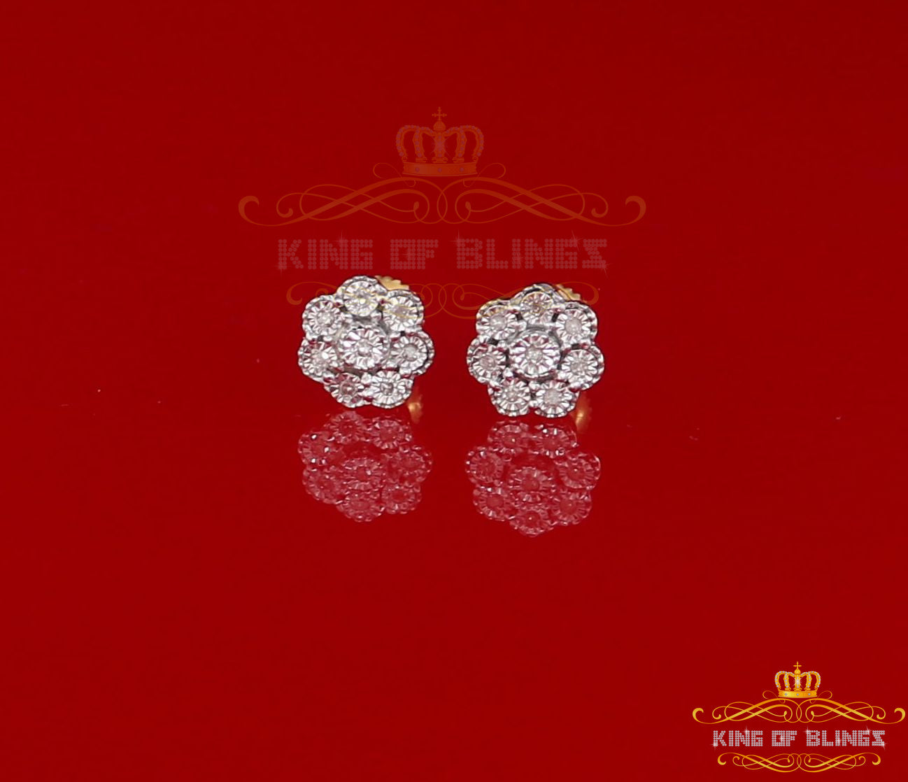 King of Blings-0.10ct Diamond 925 Sterling Silver Yellow Floral Earrings For Men's & Women's