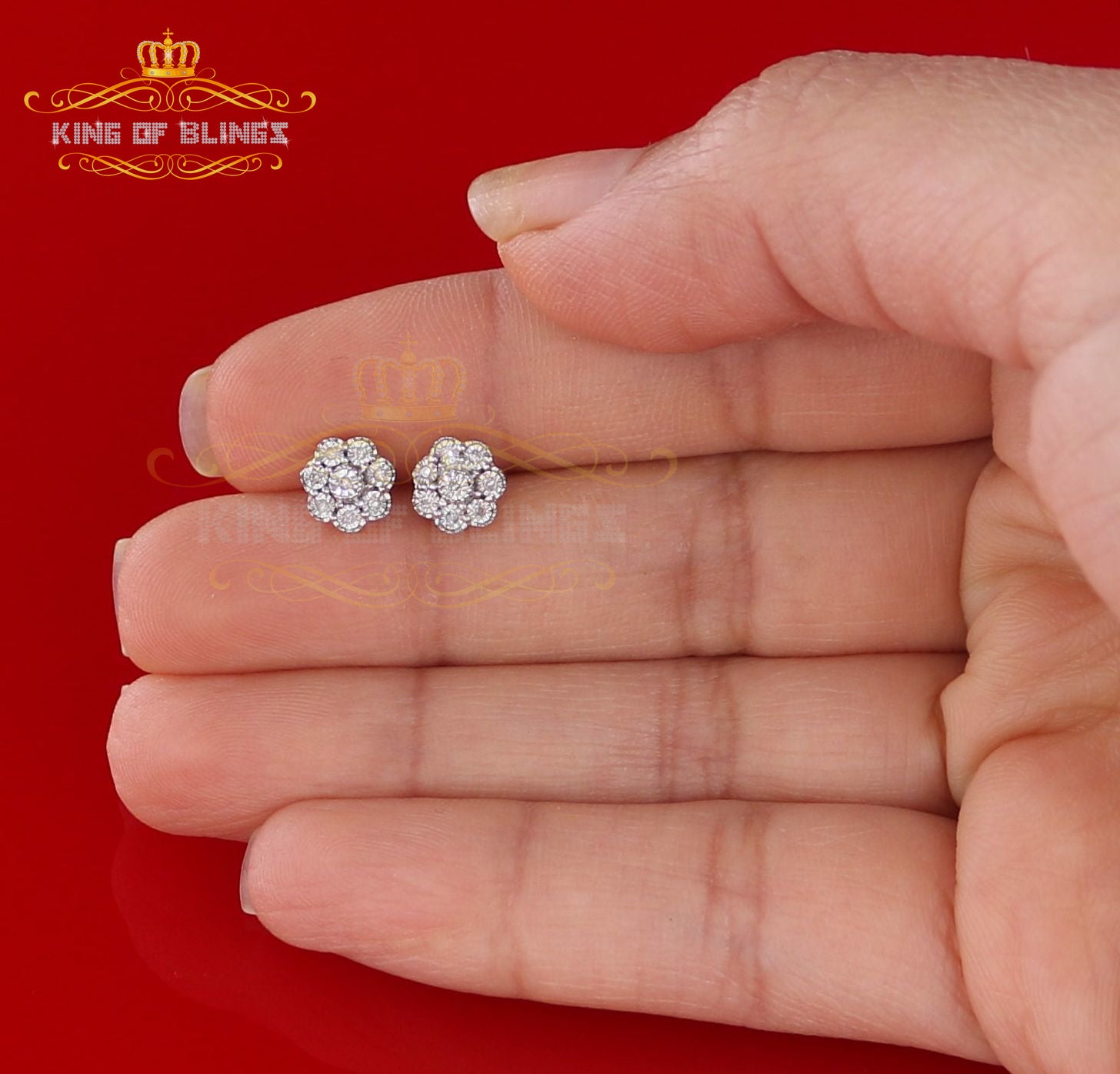 Presented as new with tags in the original packaging, these Silver Diamond earrings are ready to add a touch of sophistication to any outfit, making them a perfect choice for those seeking a combination of style and quality appealing to both men and women with their captivating sparkle. rest assured that the "King Of Blings" brand guarantees exceptional craftsmanship and materials. these womens stud earrings make a perfect gift or a stylish addition to your own jewelry collection,