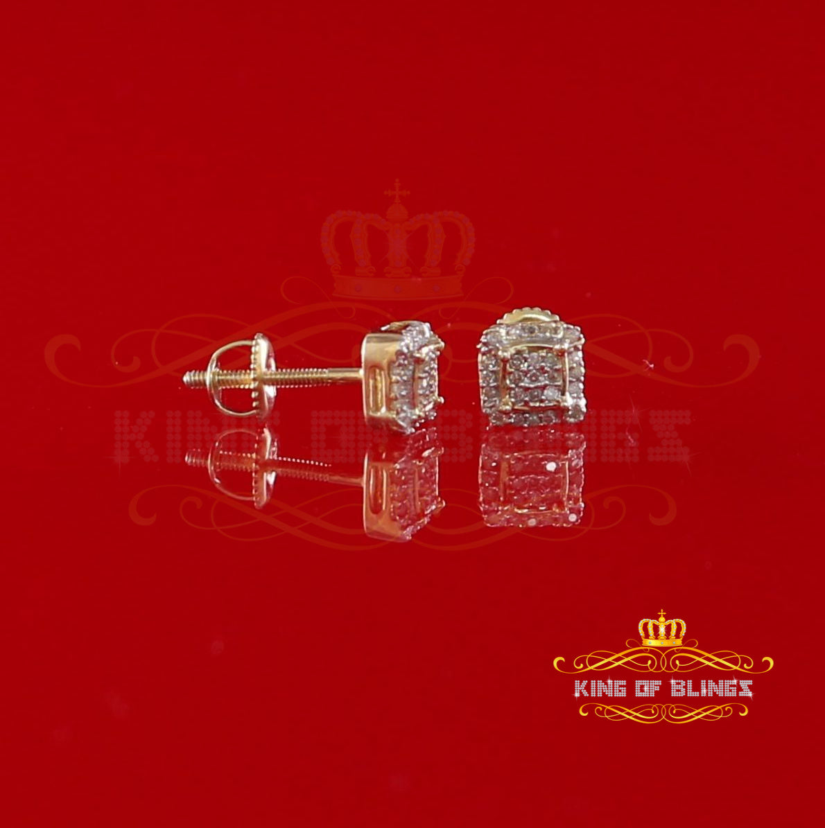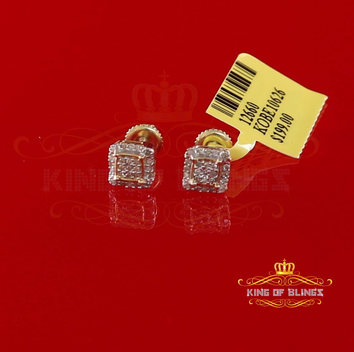 King of Blings-0.10ct Diamond 925 Sterling Silver Yellow Square Earring For Men's / Women's