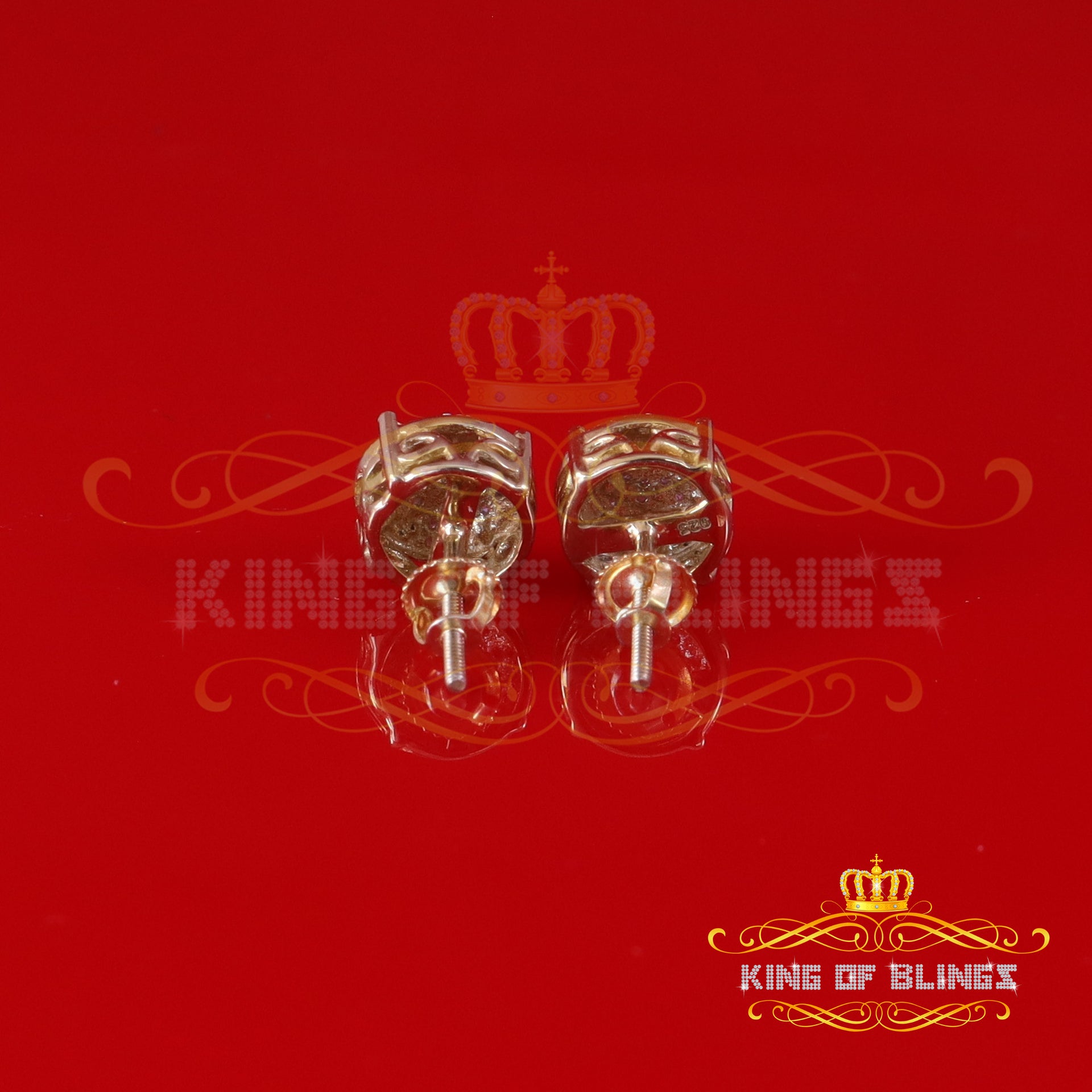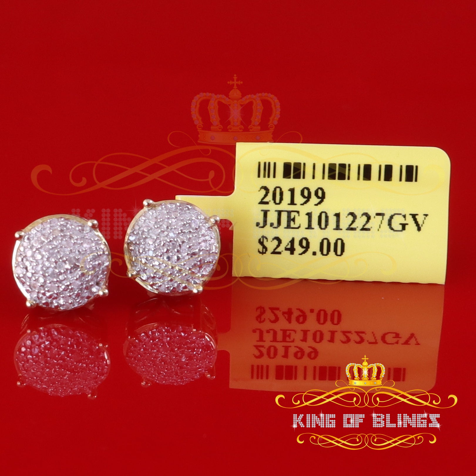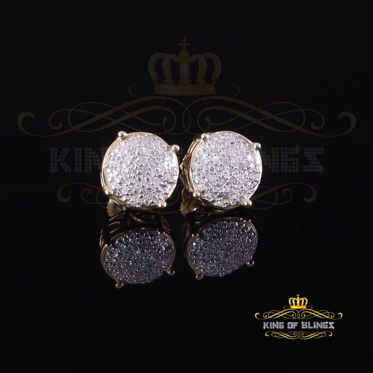 King of Blings-0.10ct Diamond 925 Sterling Yellow Silver for Men's & Womens Stud Round Earrings