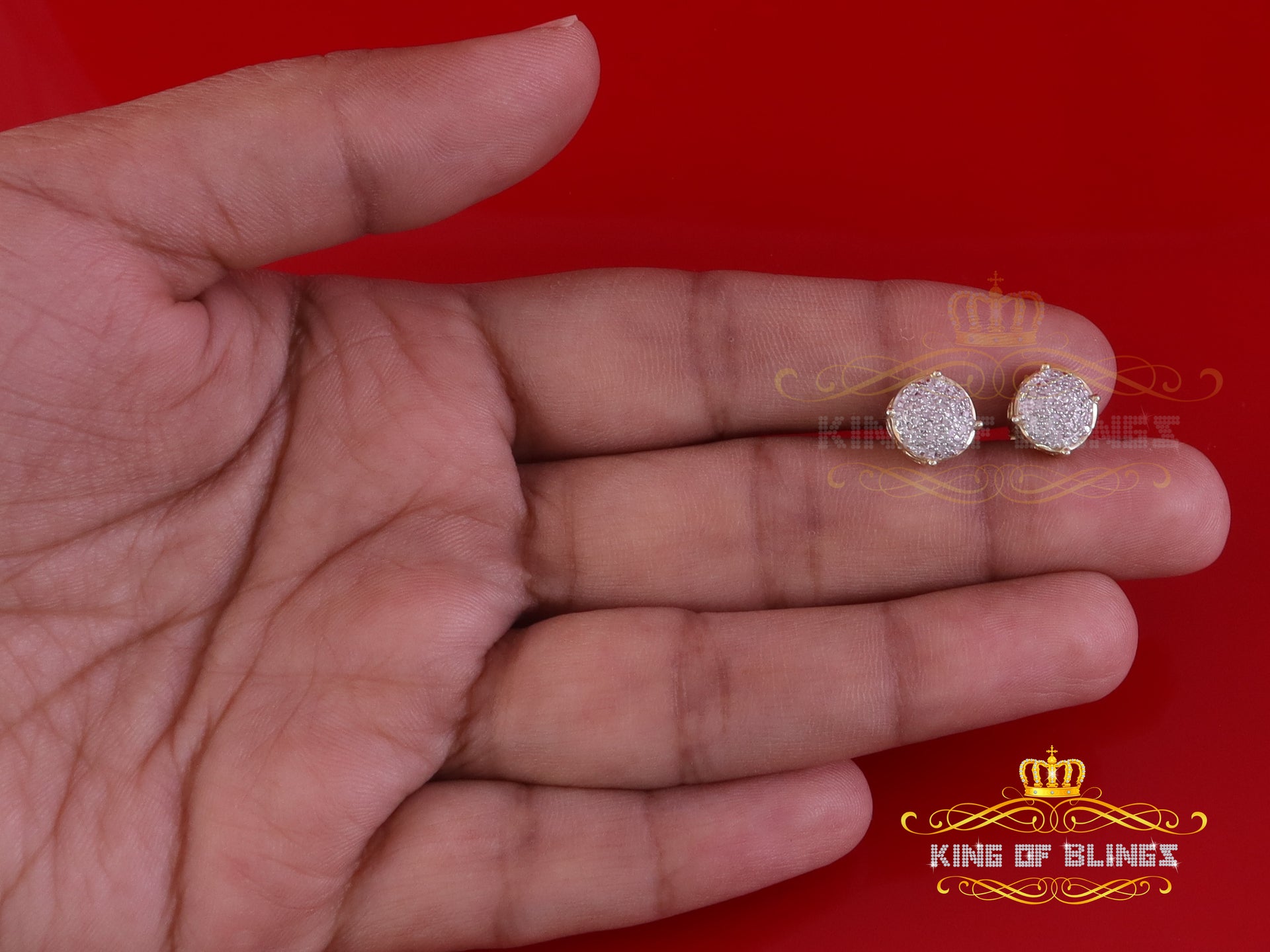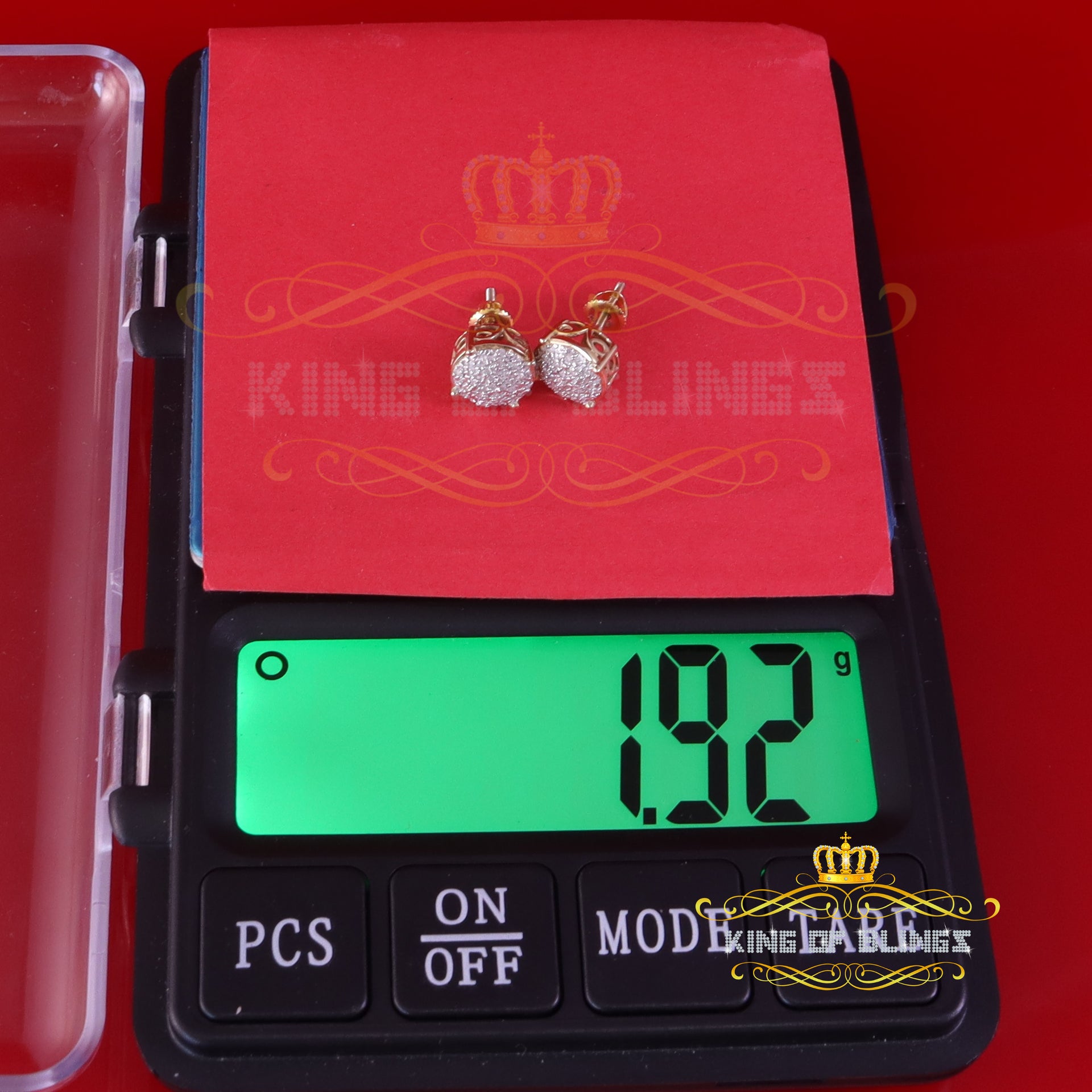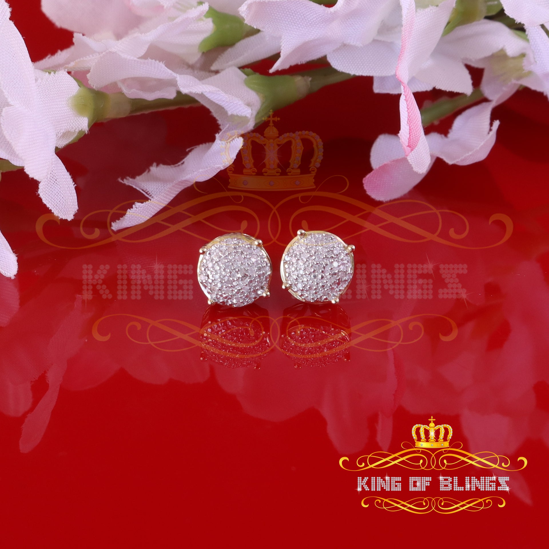 King of Blings-0.10ct Diamond 925 Sterling Yellow Silver for Men's & Womens Stud Round Earrings