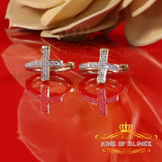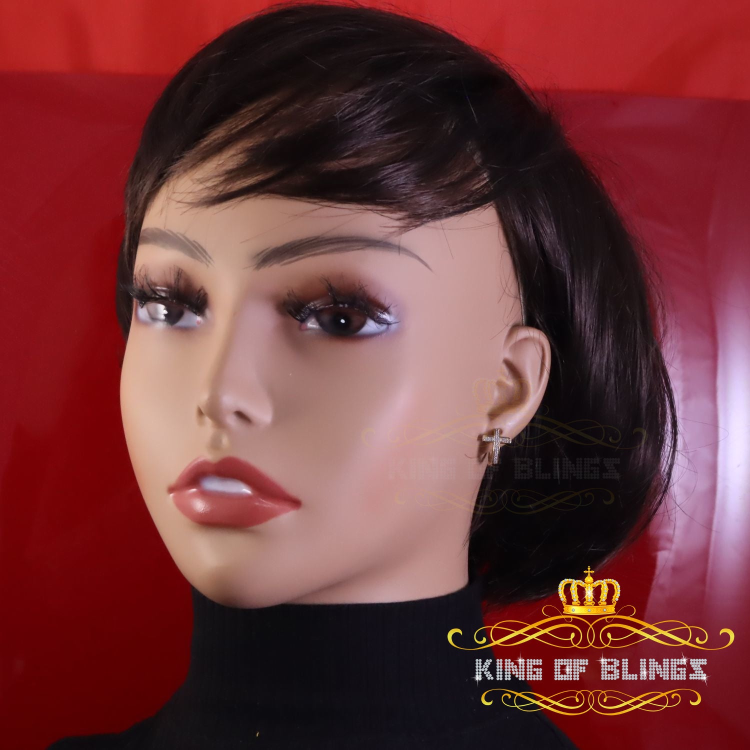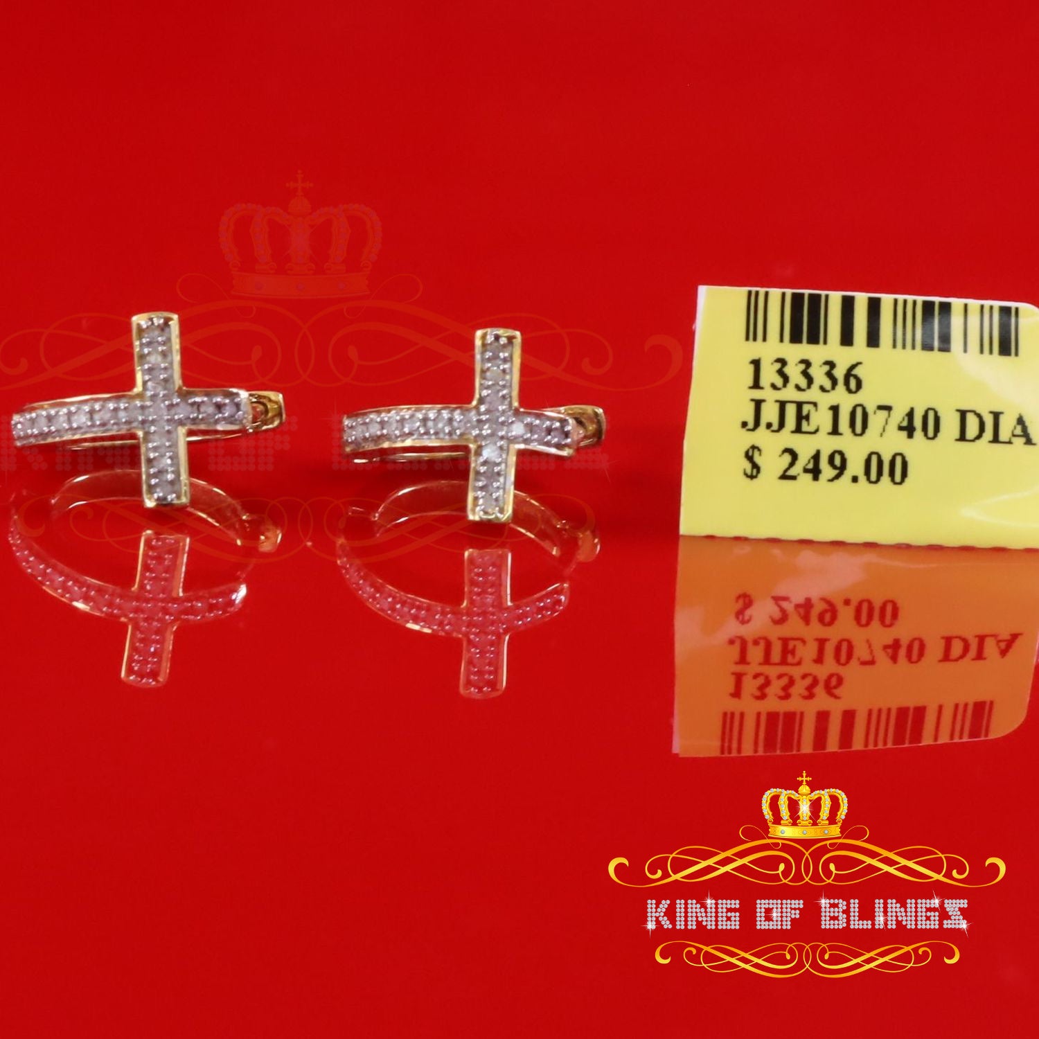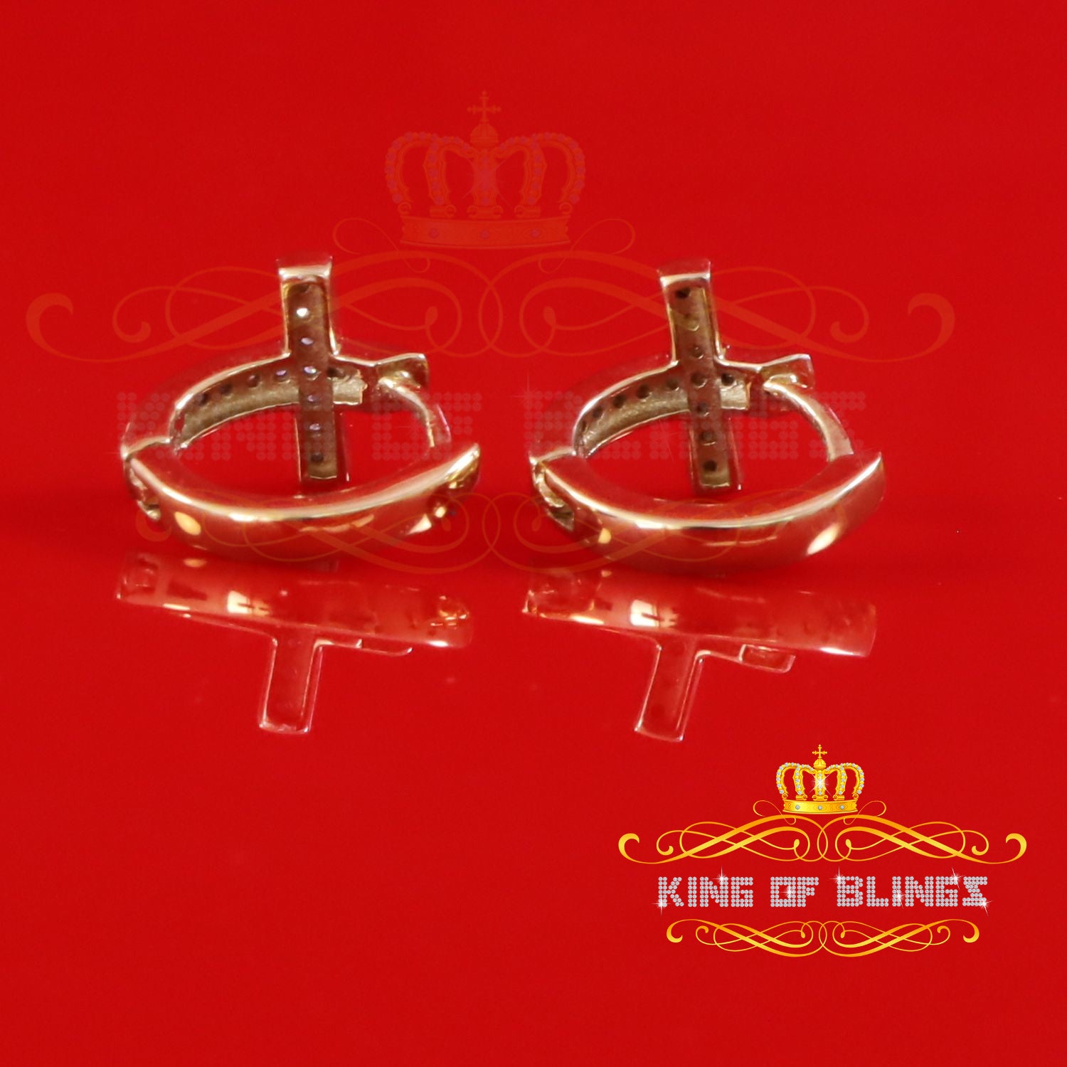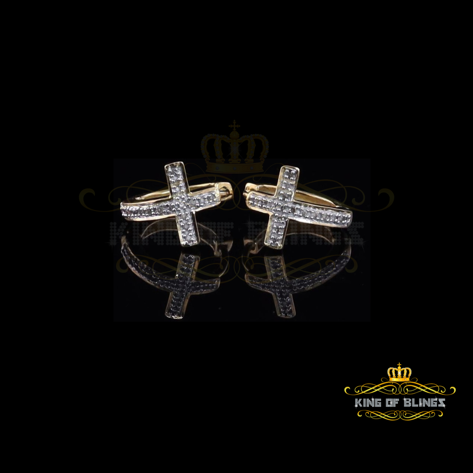 King of Blings-0.15ct Diamond 925 Sterling Silver Yellow Hoop Stud cross Earring For Men /Women