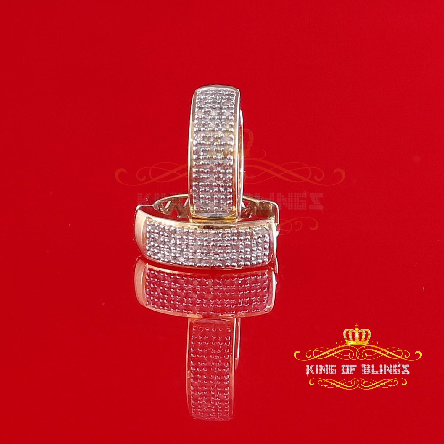 King of Blings-0.15ct Diamond Sterling Silver Yellow H oop Stud Earrings For Men's / Women's