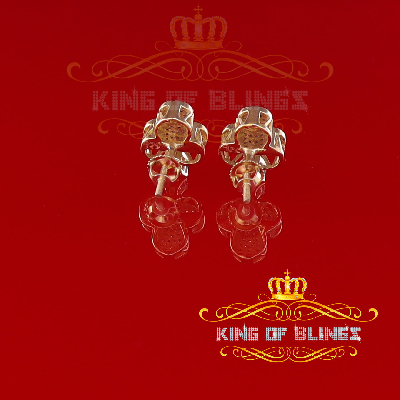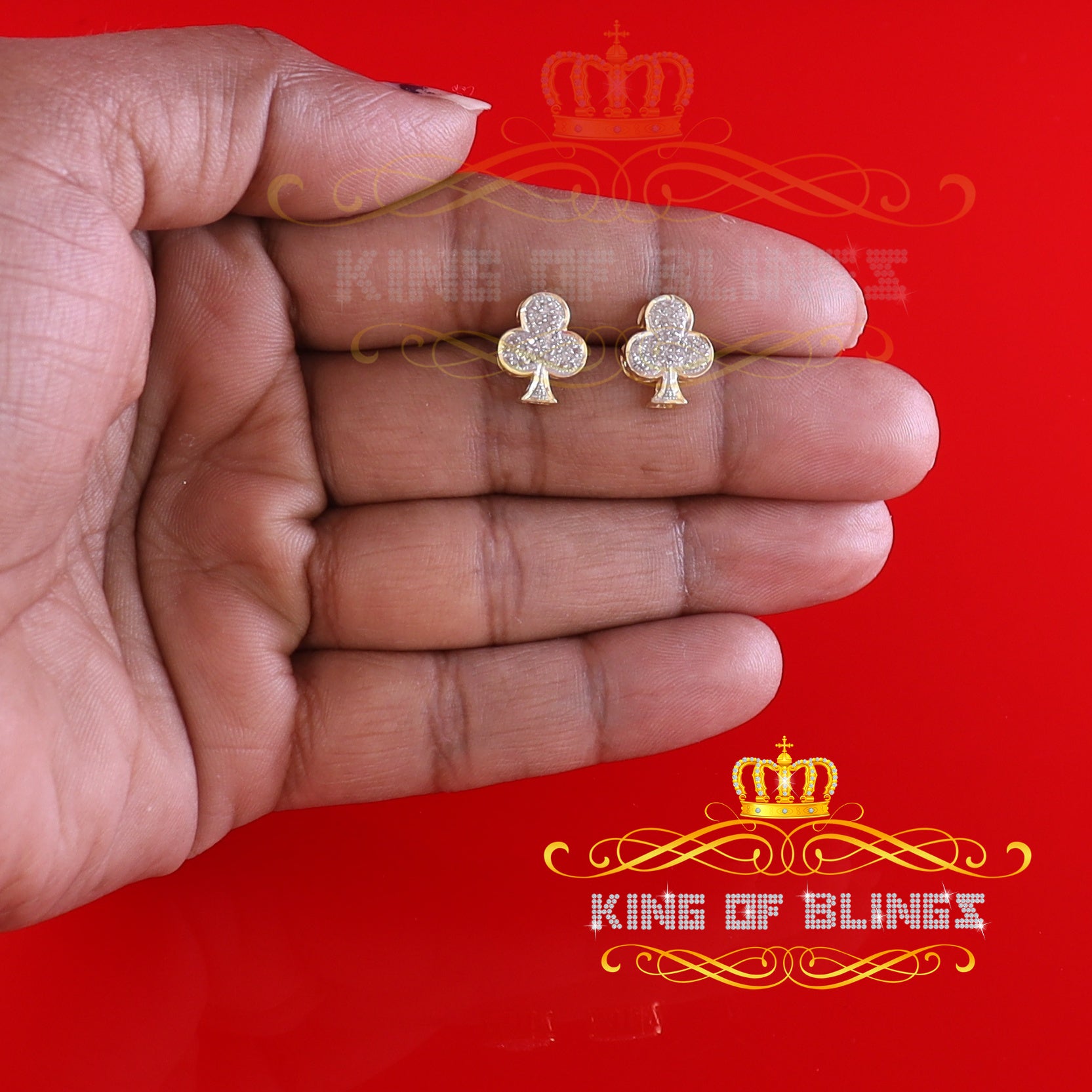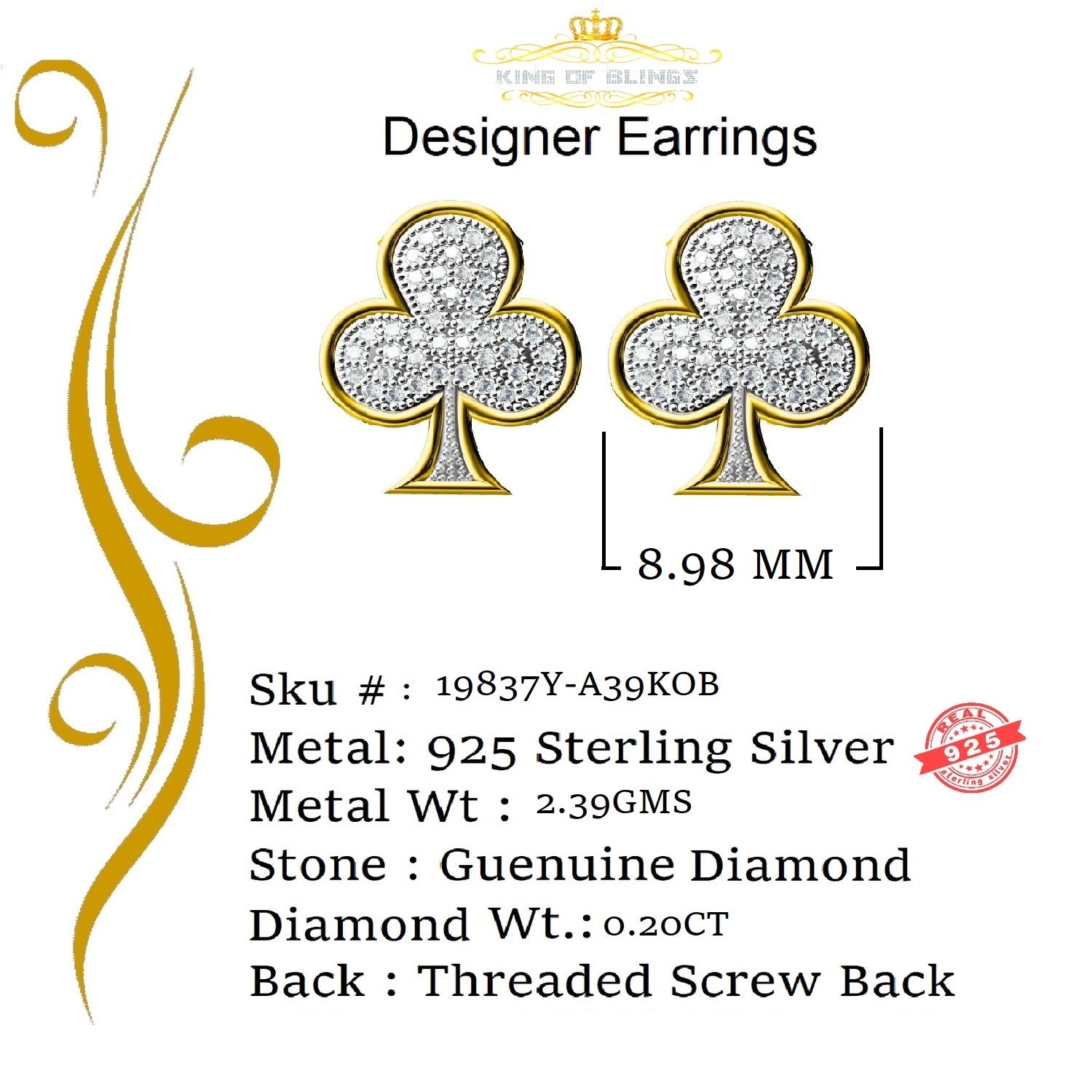 King of Blings-0.20ct Diamond 925 Sterling Yellow Silver Women's & Men's Club Suit Earrings