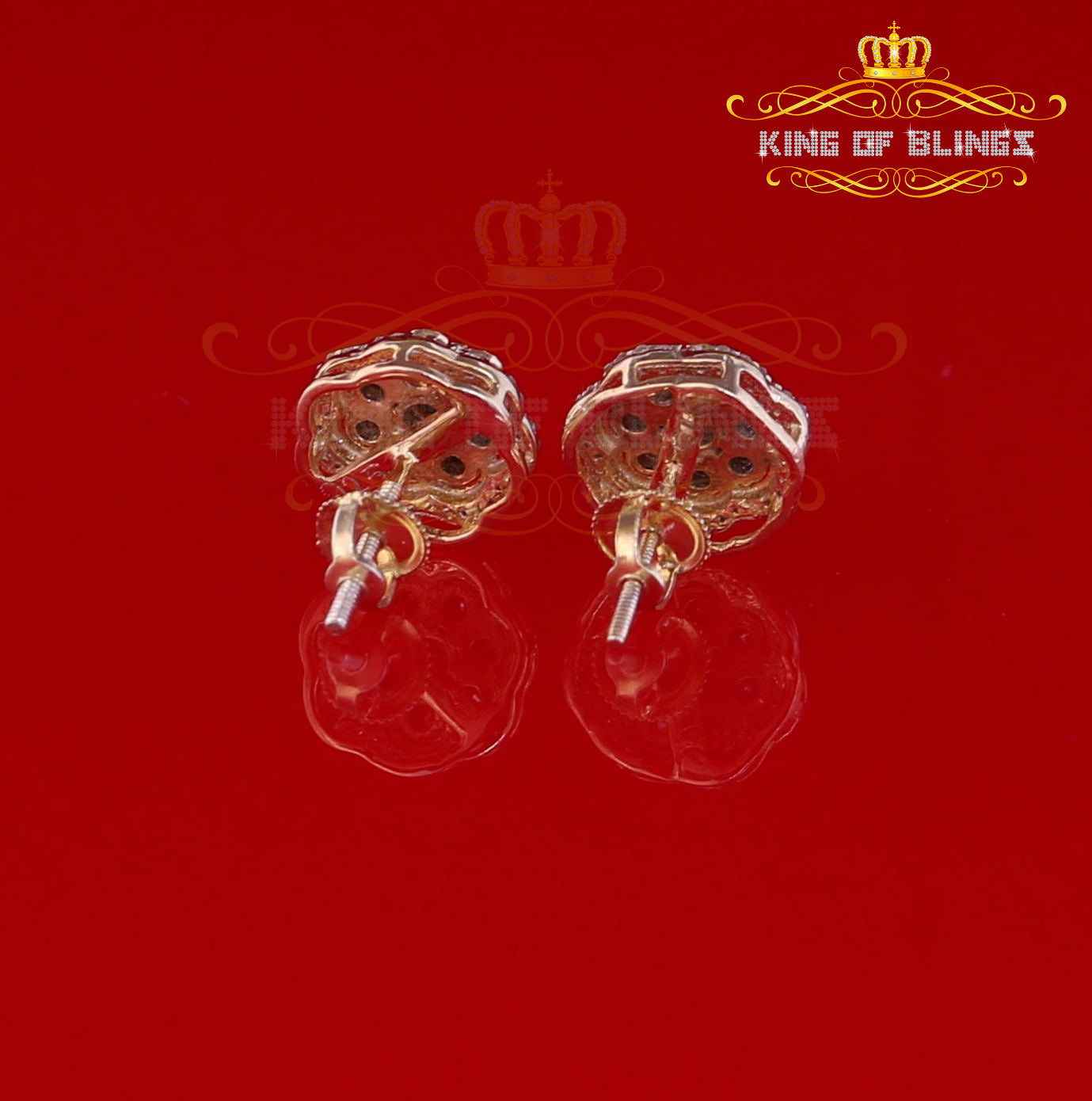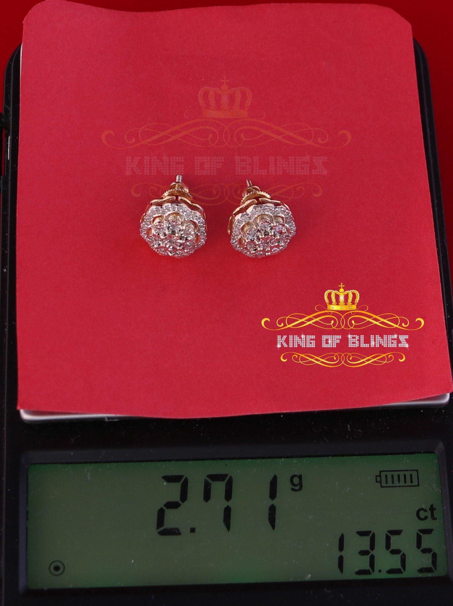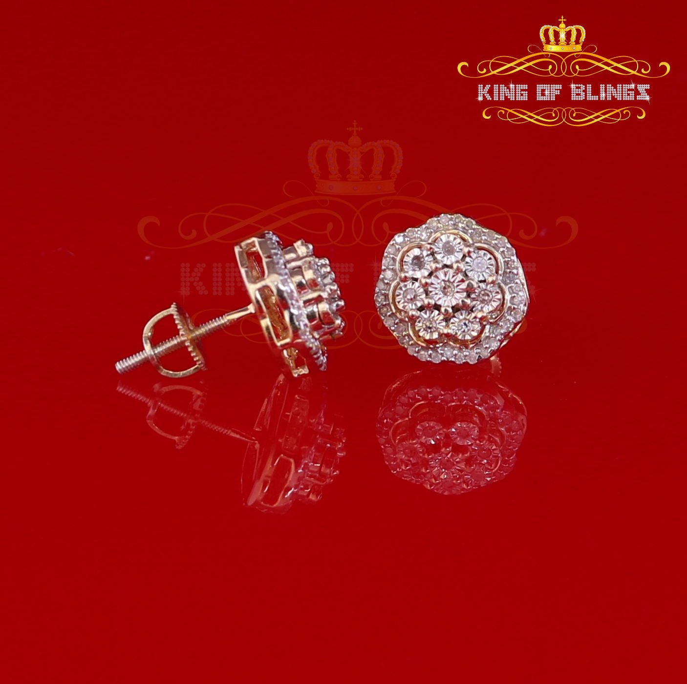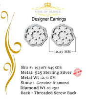 King of Blings-0.25ct Diamond 925 Sterling Silver Yellow For Men's / Women's Floral Earrings