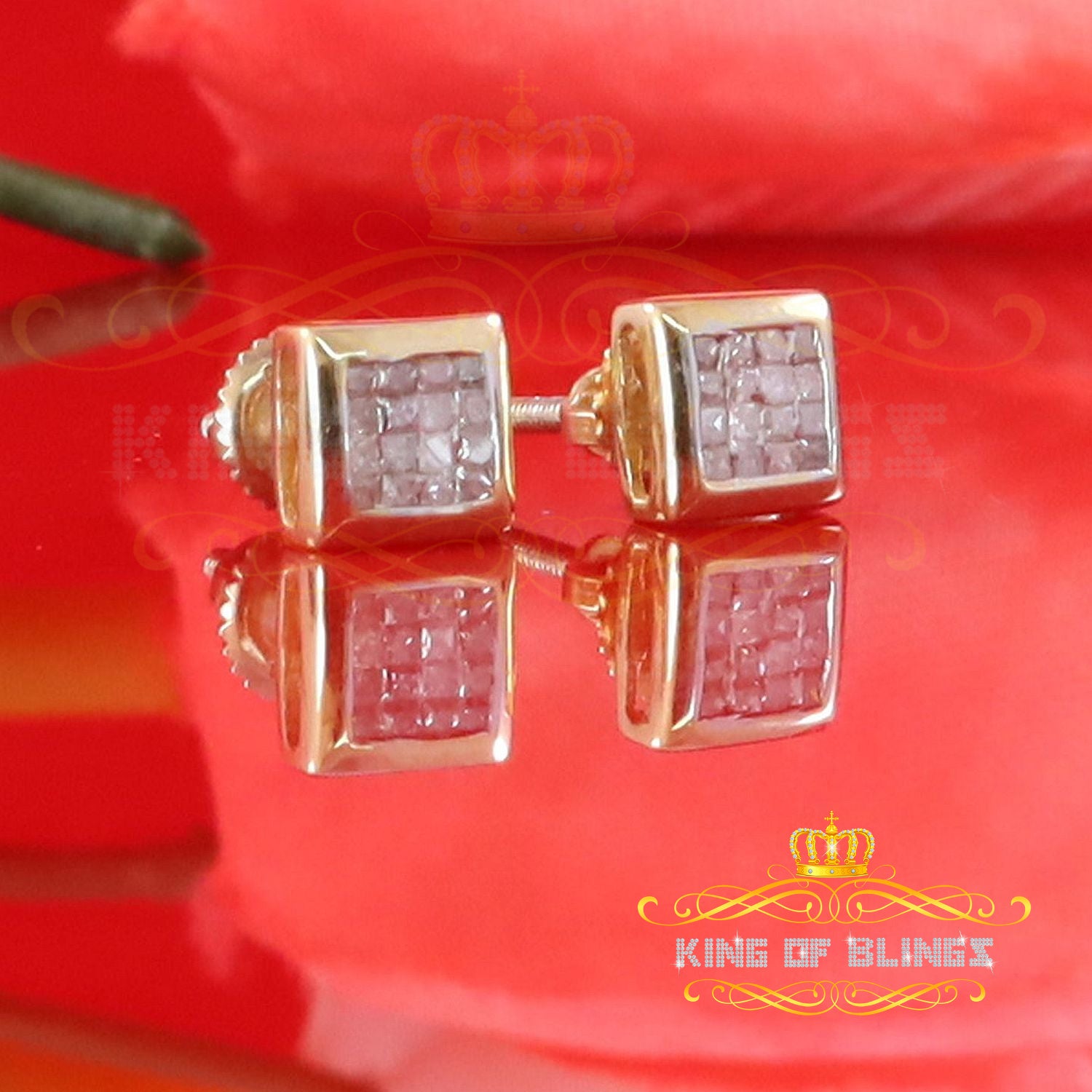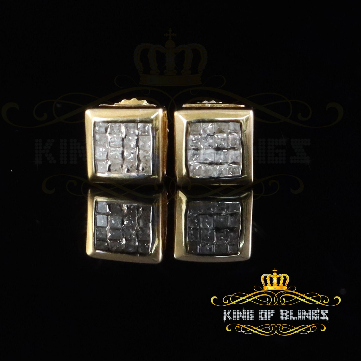 King of Blings-0.25ct Diamond 925 Yellow Sterling Silver Hip Hop Women's Stud Style Earrings