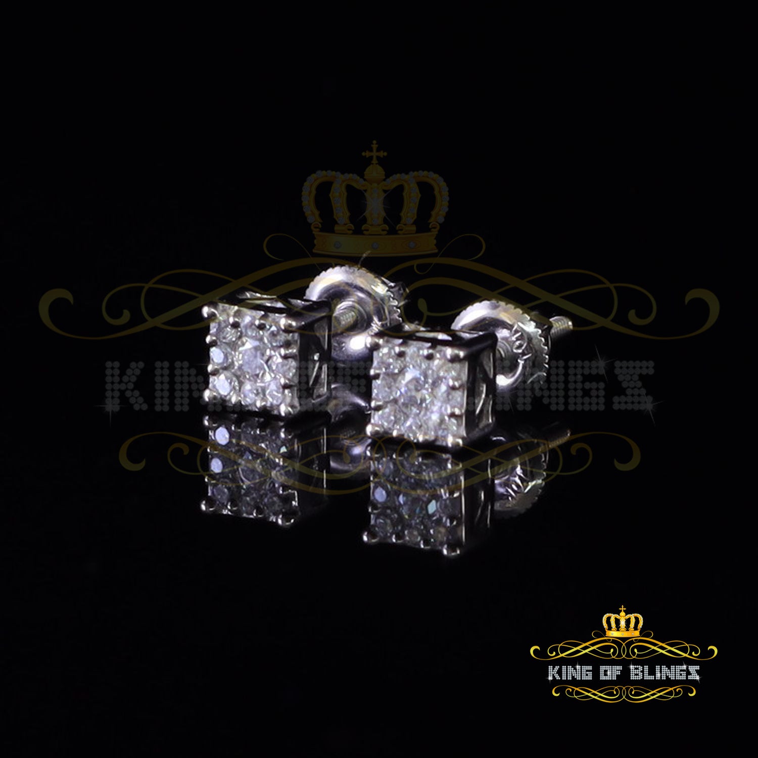 King Of Bling's 0.25ct VVS 'D' Color Moissanite Square Men's / Womens Earrings 10k White Gold